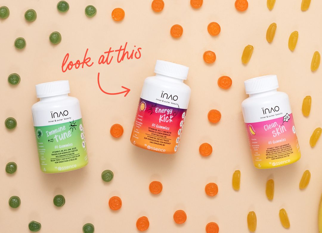 ÏNAO by essence ist ein Nahrungsergänzungsmittel in Form von Gummies. Sie sind vegan, glutenfrei und cruelty-free.