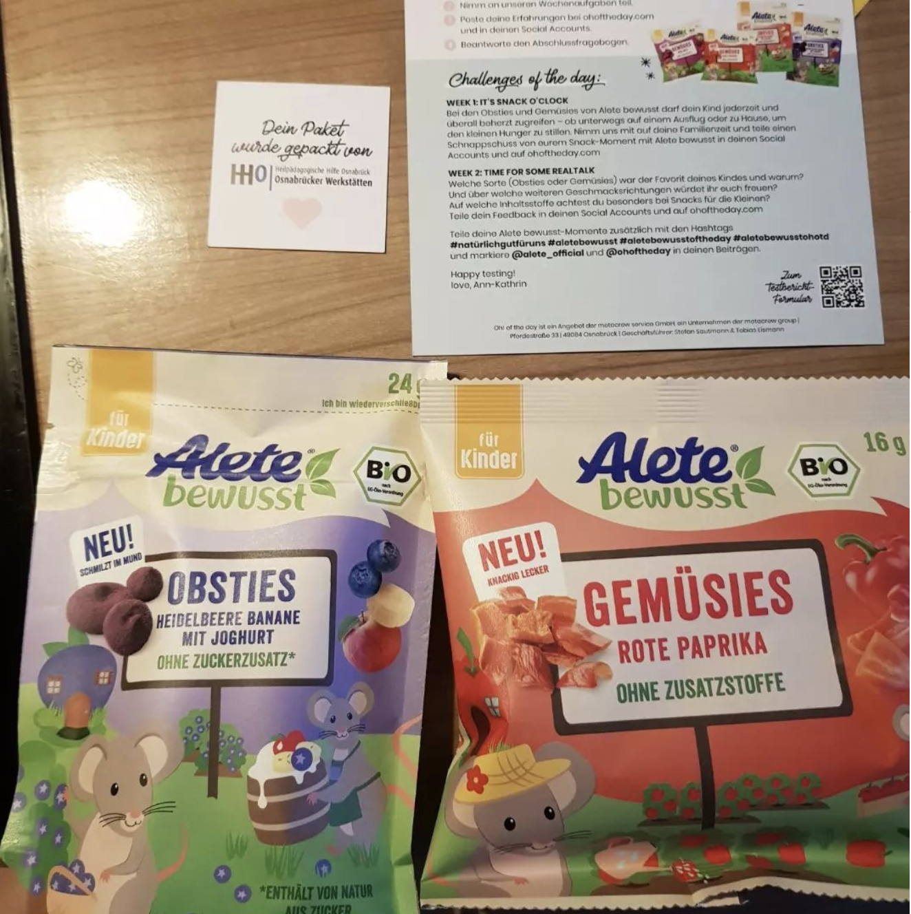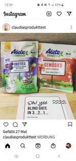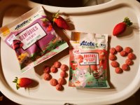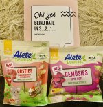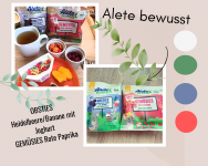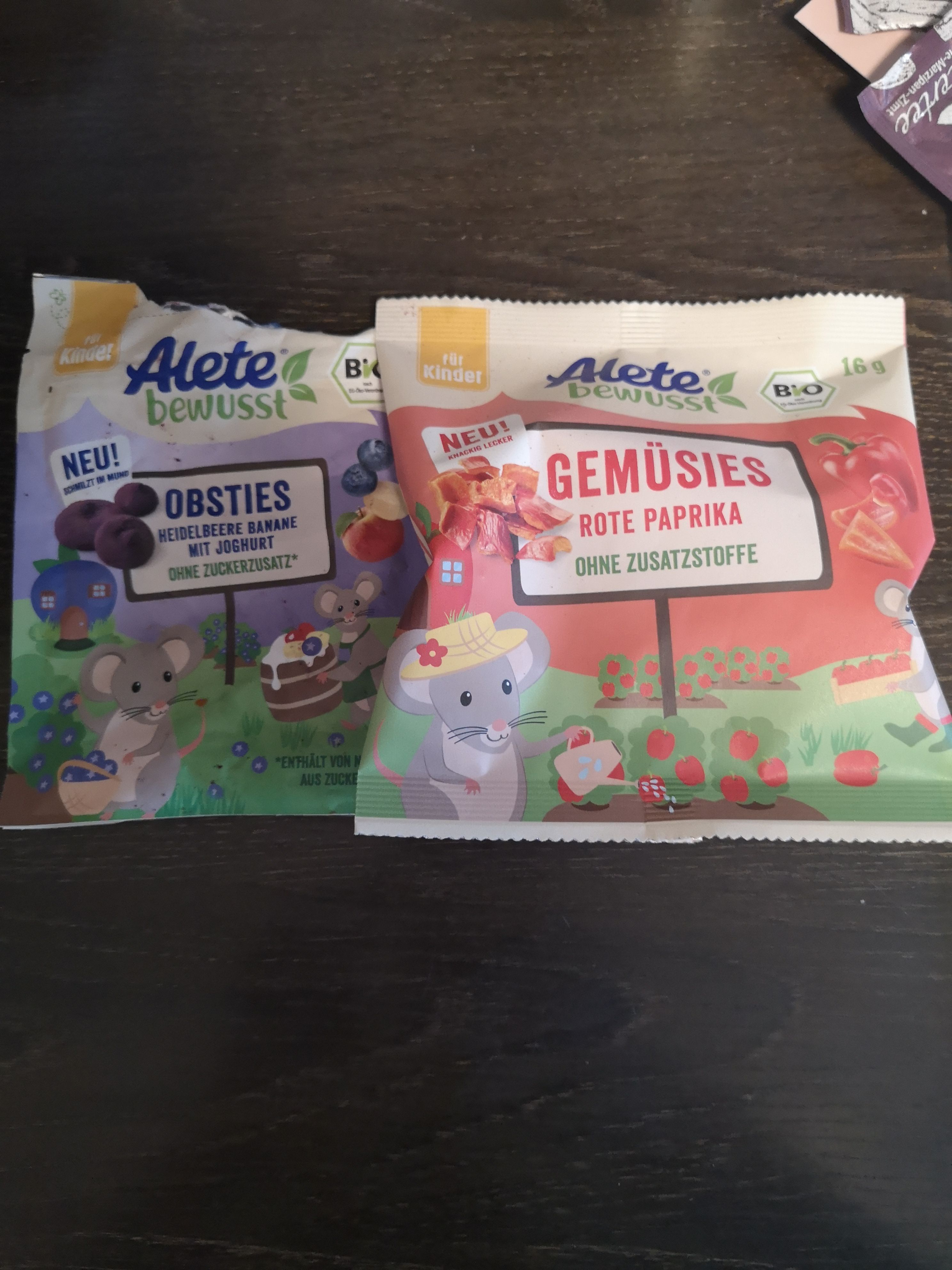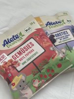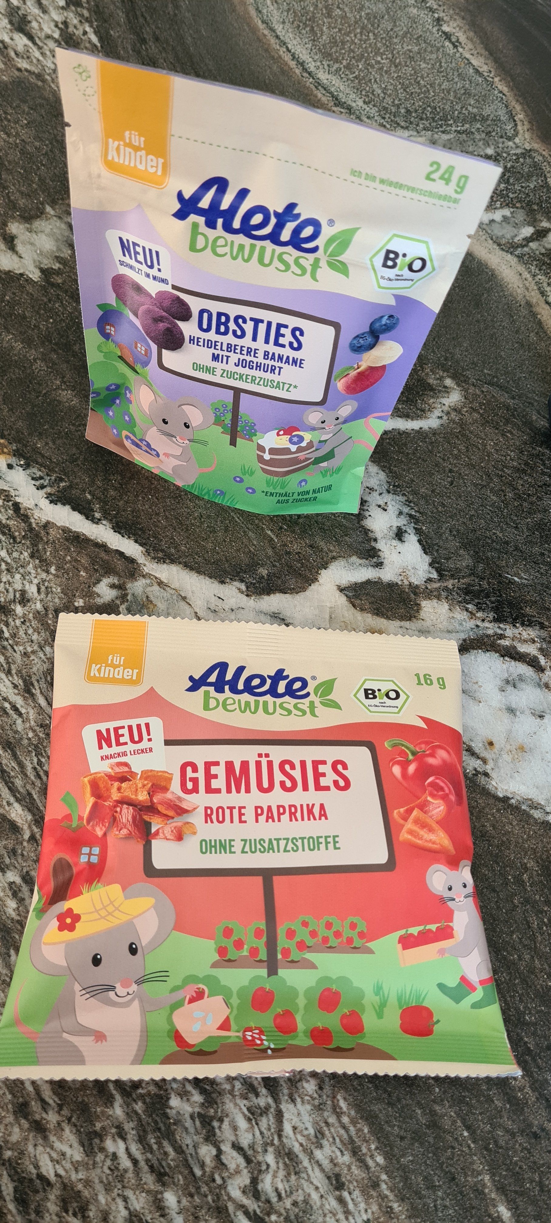 Meine Kinder und ich haben die Alete bewusst OBSTIES HEIDELBEER BANANE MIT JOGHURT und die GEMÜSIES ROTE PAPRIKA getestet. Leider möchten meine Kinder beide Sorten nicht. Ich fand die GEMÜSIES ROTE PAPRIKA auch nicht wirklich schmackhaft. Die OBSTIES HEIDELBEER BANANE MIT JOGHURT waren gut aber im Nachgeschmack etwas säuerlich. Das Design und der wiederverschließbare Beutel der OBSTIES fand ich sehr gut. Außerdem ist mir das Produkt zu teuer und ich würde es nicht kaufen, da meine Kinder es auch nicht gegessen haben.