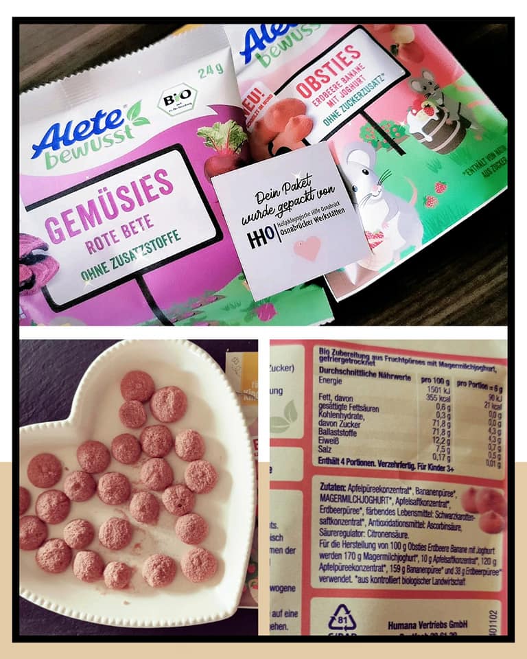 Optisch hat uns das Gesamtprodukt angesprochen, jedoch geschmacklich nur die Obsties. Rote Bete Gemüsies war nicht unser Fall.