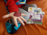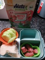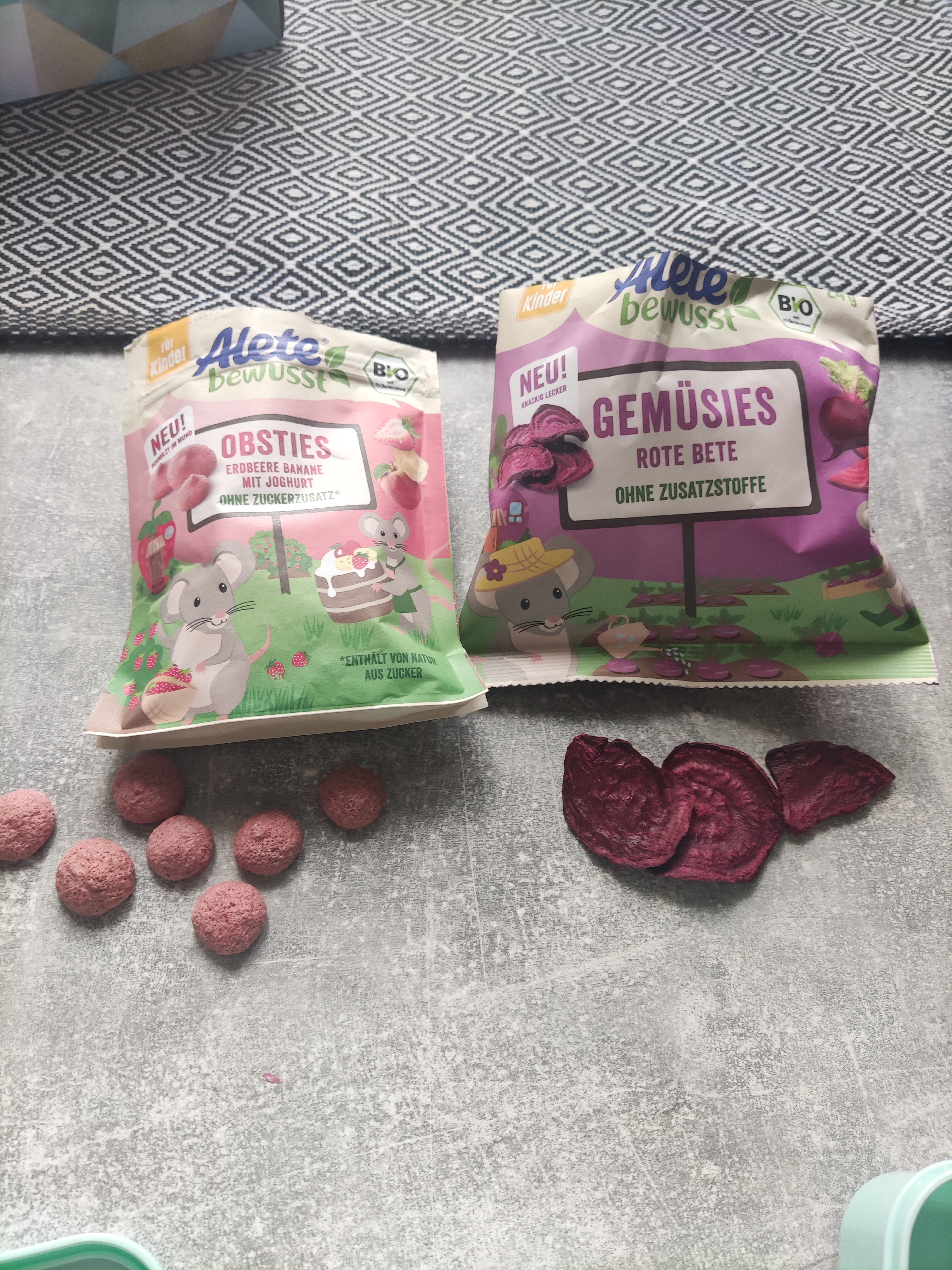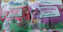 Ich gebe meinem Sohn gerne verschiedenes mit in den Kindi. Die Obsties und Gemüsies werden leider schnell weich wenn sie in seiner Brotbox liegen. Das ist für mich ein Minuspunkt, denn so weich waren sie für ihn nicht mehr interassant! Er hat sie gerne geknabbert wo sie frisch aus der Packung gekommen sind.