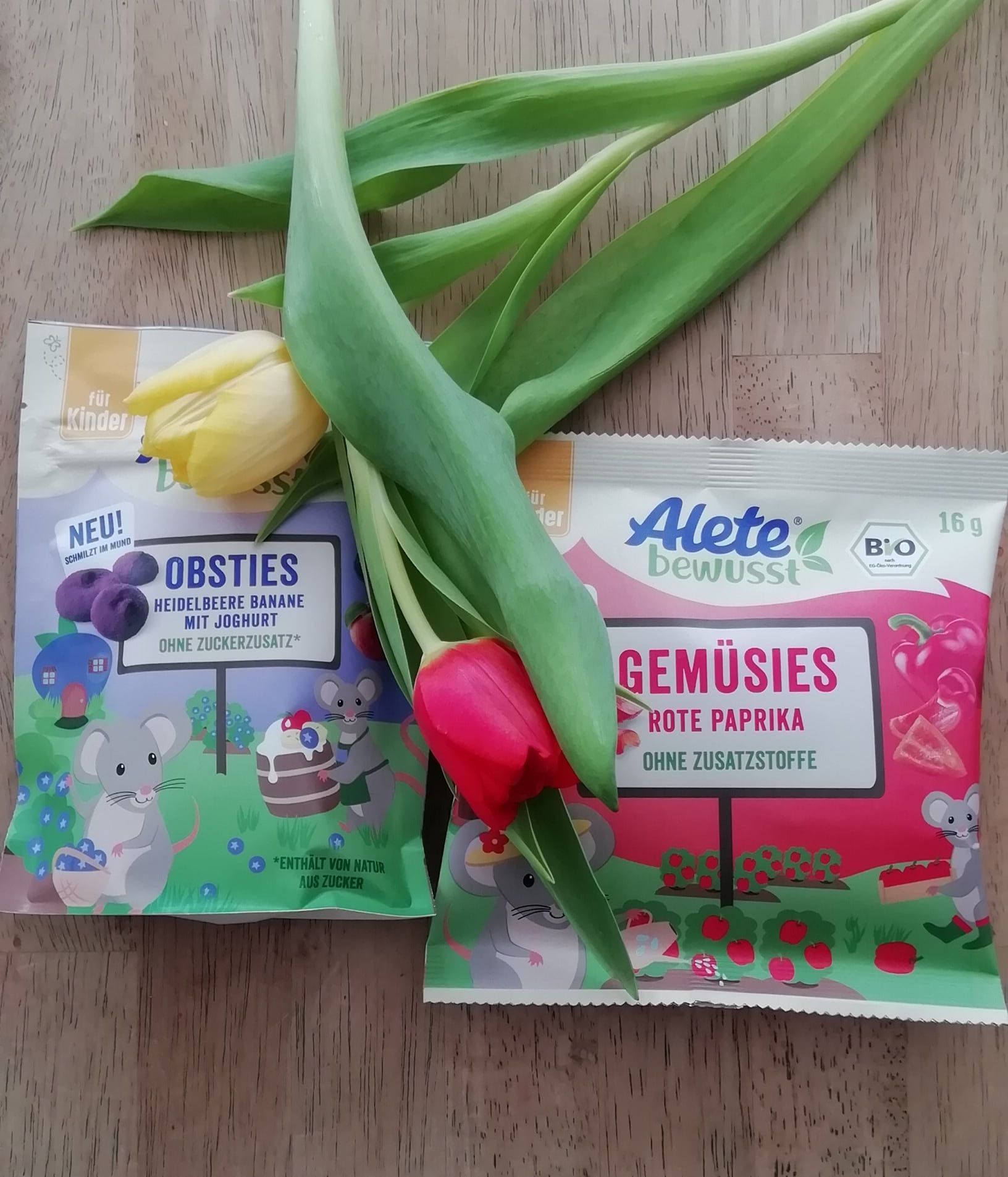 Die Alete bewusst" Obsties und Gemüsies sind nicht nur für Kinder ein Snack für zwischendurch, sondern auch für Erwachsene. Besonders die "Gemüsies" in der Sorte Rote Paprika sind total lecker.