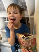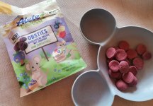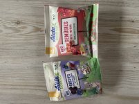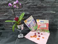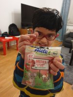 Mein Sohn hat sehr schnell die beides Tüte gegessen und war sehr zufrieden. Sind ohne Zuckerzusatz und das gefällt mir sehr.