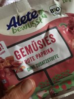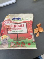Die Paprika Snacks waren gar nicht lecker, sehr trocken und die Haut ist hart und unangenehm zum kauen. Ich habe sie trotzdem sehr gut für die Bolognese Soße gebraucht!