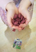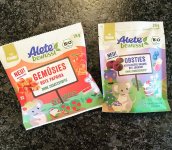 Beide Sorten wurden schnell verputzt, ich habe auch probiert und war von beiden Sorten begeistert. Ich habe bereits die anderen Soeten nachgekauft. Sie werden gern auf dem Spielplatz, in meiner Krabbelgruppe und unterwegs genascht. Allen Kineern die Probiert haben, hat es geschmeckt. Ich muss nächstes mal wohl mehr mitnehmen.