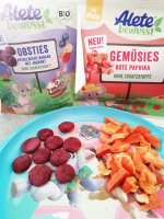 Die Gemüsies finde ich persönlich auch super. Wir hatten Paprika und beim Öffnen der Tüte duftete es auch so schön nach Paprika. Die Stückchengröße ist perfekt und die Konsistenz ist super! Aber geschmacklich fanden meine Kinder die Obsties viel besser.