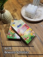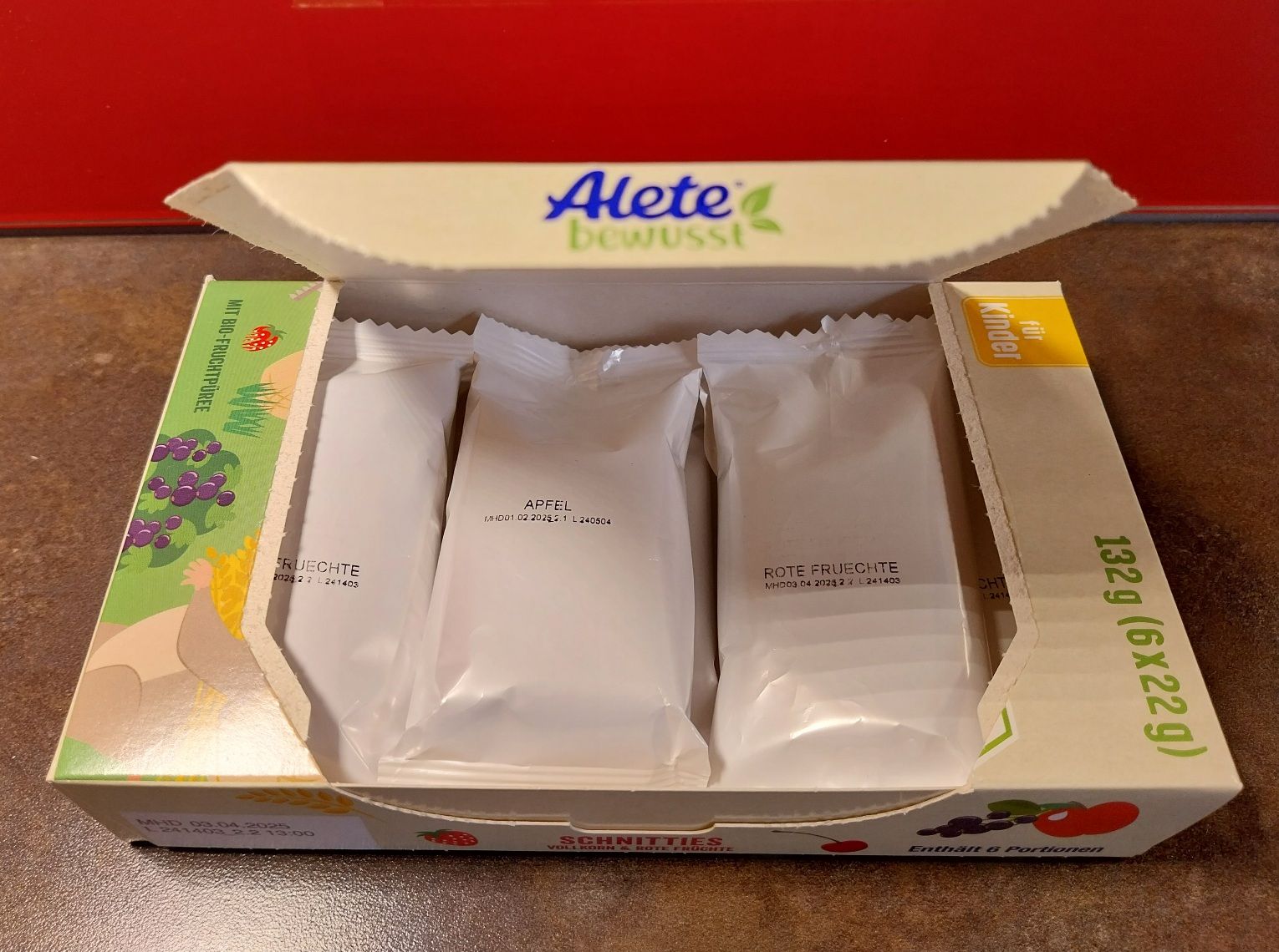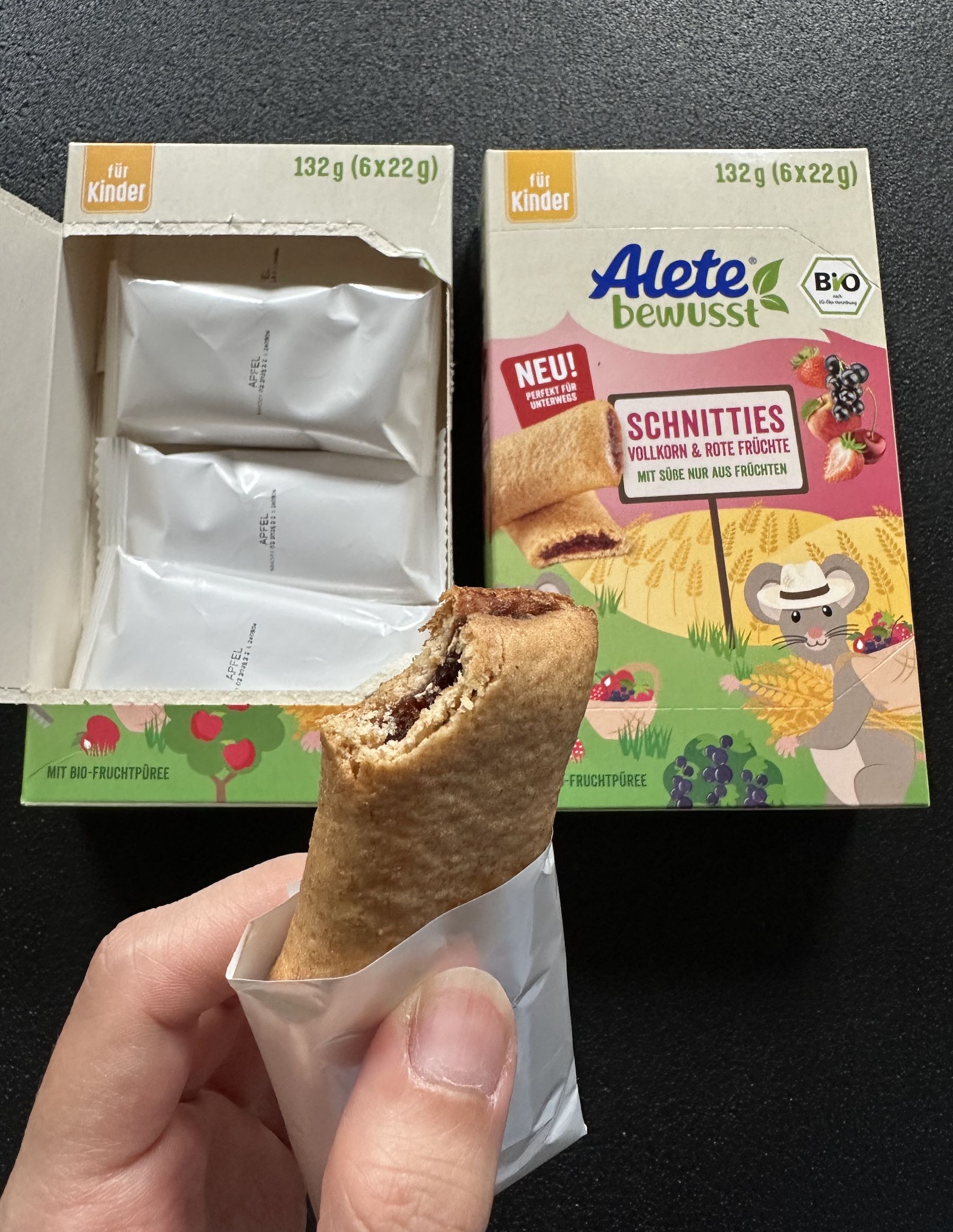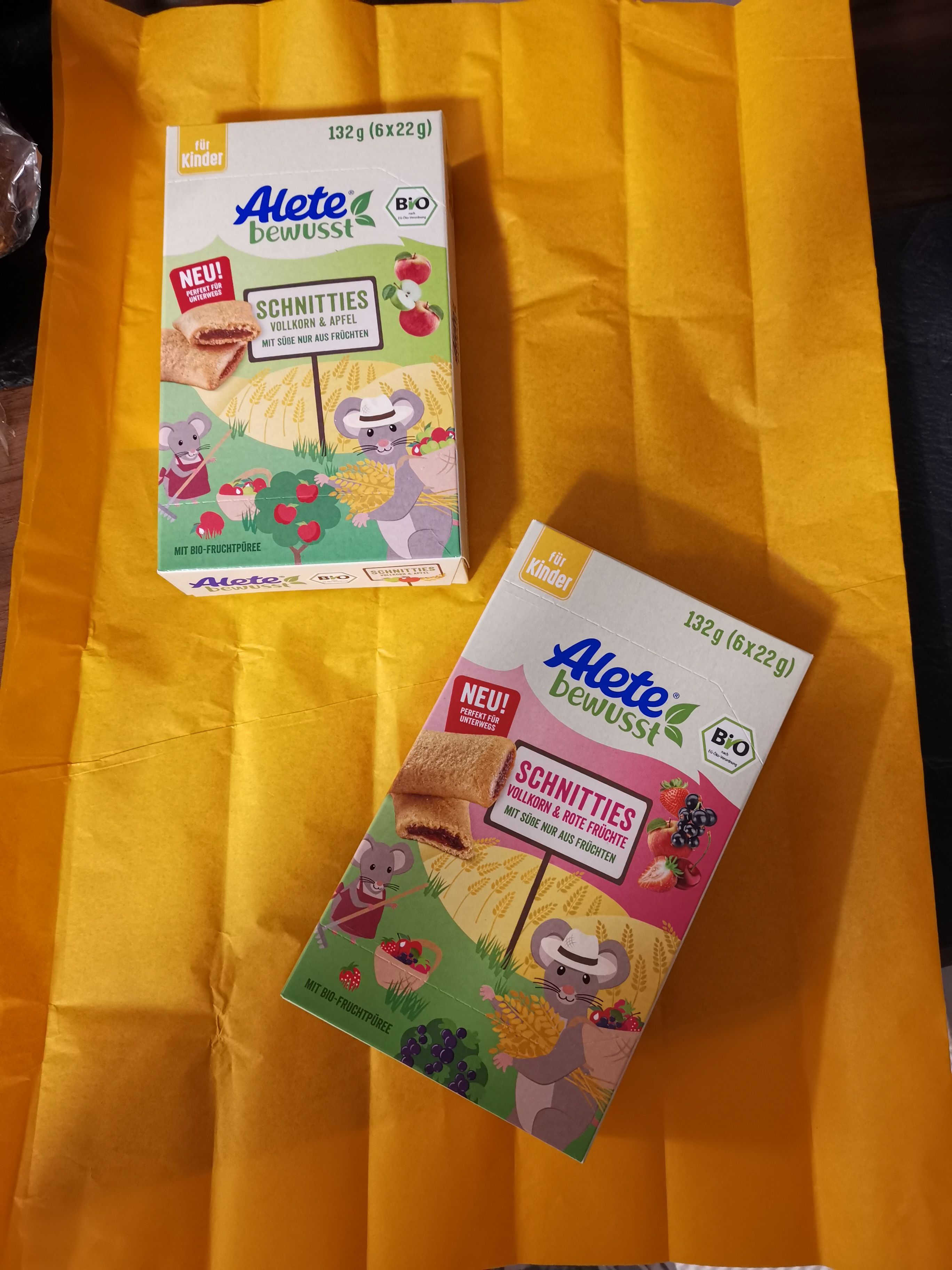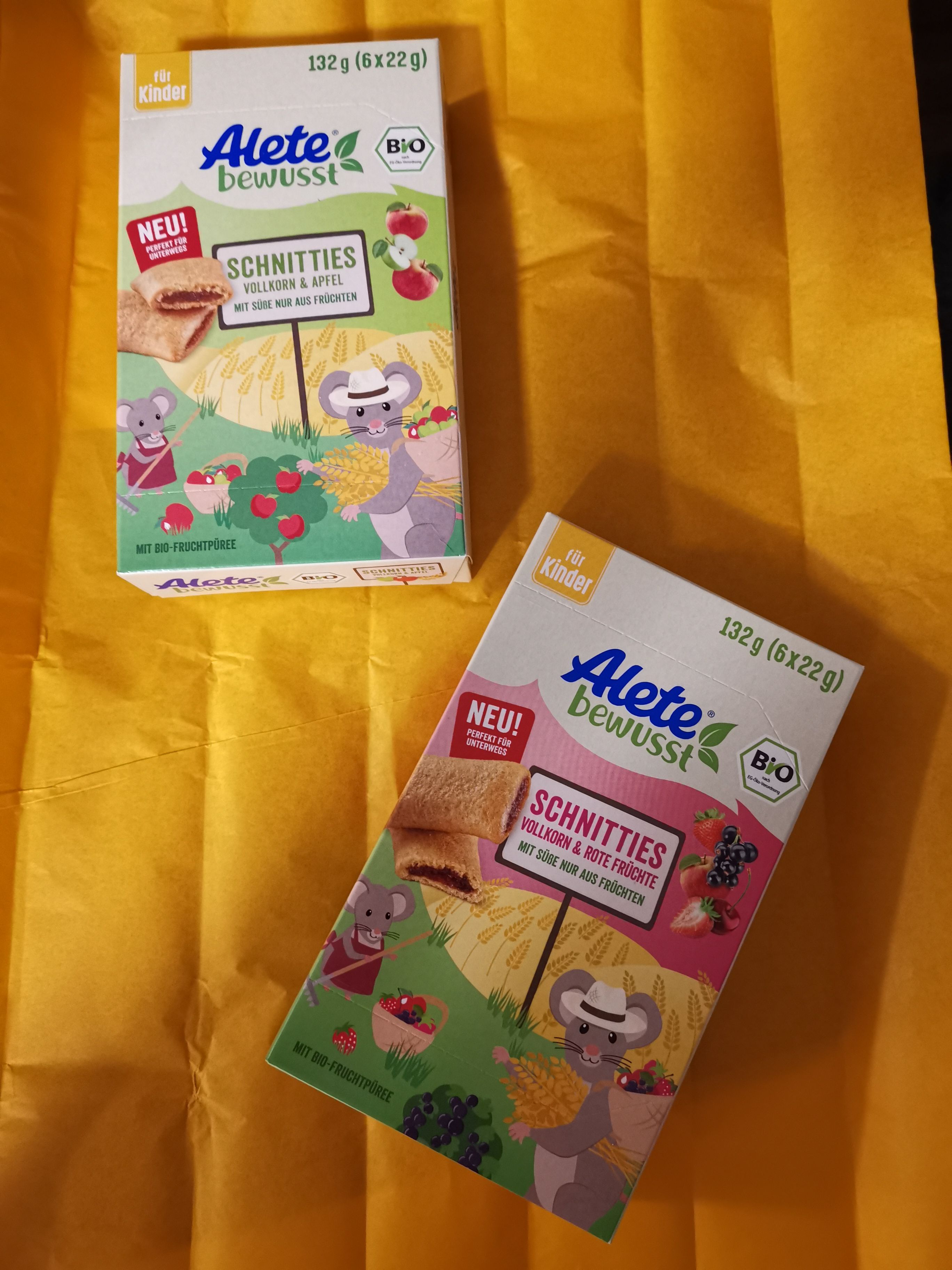 Schupp di wupp, und weg waren die Alete bewusst Schnitties 😅.Leider hatten wir kaum noch Zeit gehabt für gute Fotos. Allso wir fanden sie sie sehr lecker. Sie sind sehr süß und fruchtig. Klasse finde ich das nichts schmilzt und auch nicht Krümmelt. Sie sind perfekt für unterwegs, meine Tochter und ihre Freunde haben sie gerne gegessen. Ich empfand das sie lange drauf rum kauen konnten und sie auch satt machen. Defentiv für uns eine Snack Alternative. Werden wir ganz klar wieder kaufen