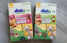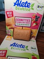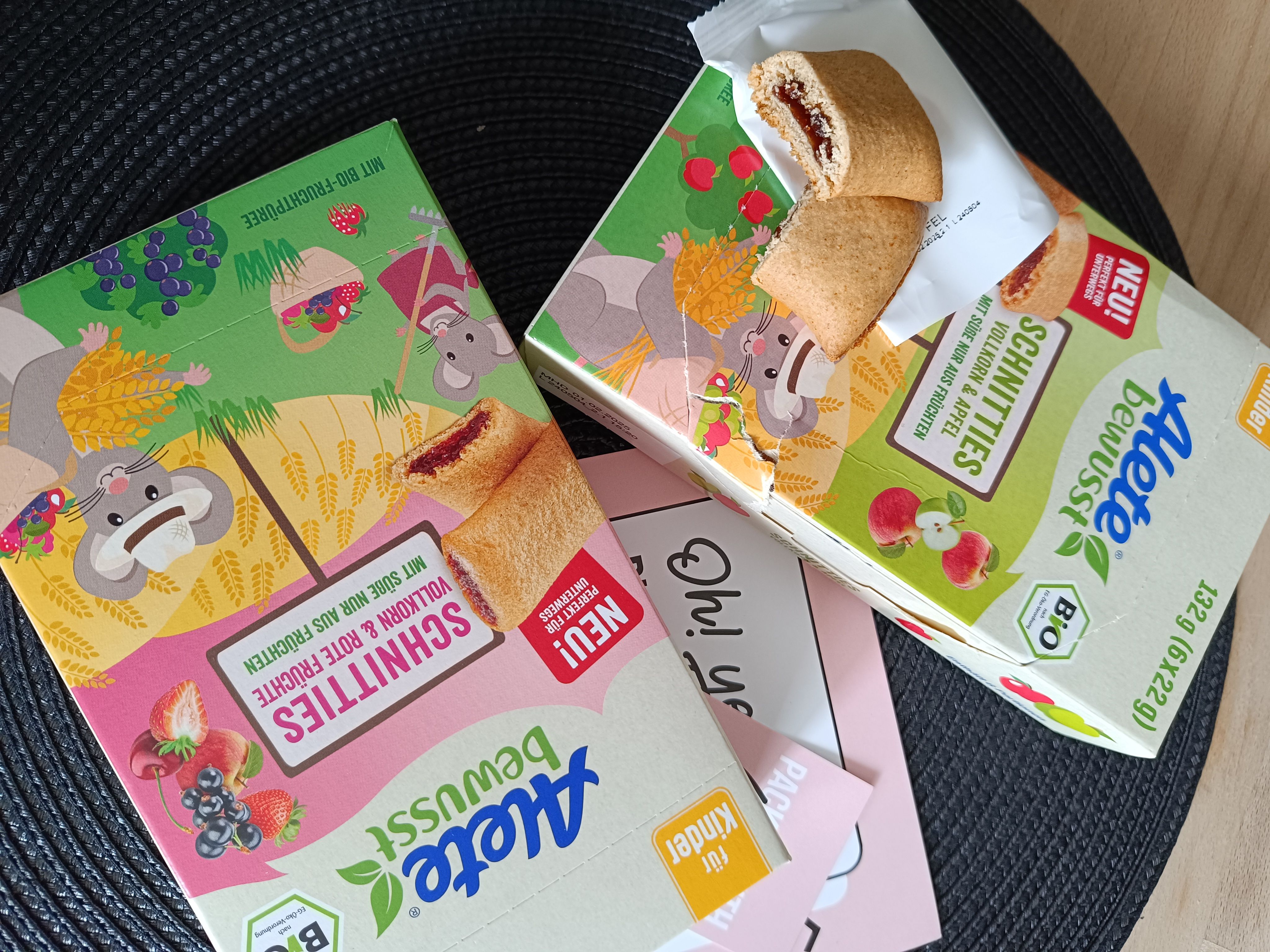 Meine Kids haben Alete Bewusst Schnitties Volkorn & Rote Früchte zum ersten Mal probiert und ich finde dieses Gebäck sehr lecker.