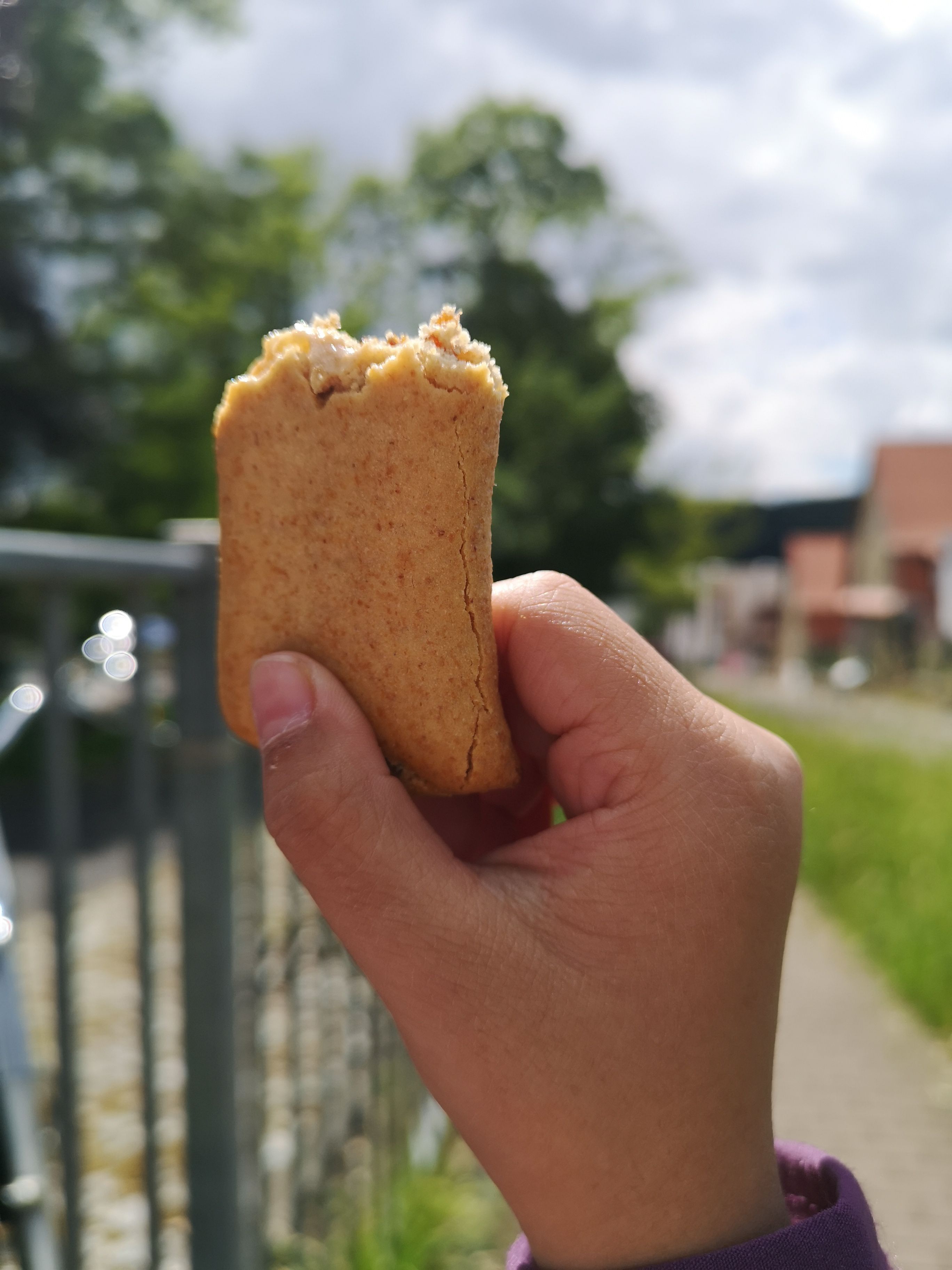 Mich haben die Kekse am Ende doch nicht ganz überzeugt. Sie schmecken recht trocken und sind in viel Plastik eingepackt. Man kommt unterwegs auch ohne gut klar.