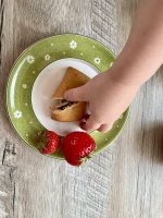 Super Snack für zwischendurch. Den Kindern hat es super geschmeckt und sie konnten nicht genug kriegen. Für größere Kinder wäre daher eine größere "Schnitte" schön, da man sonst sehr viel Müll hat.