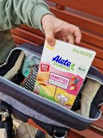 Die Alete bewusst Schnitties sind perfekt für unterwegs, da sie einzeln entnehmbar sind. Ein gesunder Snack to Go der groß und klein schmeckt.