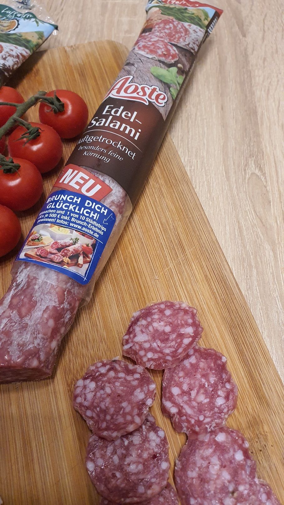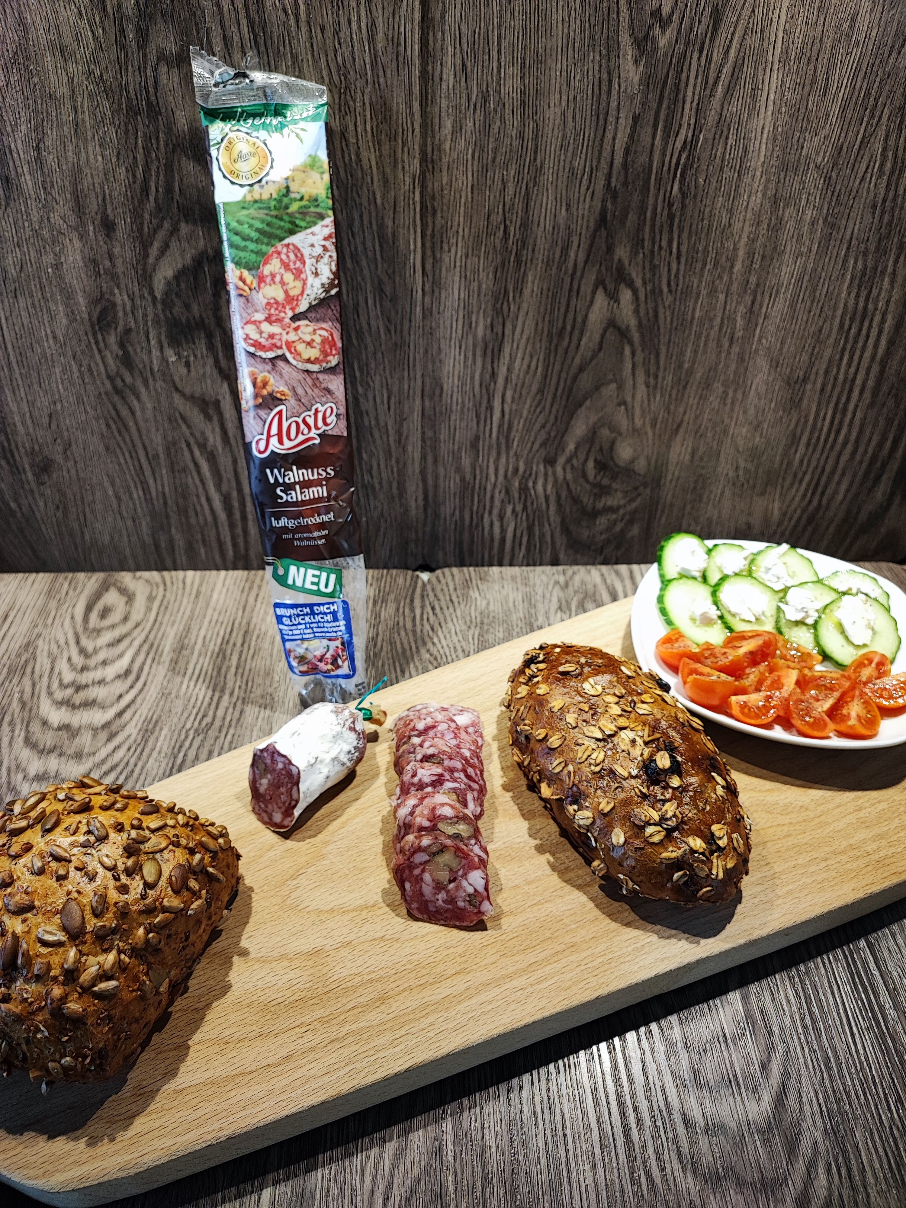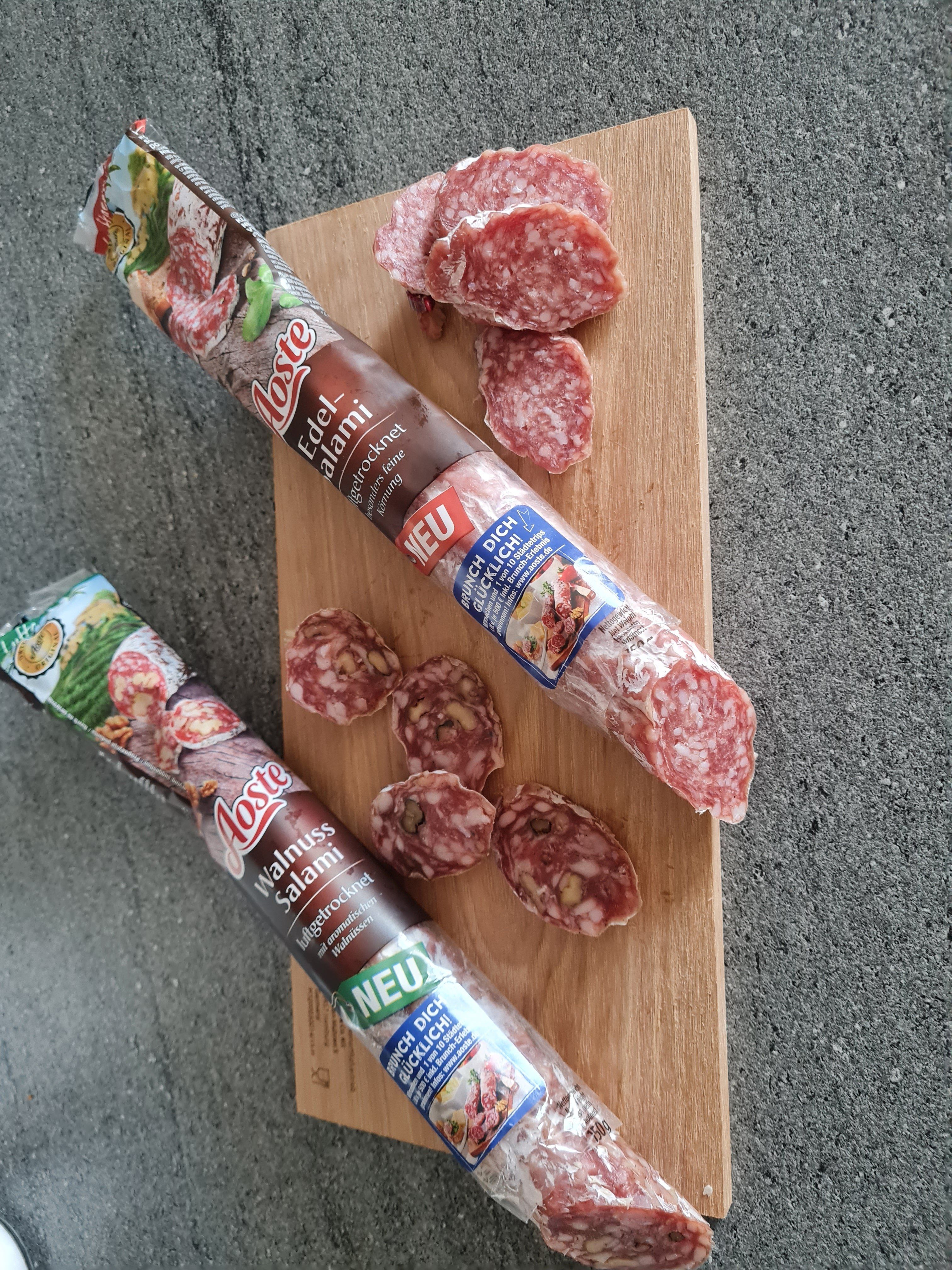 Die Aoste Salami genieße ich am liebsten zum Frühstück. Mit Käse, Tomaten und ein gutes Brot dazu, was braucht man mehr!? Die Sorte mit Walnüssen hat mir am besten geschmeckt und werde ich definitiv nachkaufen :)
