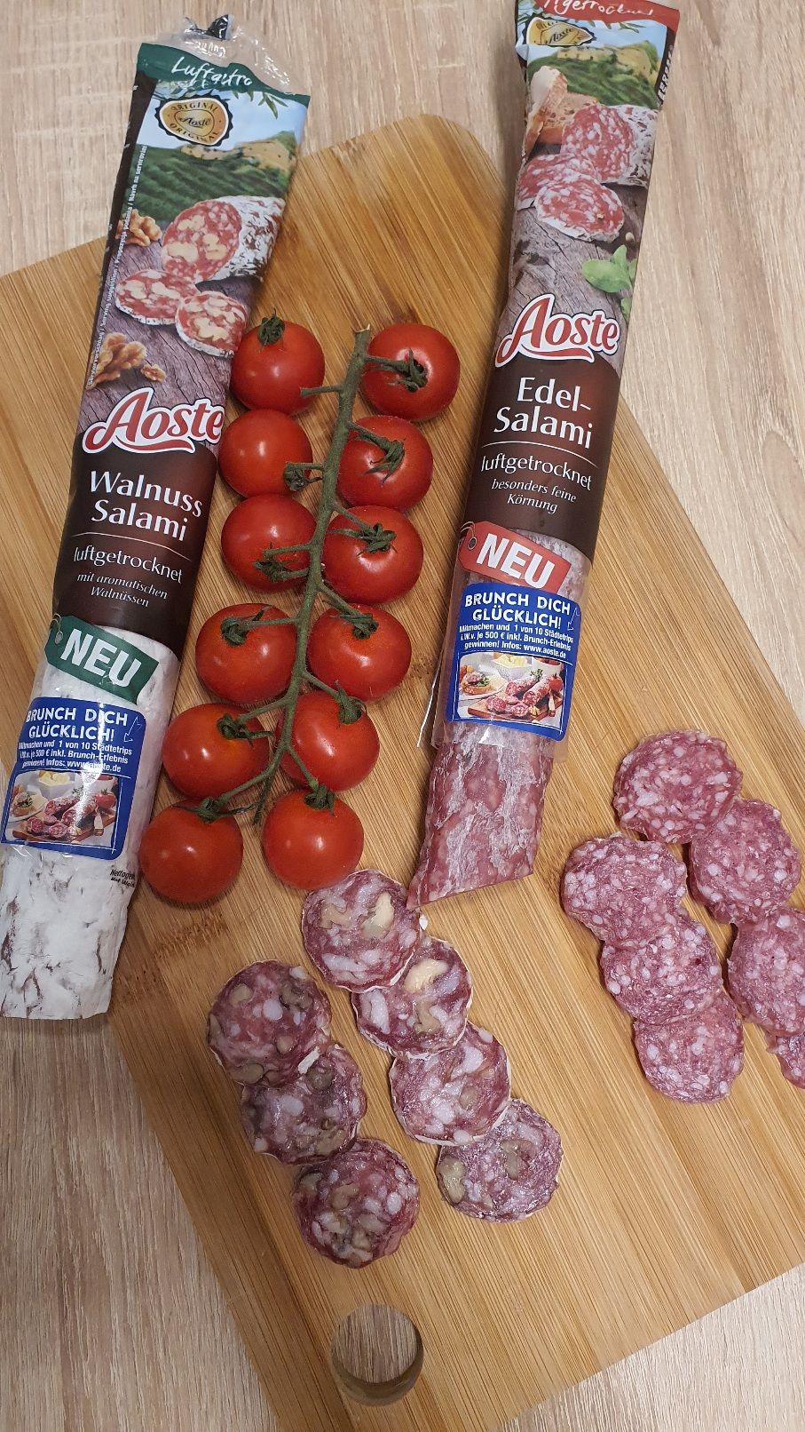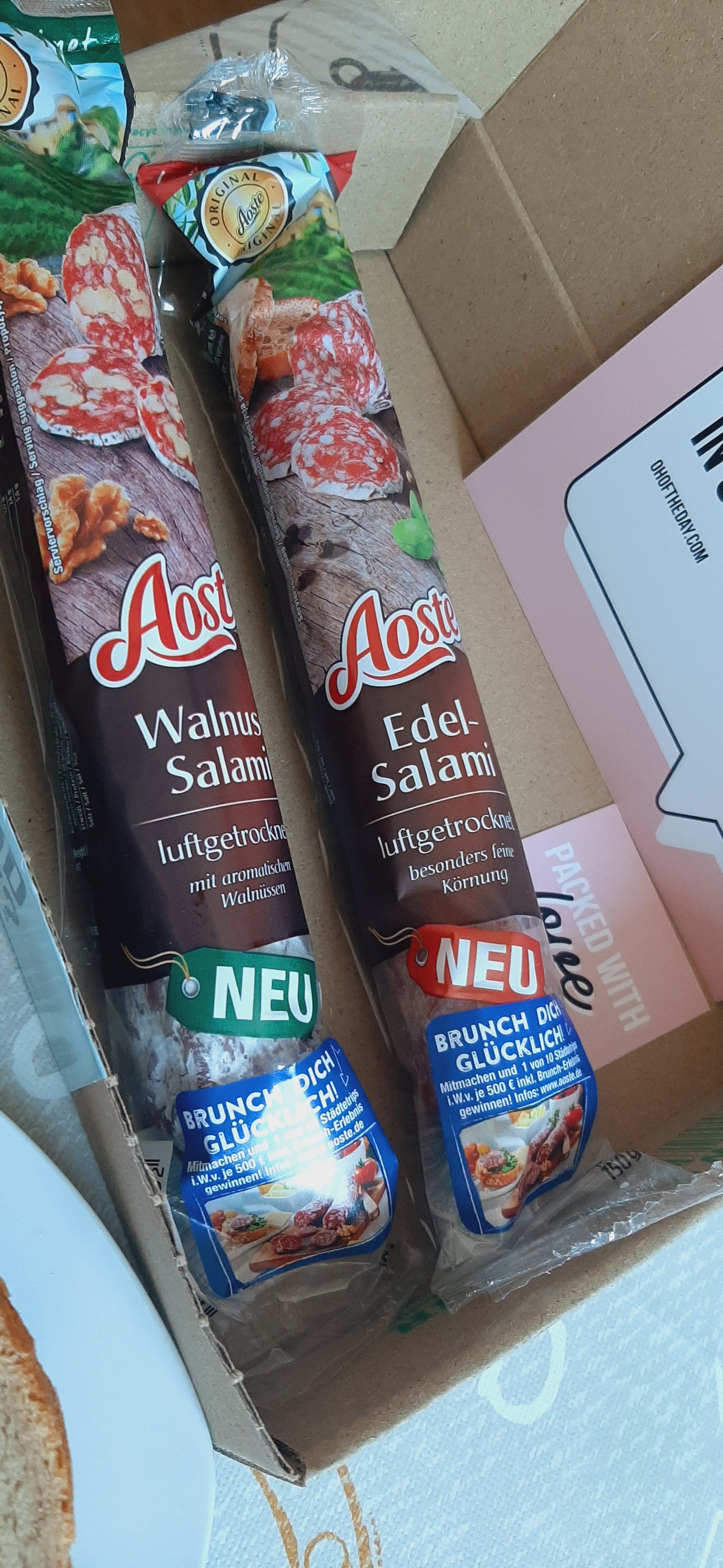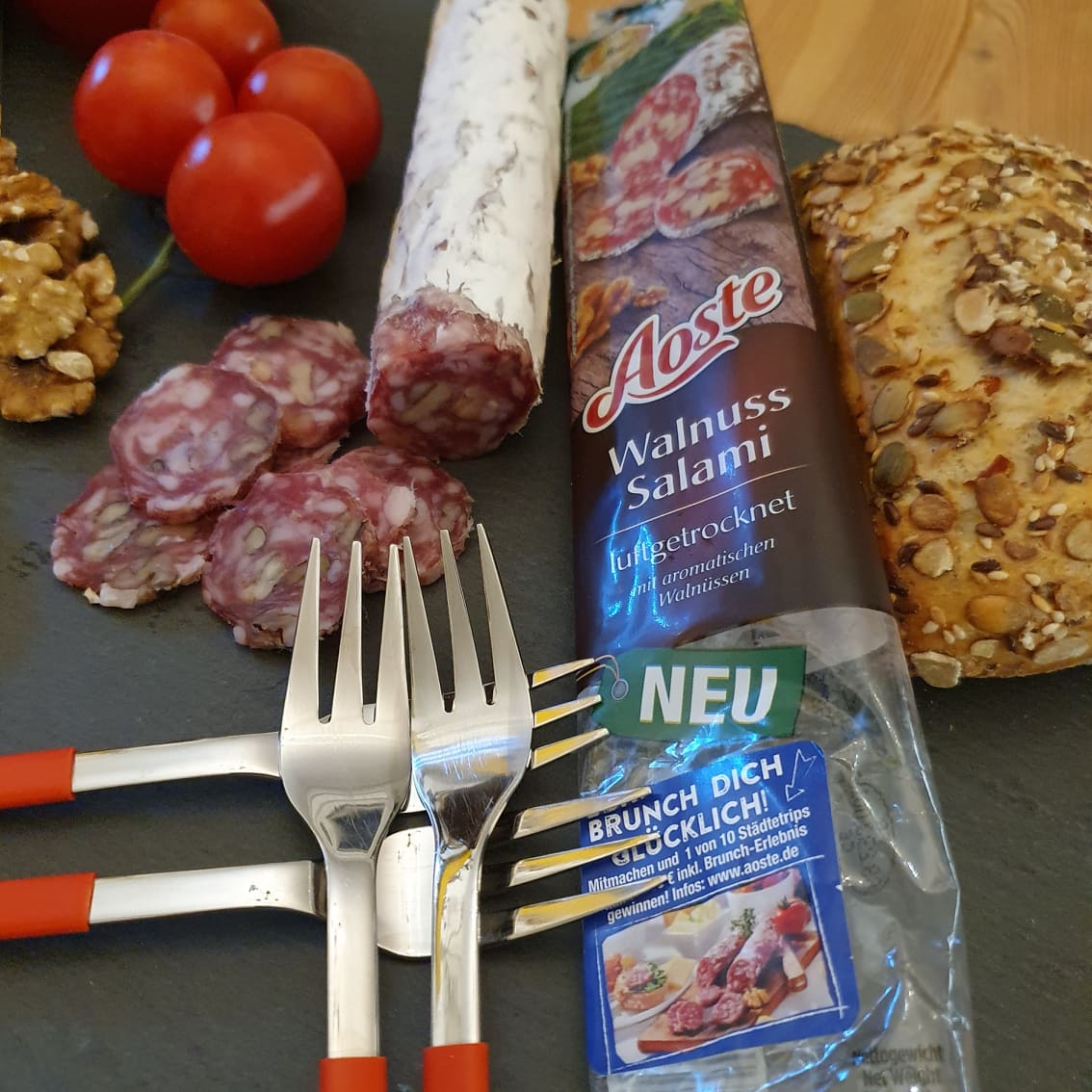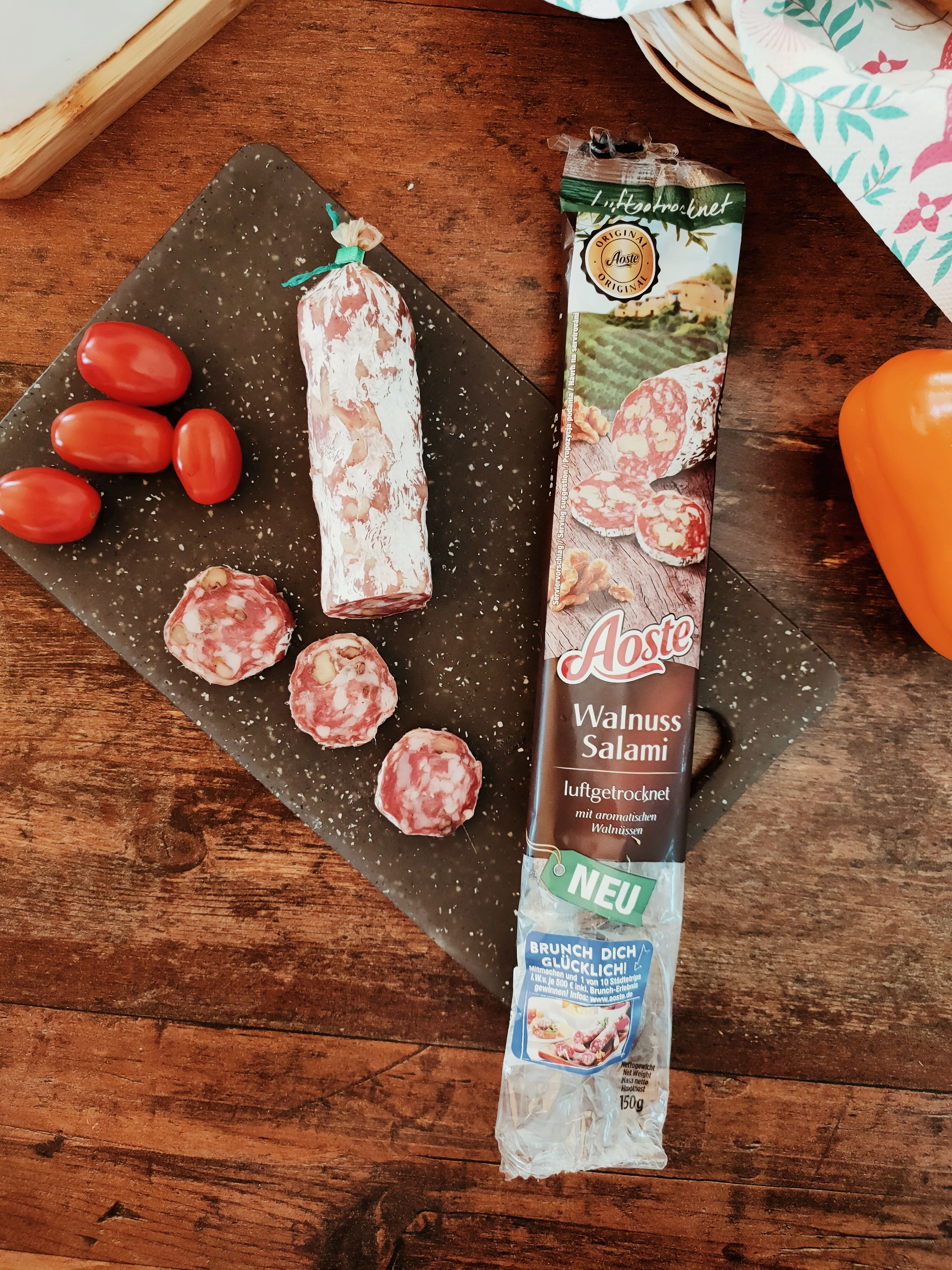 Die Aoste Salami genieße ich am liebsten zum Frühstück. Mit Käse, Tomaten und ein gutes Brot dazu, was braucht man mehr!? Die Sorte mit Walnüssen hat mir am besten geschmeckt und werde ich definitiv nachkaufen :)