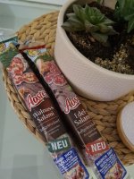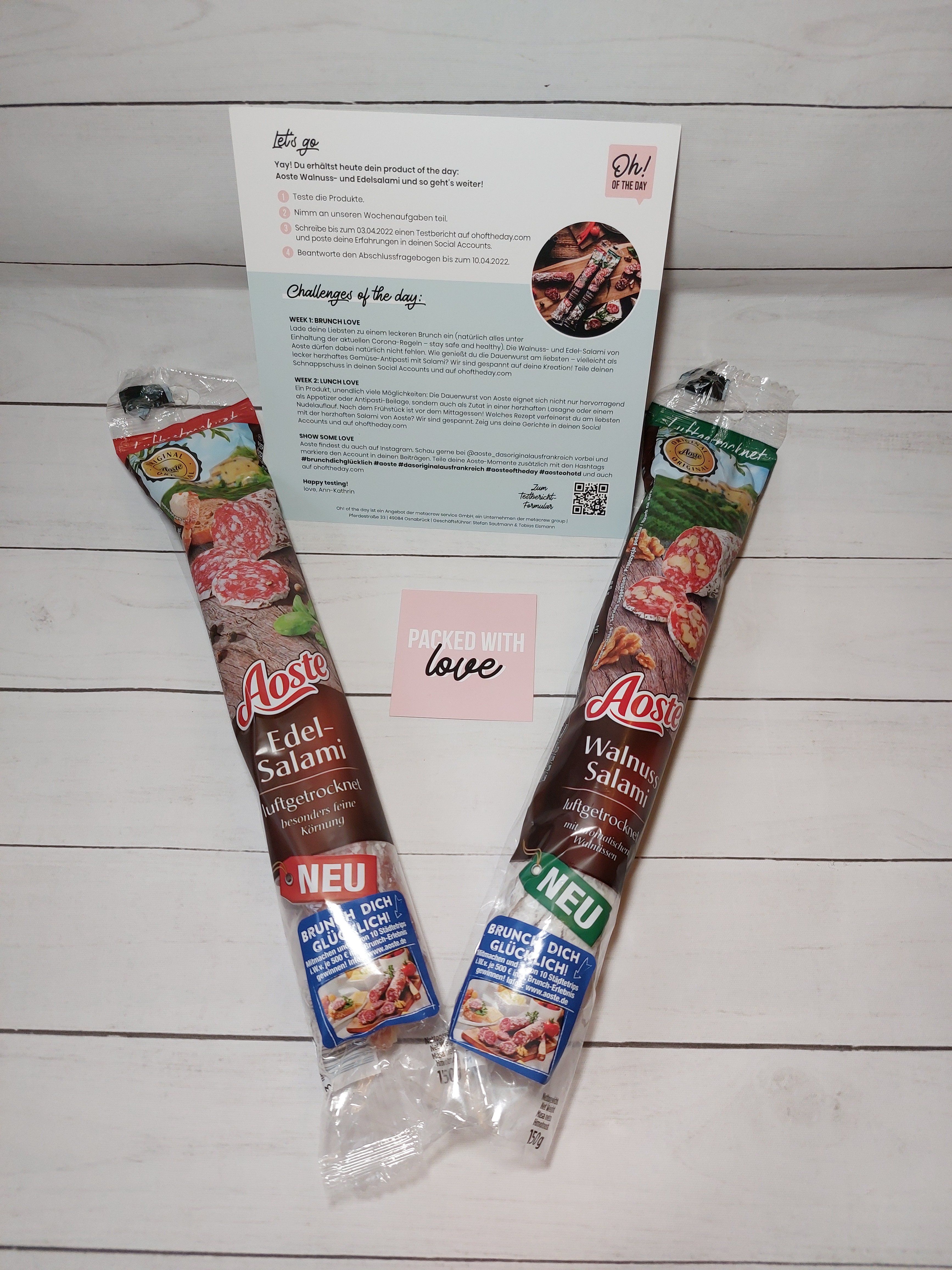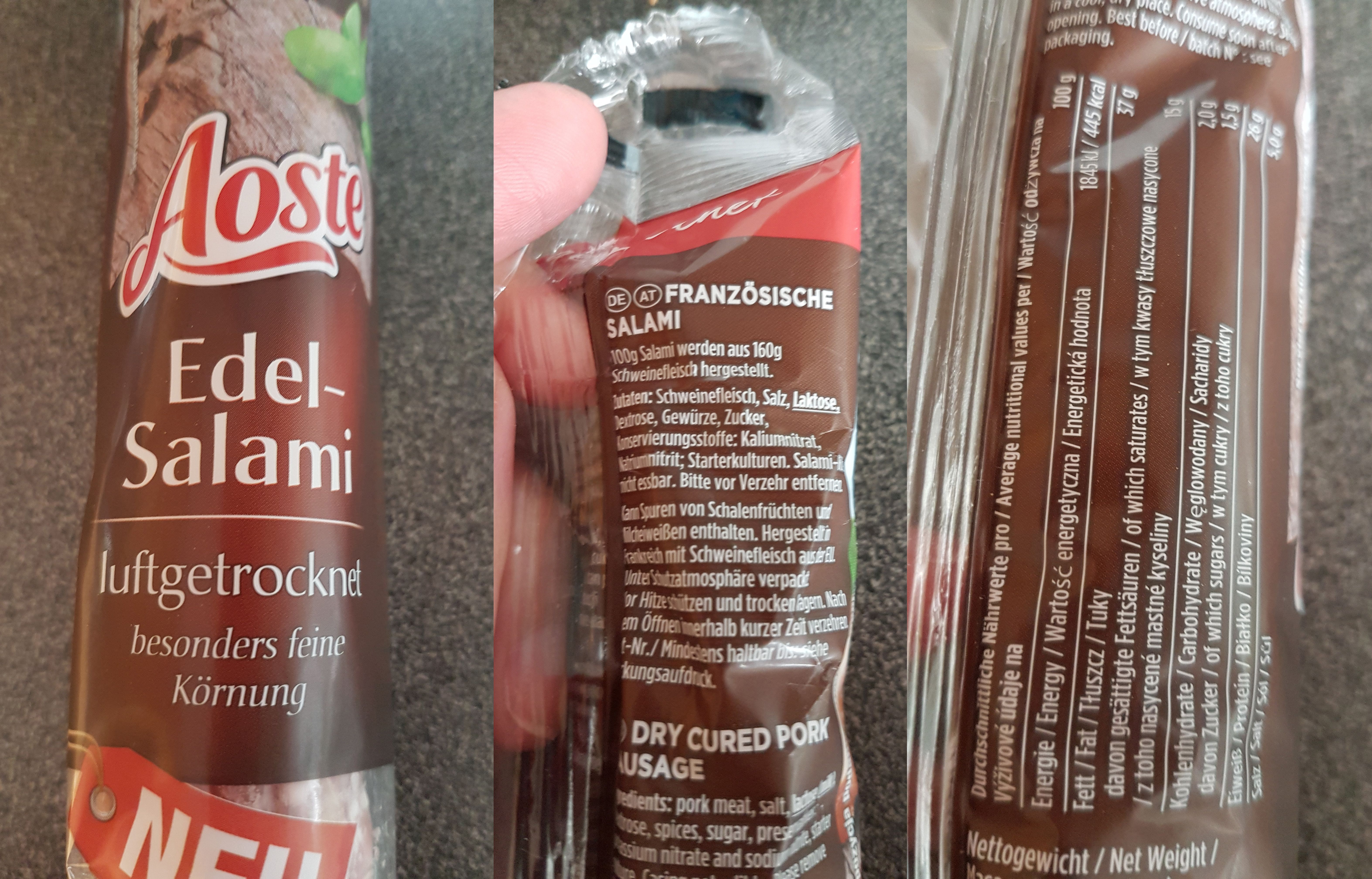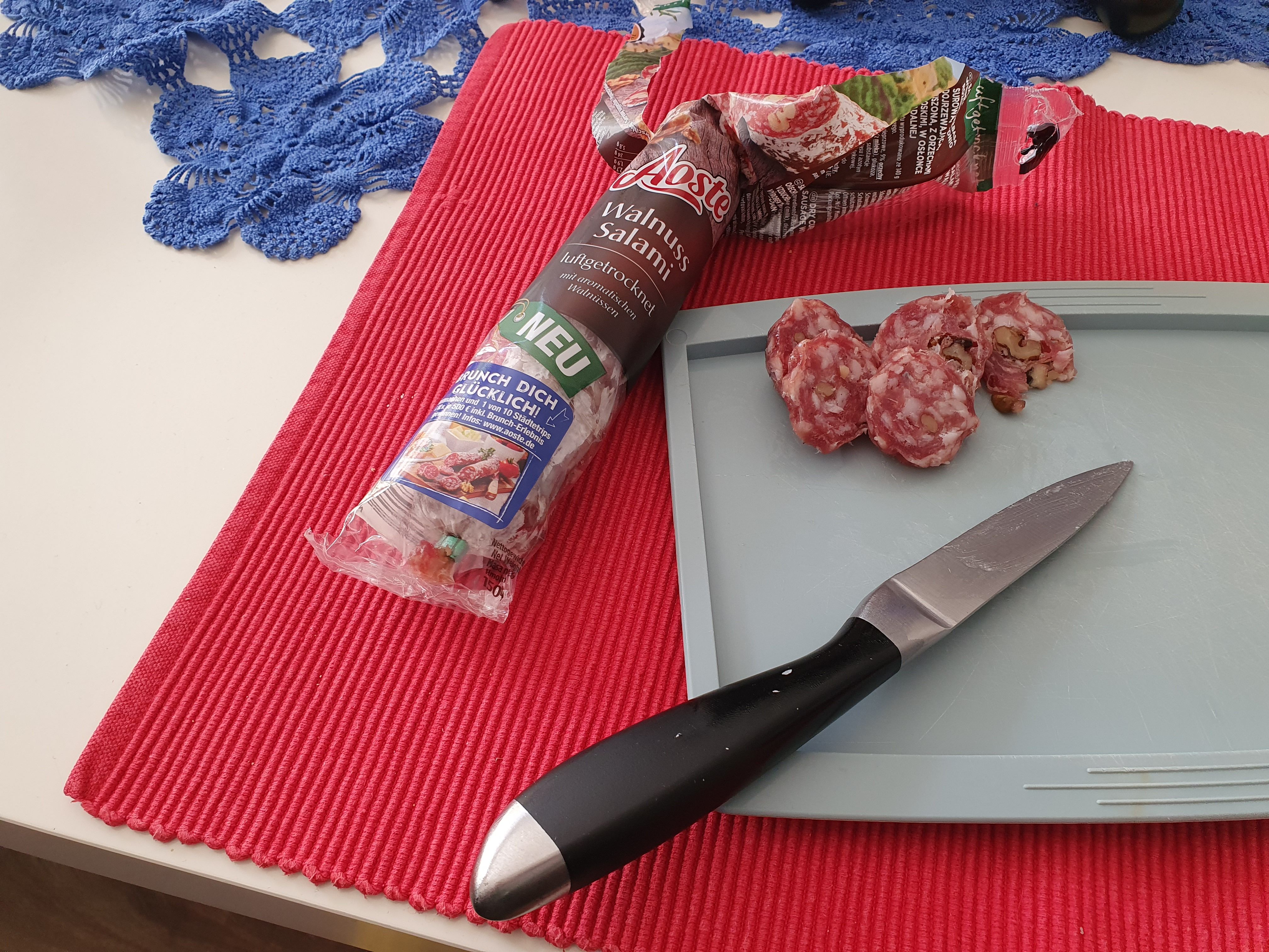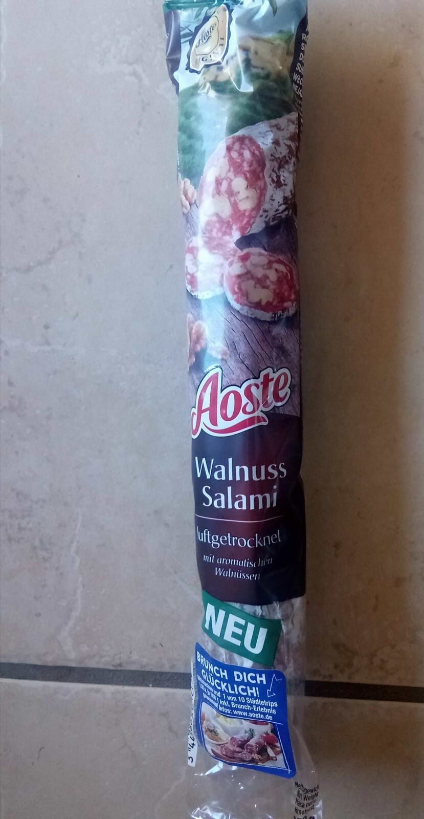 Ich durfte die Wurst von Aoste testen. Einmal die Classic und einmal die Sorte Walnuss. Ich bin ein absoluter Salami-Fan und kenne auch die Marke schon. Jedoch hat mir keine der beiden Sorten besonders geschmeckt. Ich persönlich würde sie nicht mehr kaufen, jedoch ist dies halt immer geschmackssache.