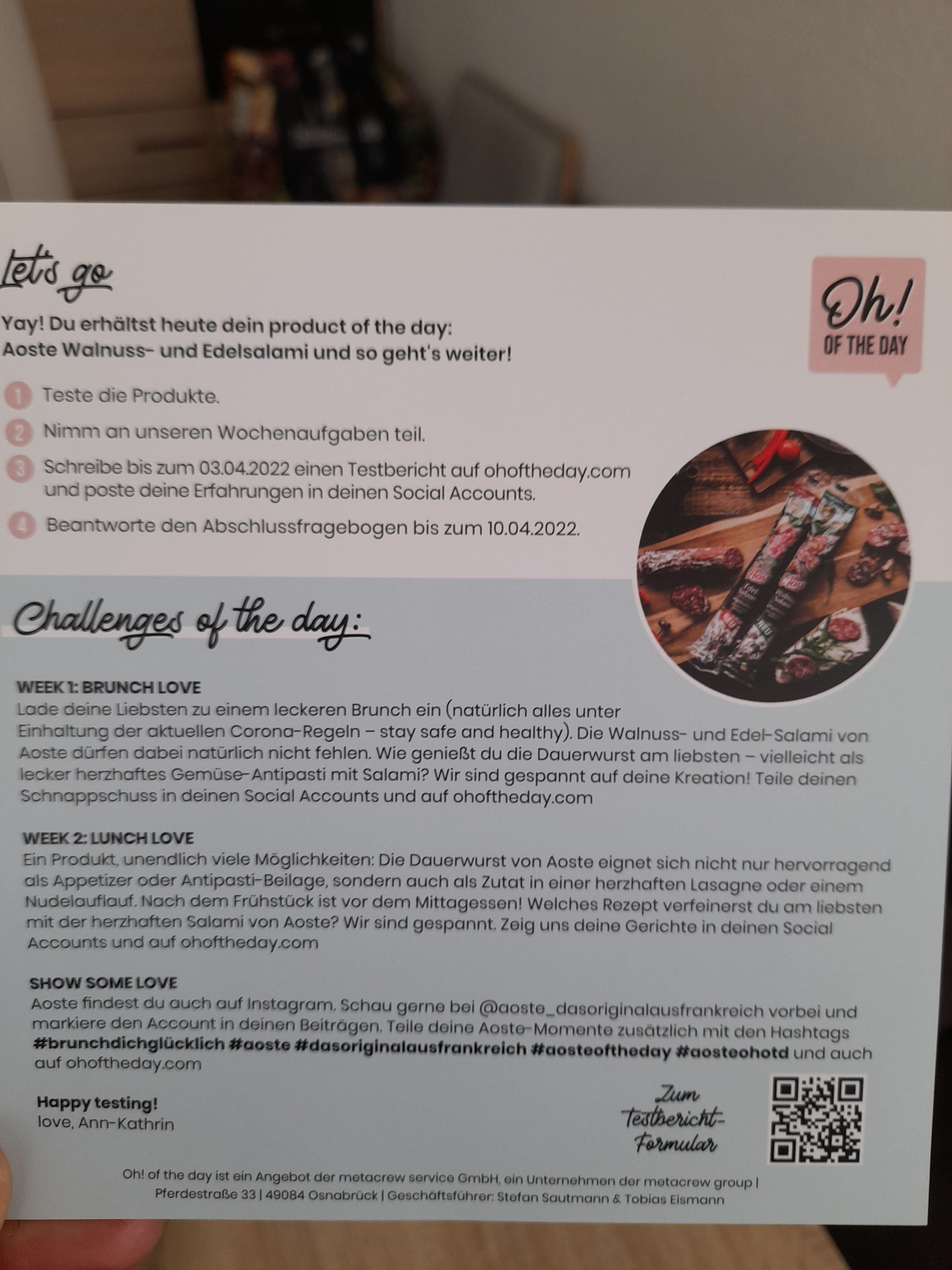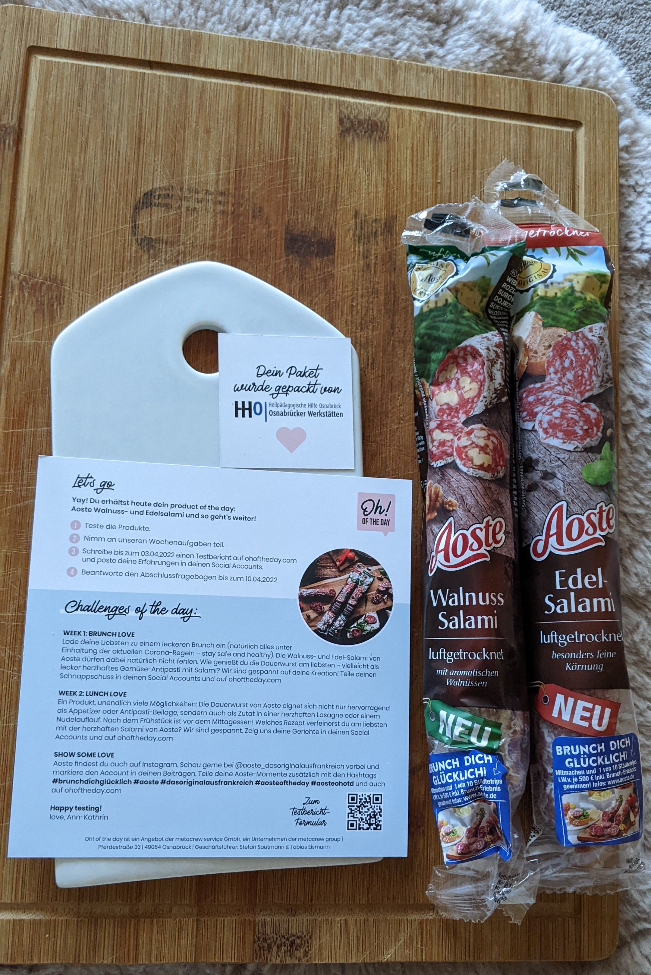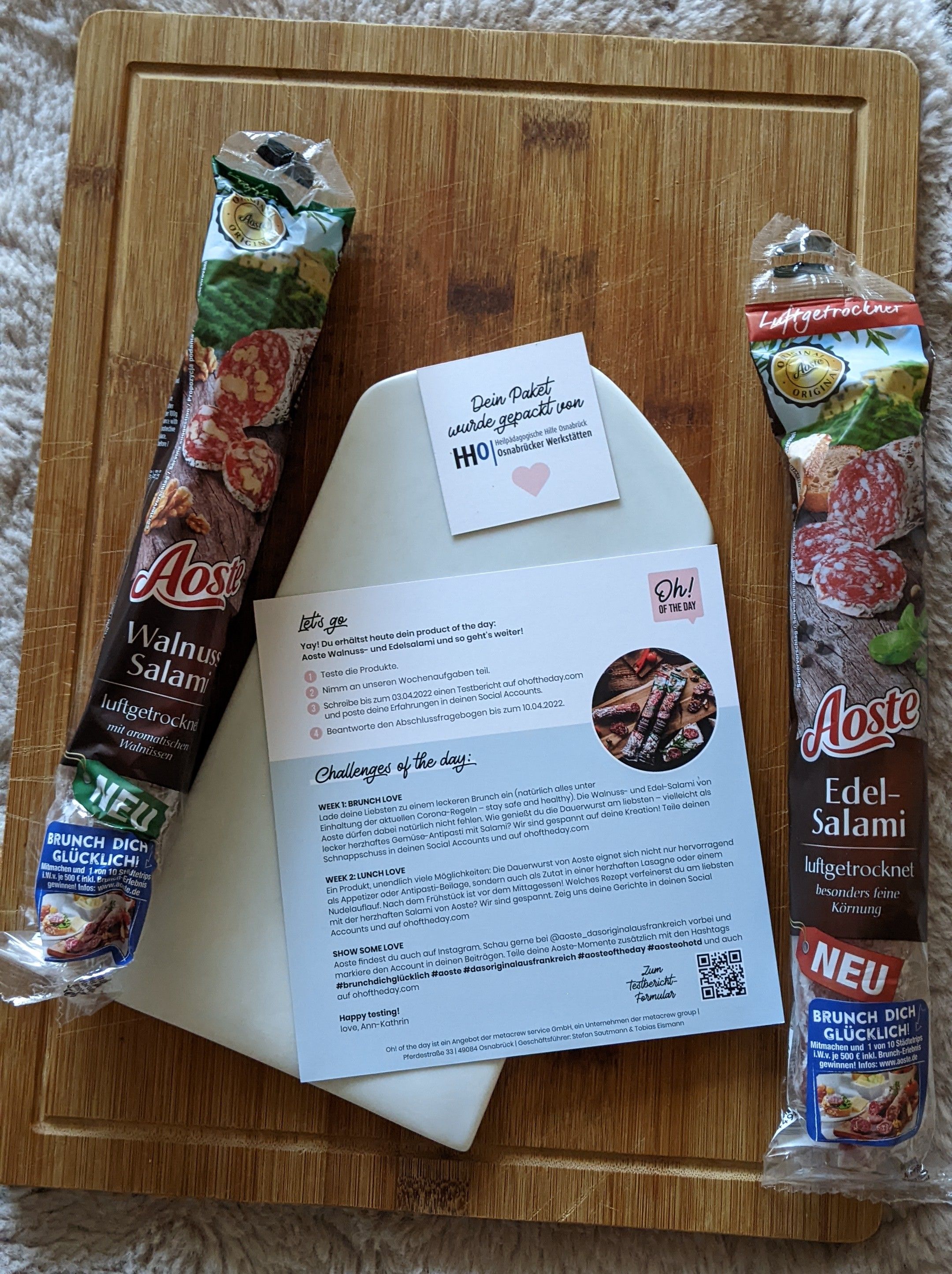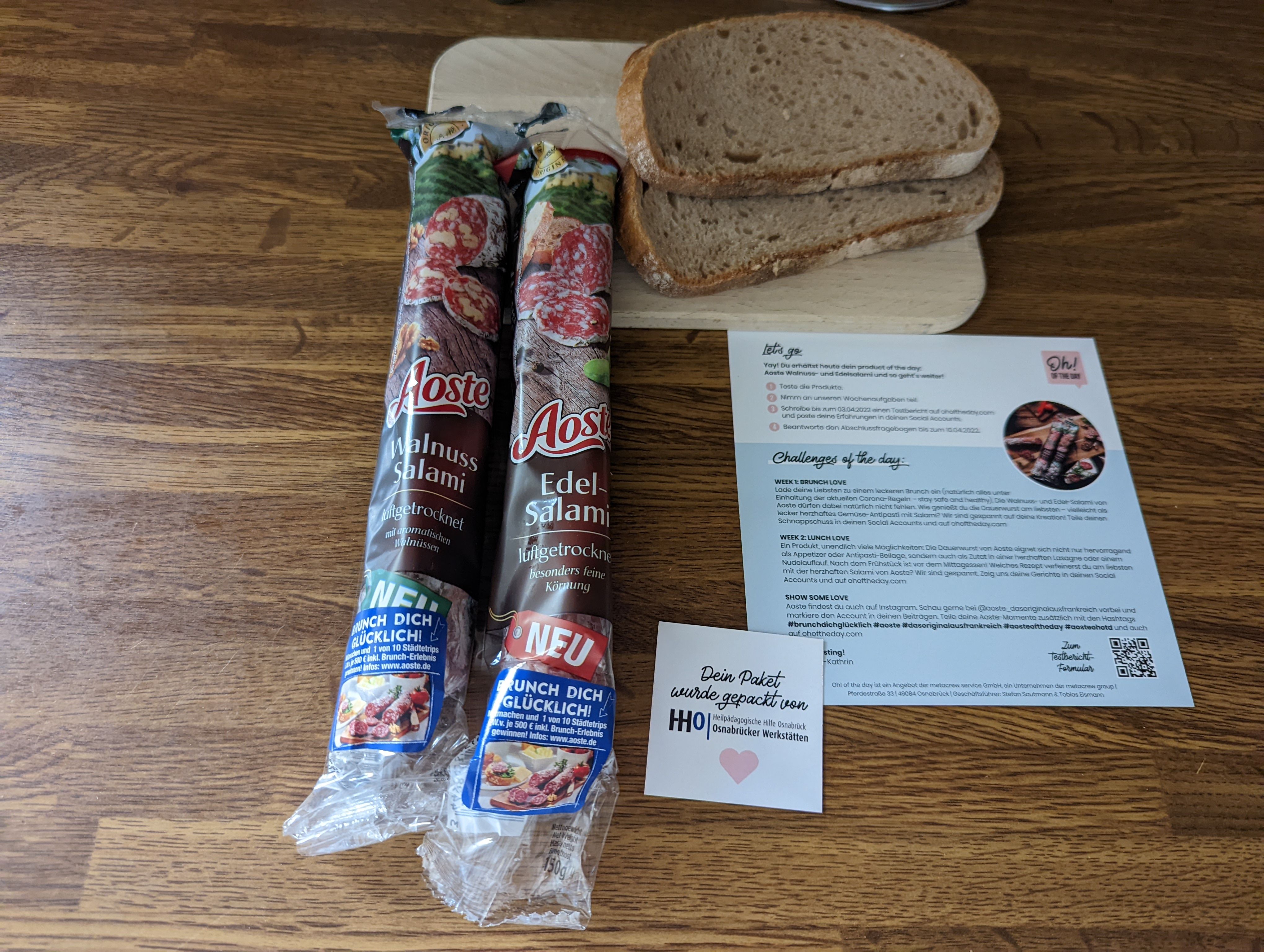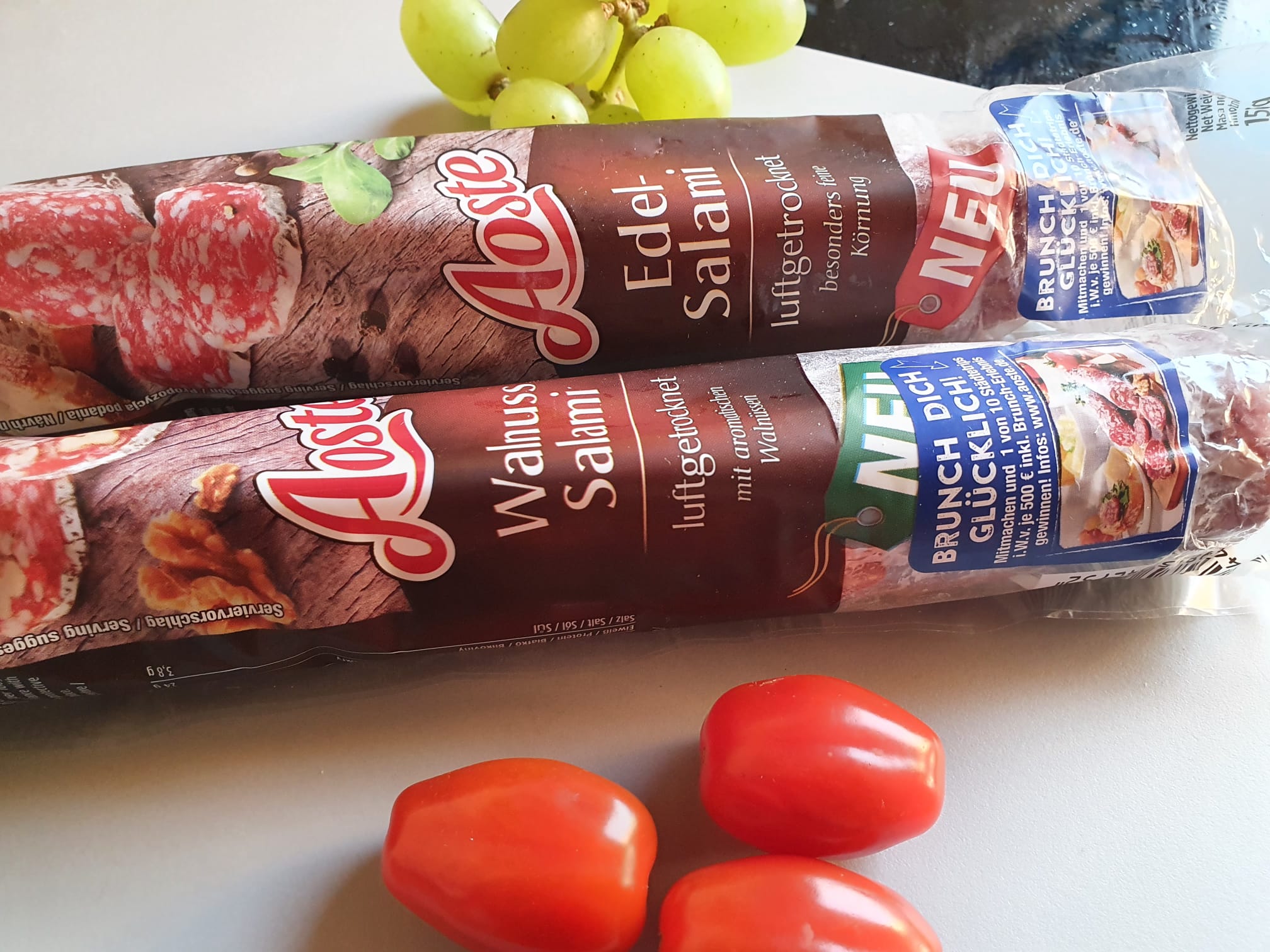 Ich durfte die Wurst von Aoste testen. Einmal die Classic und einmal die Sorte Walnuss. Ich bin ein absoluter Salami-Fan und kenne auch die Marke schon. Jedoch hat mir keine der beiden Sorten besonders geschmeckt. Ich persönlich würde sie nicht mehr kaufen, jedoch ist dies halt immer geschmackssache.