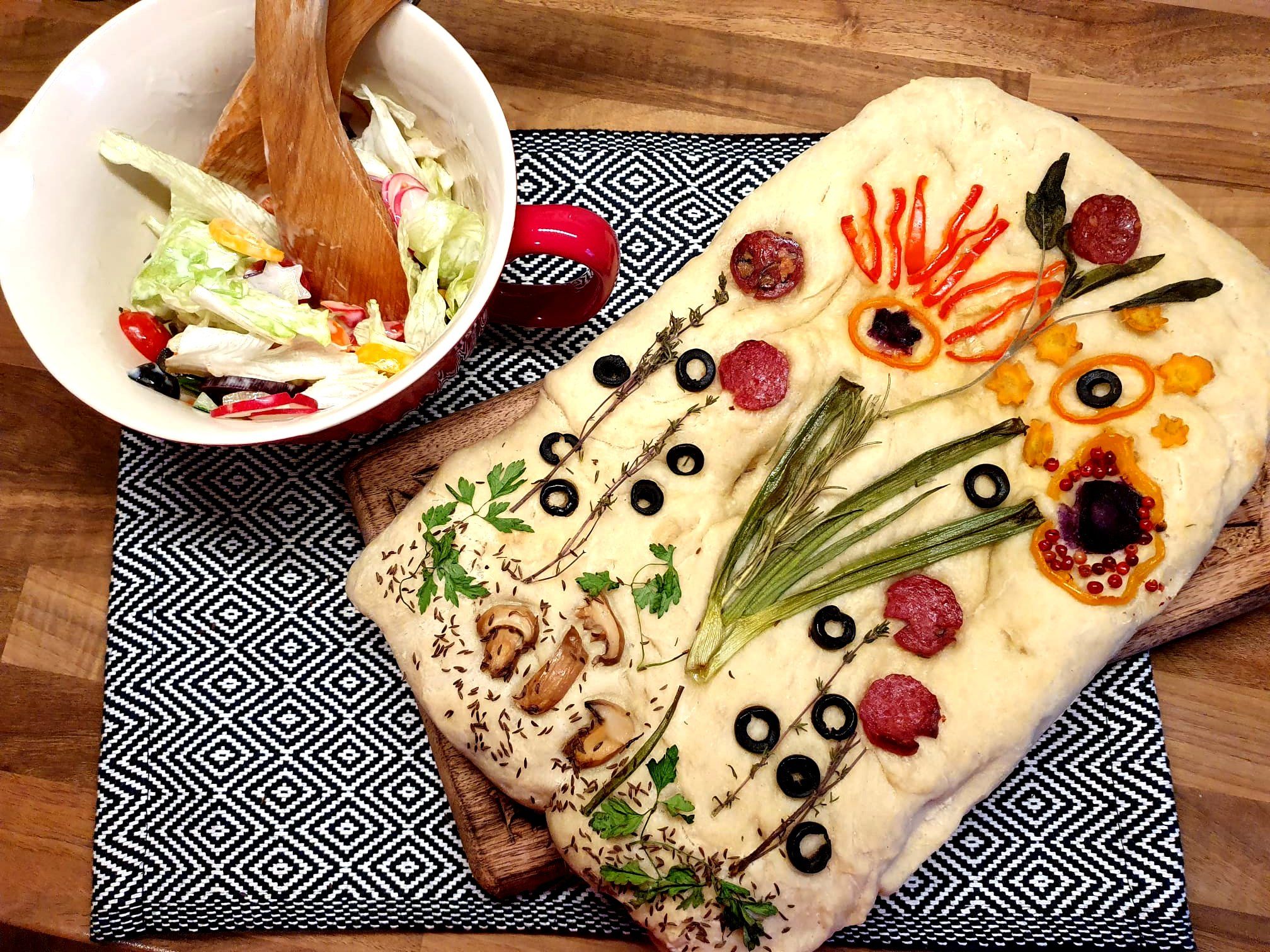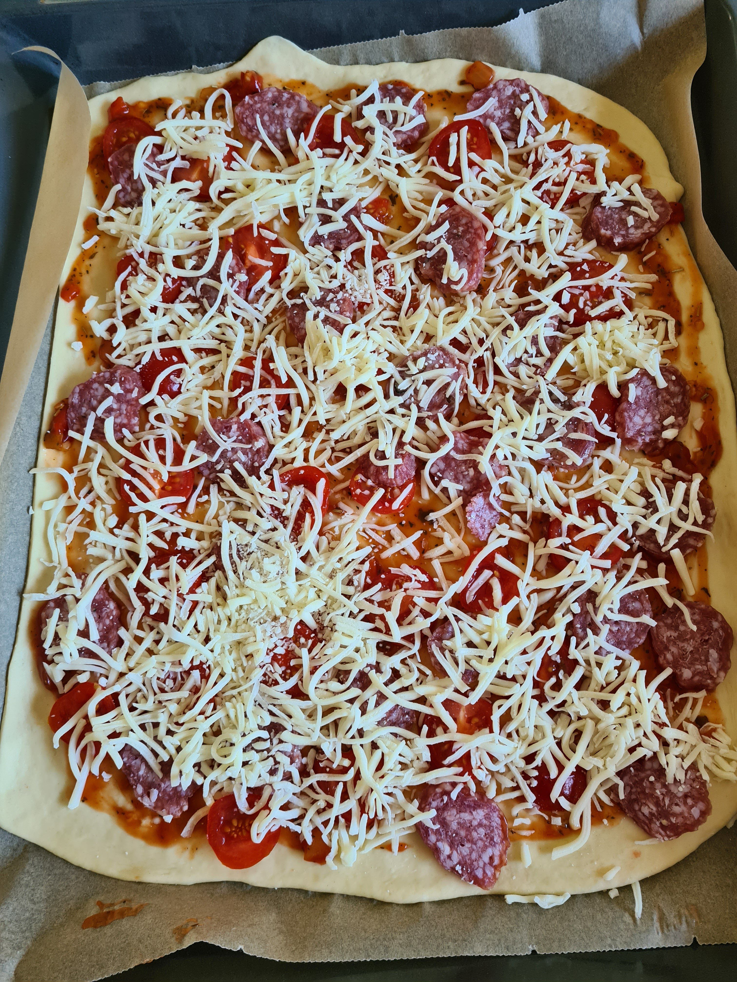 Heute Abend gab es dann einen Aoste-Flammkuchen mit Schafskäse und Kräutercreme ! Die Salami wurde knusprig und lecker !