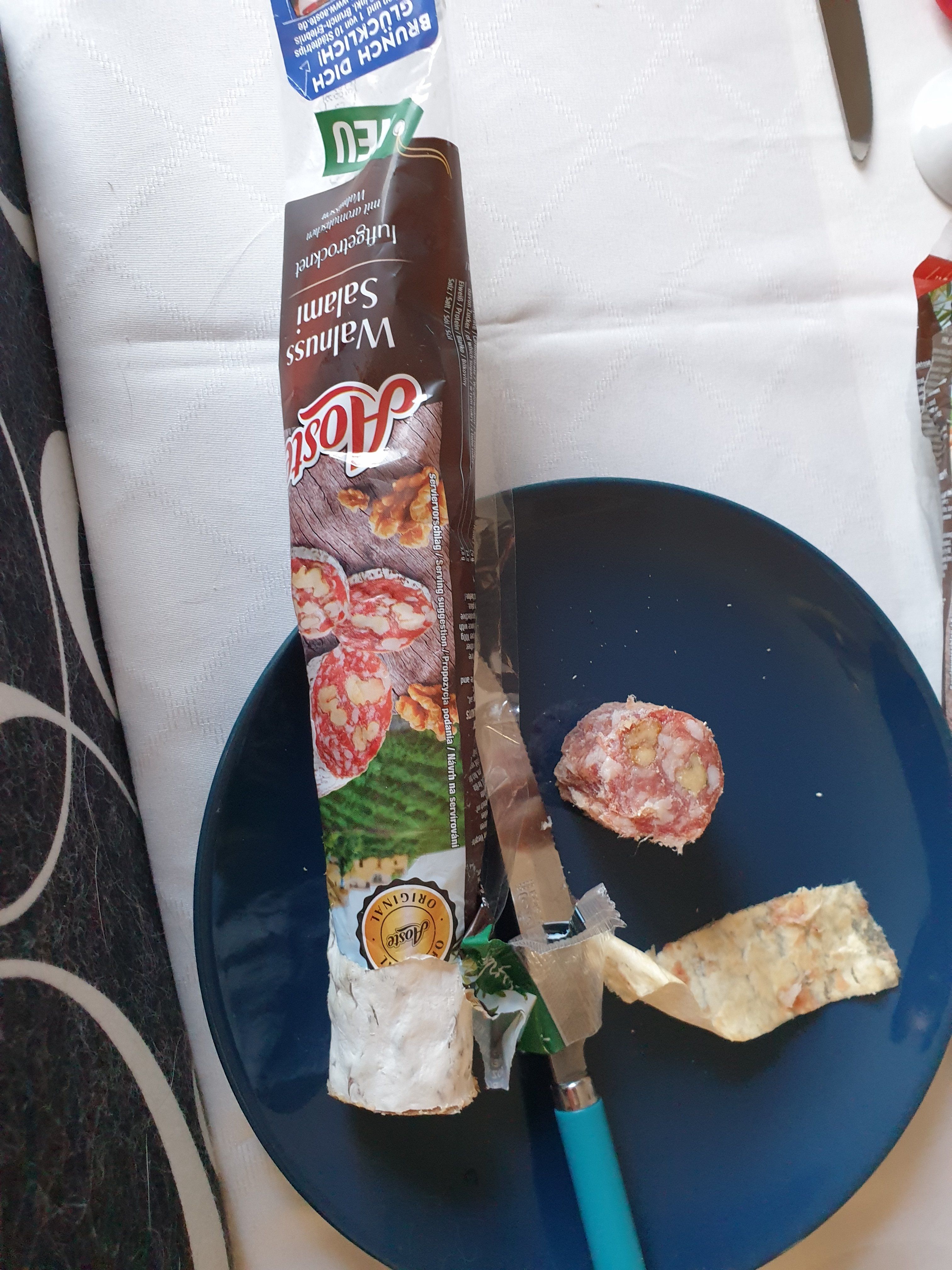 Eine wirklich leckere und vielseitige Salami... Sowohl die Edel-Salami als auch die Wallnuss-Salami. Aufs Brot, pur oder auch auf der Pizza war es ein Schmaus.