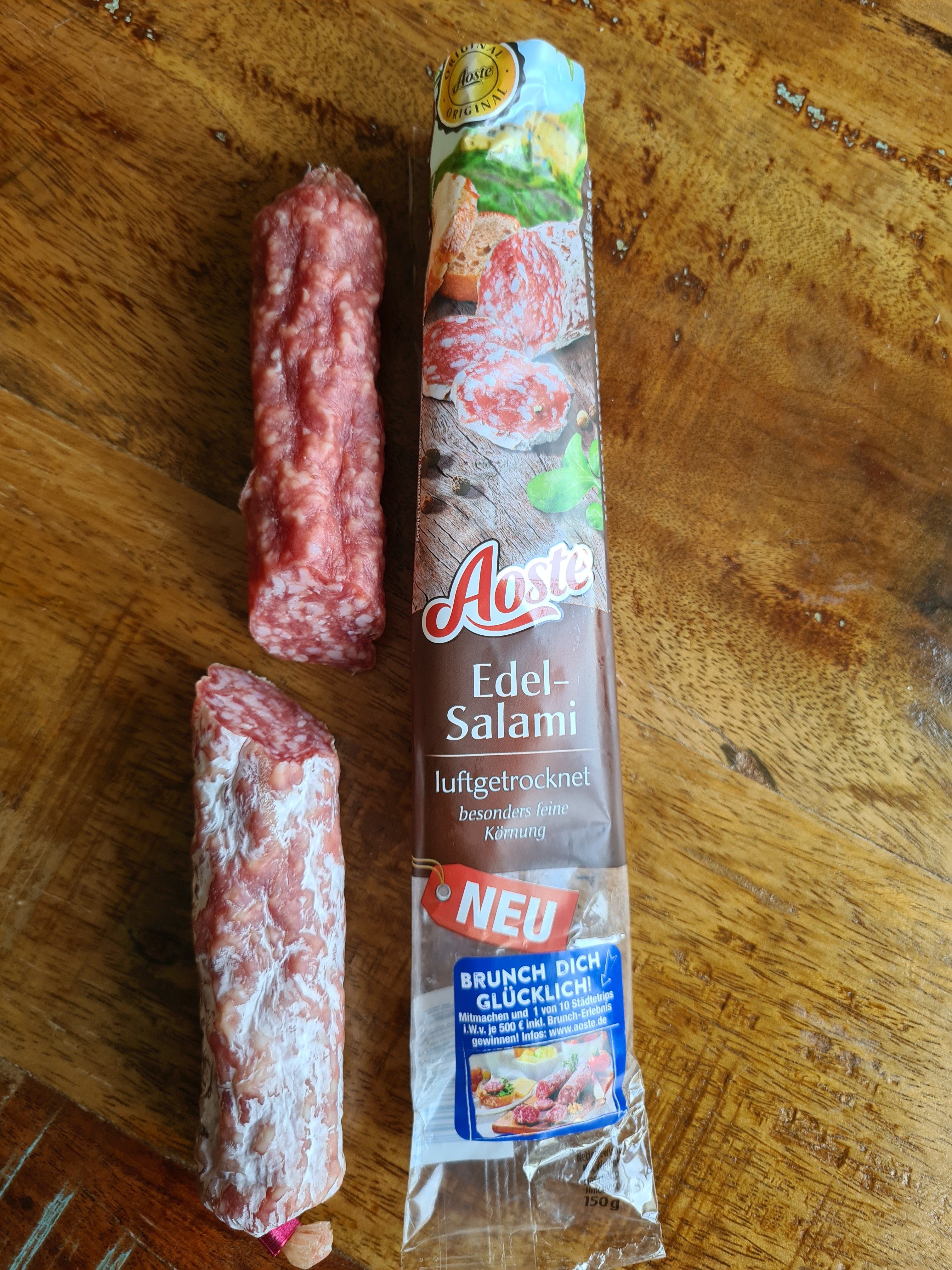 Wir haben die Aoste Dauerwurst bei einem langen Brunch probiert und waren alle überzeugt. Sehr lecker und mal was anderes als der normale Aufschnitt.