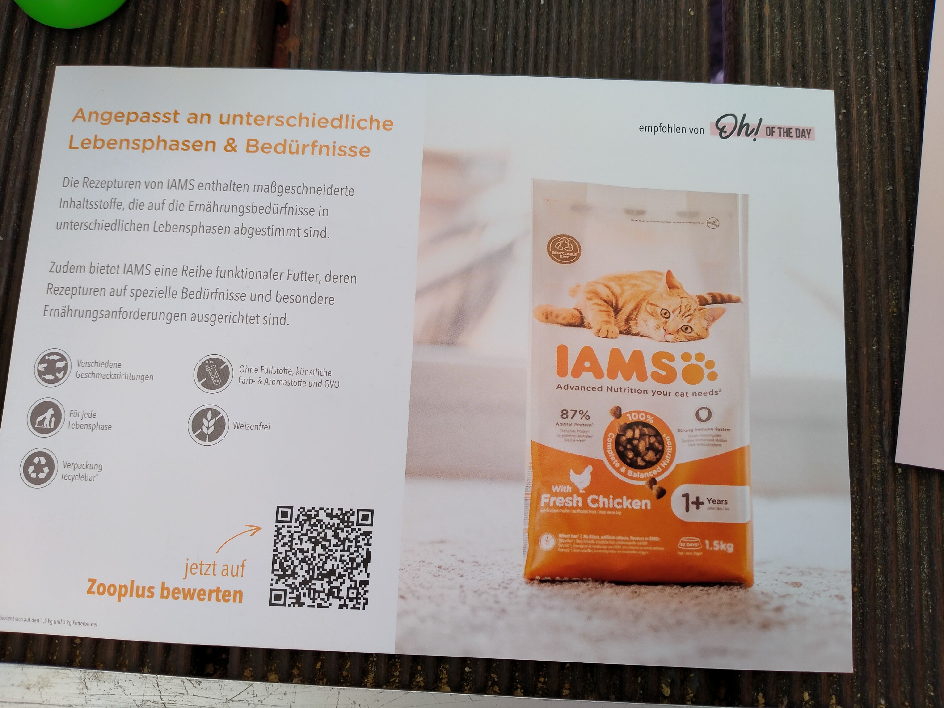 Ich durfte das neue Produkt iams Katzenfutter testen und finde die Konsistenz gut und meine Katze fand es lecker sie machte sich gleich dran es zu futtern.