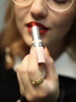 Jetzt ist endlich Schluss damit! Wunderschöne matte Lippen die mit Feuchtigkeit versorgt sind dank dem Hyaluron-Kern in der Mitte im Lippenstift.