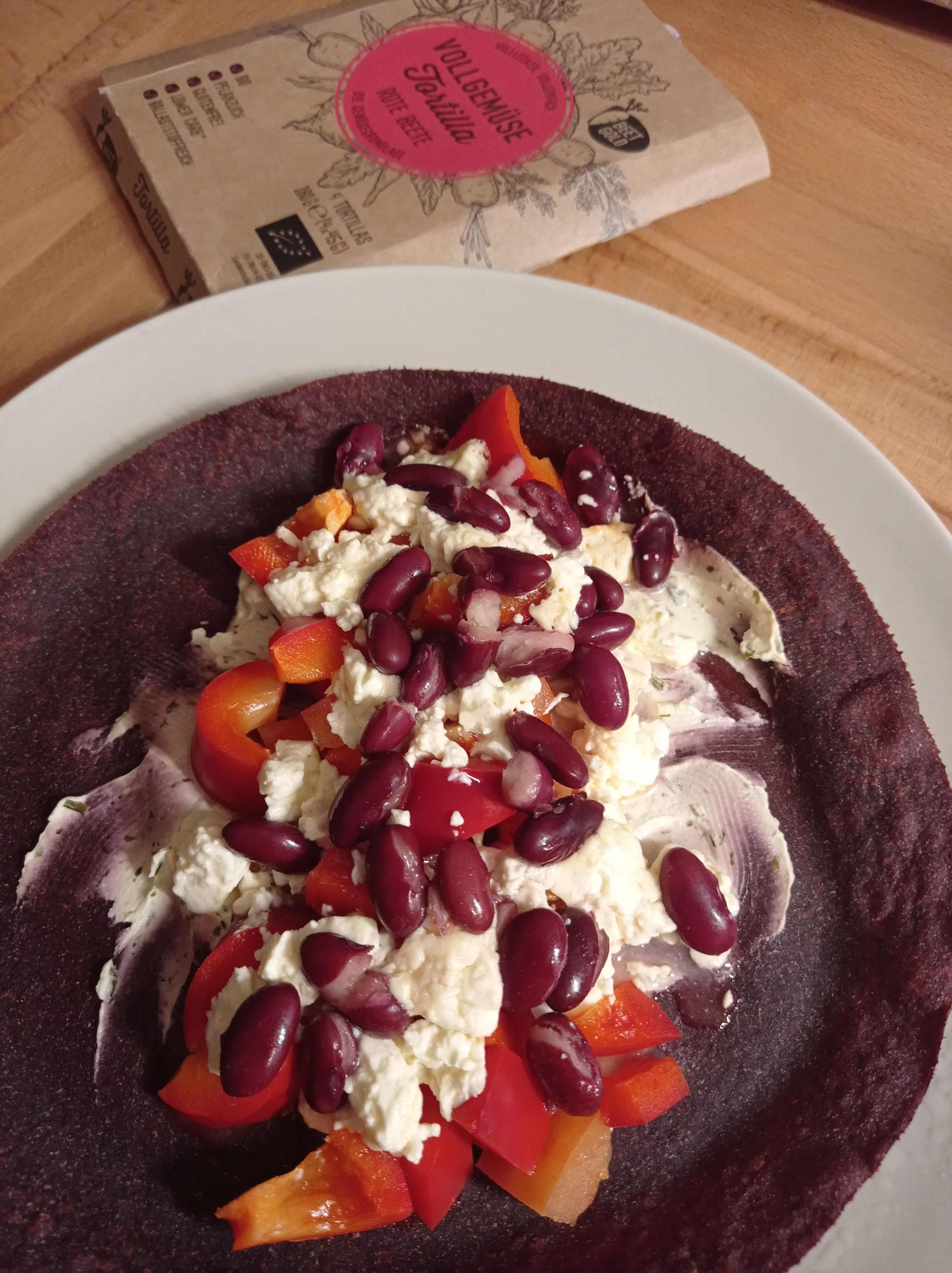 Die Gemüsetortillas in der Sorte Rote Beete waren wirklich sehr lecker, habe sie als Wrap gegessen und dann nochmal als Flammkuchen. In beiden Varianten haben sie gut geschmeckt und ließen sich gut verarbeiten.