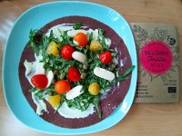 Ich habe bereits einen Wrap zubereitet, gefüllt habe ich diesen mit Ziegenfrischkäse, Rucola und etwas Speck. Den Wrap konnte man sehr gut zusammenrollen, ich finde es sehr gut, dass der Wrap bereits vorgebacken ist. Dadurch wird die Zubereitung um einiges unkomplizierter. Der Geschmack des Rote Beete-Wraps ist einfach super, ich gehe heute gleich los und besorge mir noch die Sorte 'Karotte'!