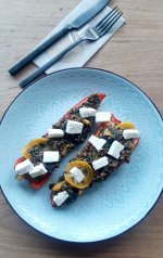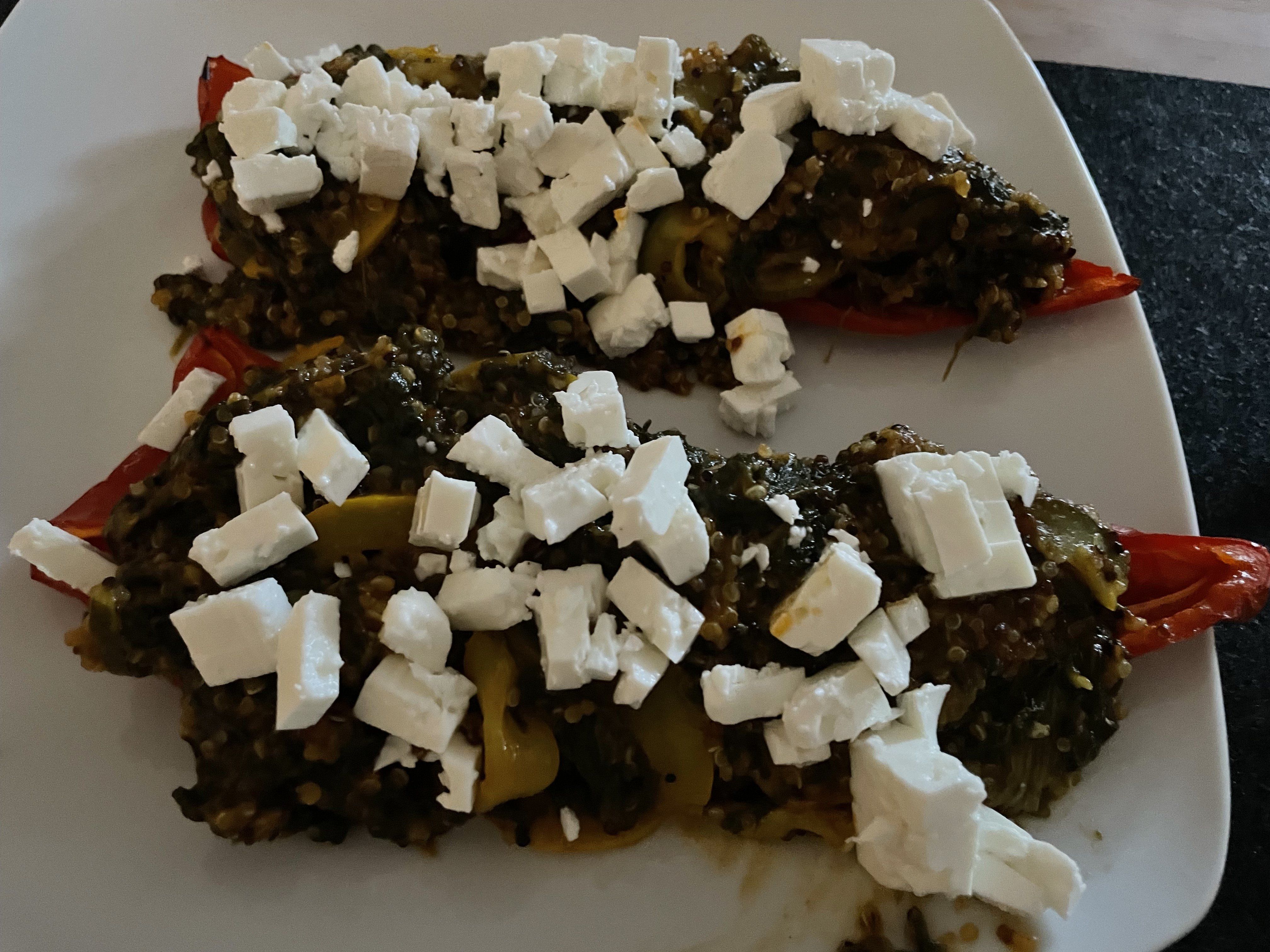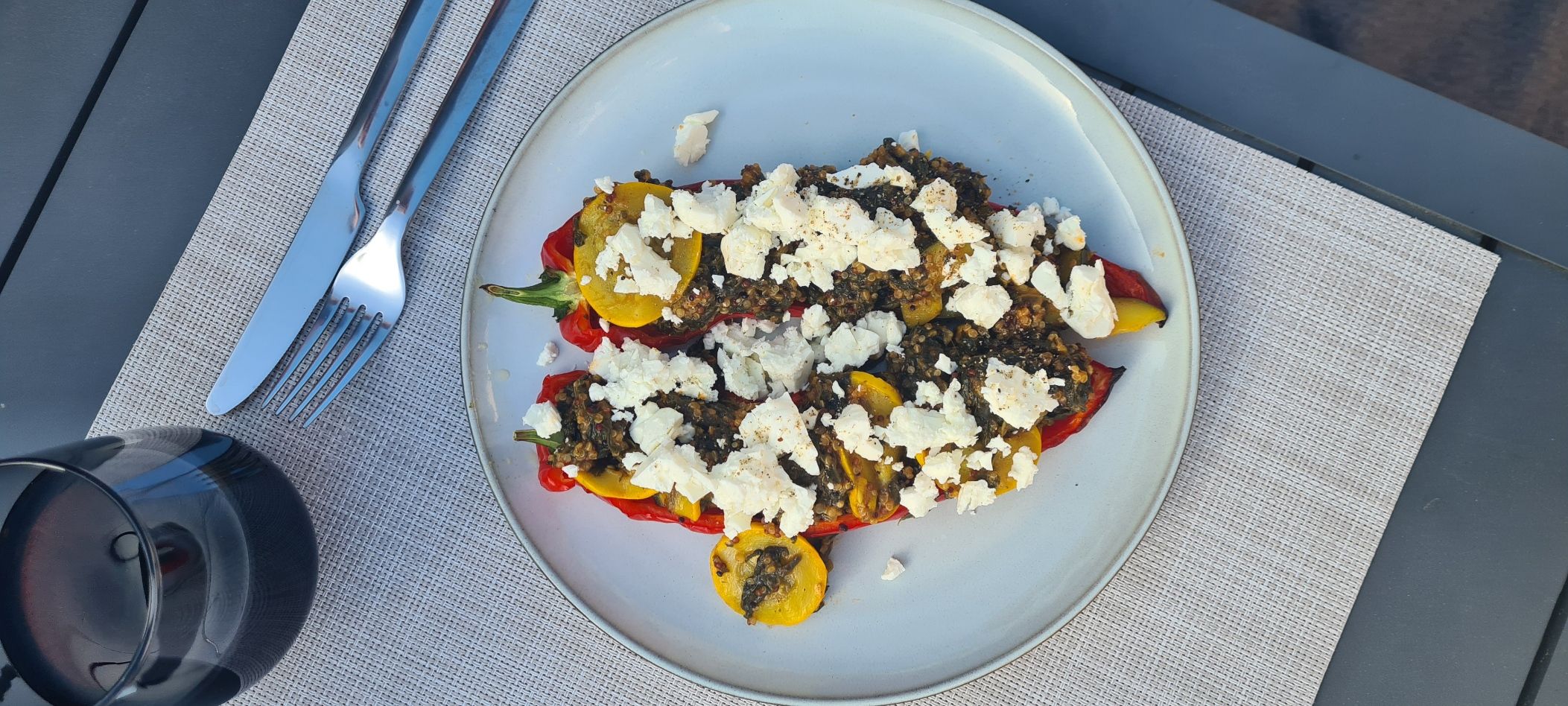 Bestellung und Lieferung waren einfach, schnell, es hat alles gut geklappt. Zum Test habe ich mir Spitzpaprika mit Quinoa, Zucchini und würzigem Feta ausgesucht. Ich esse sehr gerne vegetarisch oder auch mal vegan. Alles kamsehr gut verpackt und frisch an – die Box hatte ein paar Dellen, das tat dem Inhalt aber soweit keinen Abbruch. Genial fand ich die Kühlung mit tiefgefrorenen Wasserflaschen. Diese kann man wiederverwenden und dann recyceln. Ansonsten ist viel Verpackung dabei. Das gefällt mir tatsächlich weniger gut gefallen, auch wenn man sich Mühe gibt, recycelbares Material zu verwenden. Besonders bei kleineren Bestellungen ist es dann doch einiges. Die Zutaten halten sich 7 Tage im Kühlschrank, das finde ich sehr positiv. Wenn mal eine Planänderung dazwischen kommt, ist man noch flexibel genug.