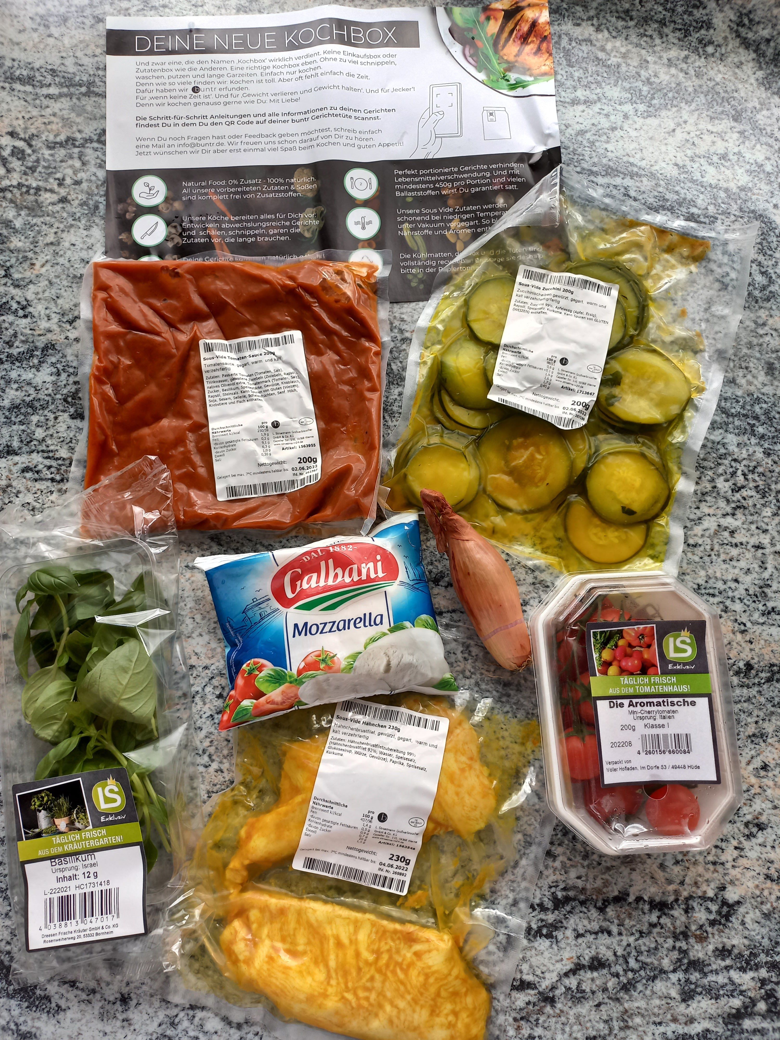 Ich habe das Basilikum Hähnchen mit Cherrytomaten, Zucchini und Mozzarella zum probieren bestellt. Das Gericht kam gut verpackt und mit 2 stillen Wassern als Kühlung die noch zum Teil gefroren waren zum vereinbarten Tag bei mir an. Für das Rezept muss man einen QR Code scannen um auf die Seite zu gelangen. Das Gericht ist wirklich super einfach und schnell zubereitet. Die Zutaten sind hochwertig und durch das Sous-Vide Verfahren schonend vorgegart.
