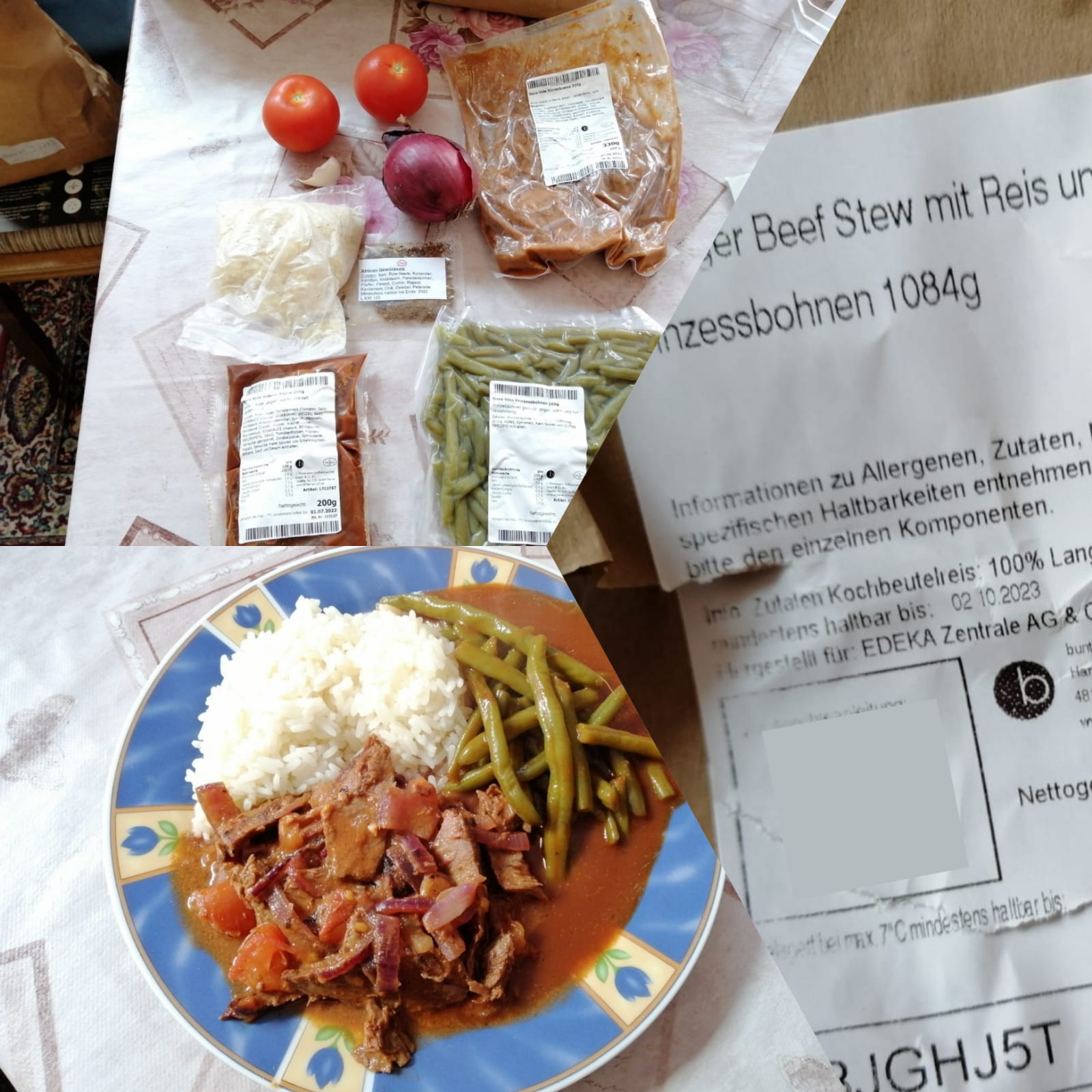 Was mir nicht so gut gefallen hat, war der Mindestbestellwert sowie das alle Gerichte nur in zwei Portionen gekauft werden können. Die Lieferung erfolgte pünktlich und die Produkte wurden mit 0,5 Liter Wasserflaschen gekühlt, super Idee. Die Produkte waren frisch, jedoch war sehr viel Verpackungsmüll vorhanden. Einfache und schnelle Zubereitung des Gerichtes, jedoch war die Portionsmenge zu klein, Geschmacklich war es lecker.