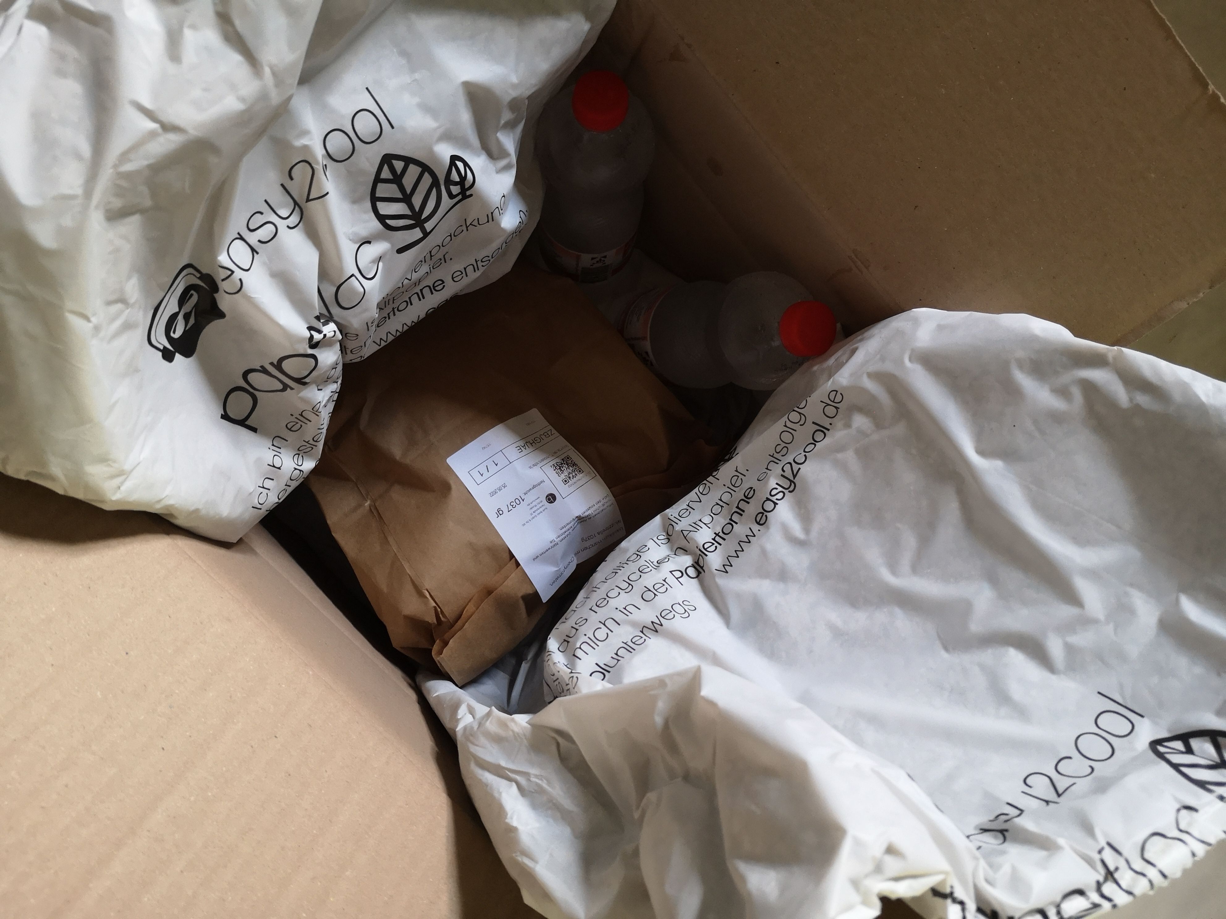 Die Box kam pünktlich und wie erwartet an. Gekühlt wurde sie durch tiefgefrorene 0,5L Flaschen Wasser. Etwas merkwürdiger Anblick aber effektiv!