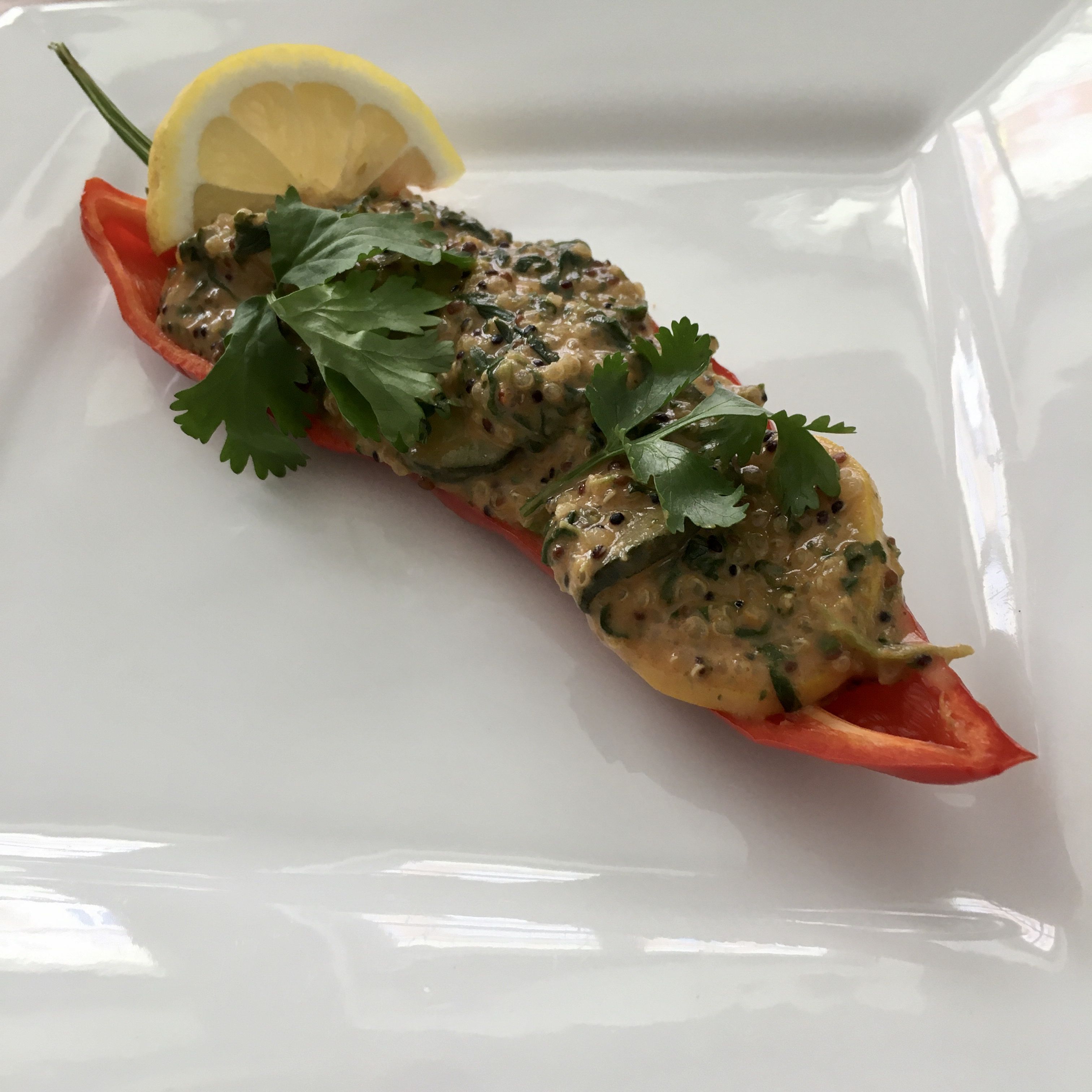 Ich habe mir 2 Gerichte bestellt. Einmal Viktoriabarsch mit Tomaten-Gurken-Salat und Bratkartoffeln und mein Testgericht Spitzpaprika mit Quinoa, Zucchini und Fetakäse.