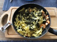 Ich habe mir die Box „Pasta Aglio e Olio 2.0.“ bestellt. Ich liebe Garnelen mit Bandnudeln, also waren meine Erwartungen hoch. Ich fand, dass es geschmacklich wirklich gut ist. Auch das Versprechen, dass man wenig schnippeln muss, wurde eingehalten. Die Zubereitung war wirklich einfach. Das einzig nervige ist, dass man die Garnelen noch schälen musste. Ist immer eine Sauerei.