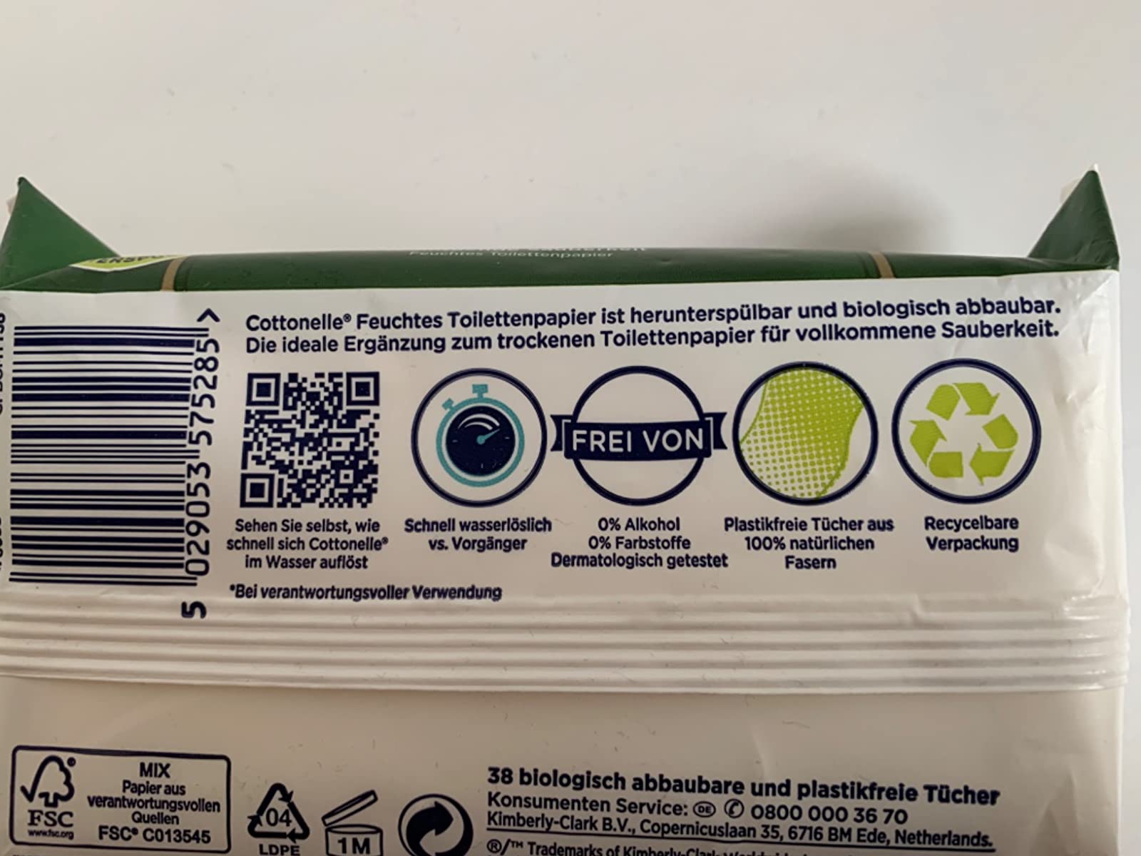 Und das wichtigste ist dass die Cottonelle feuches Toilettenpapier lösst sich im Wasser schnell auf.