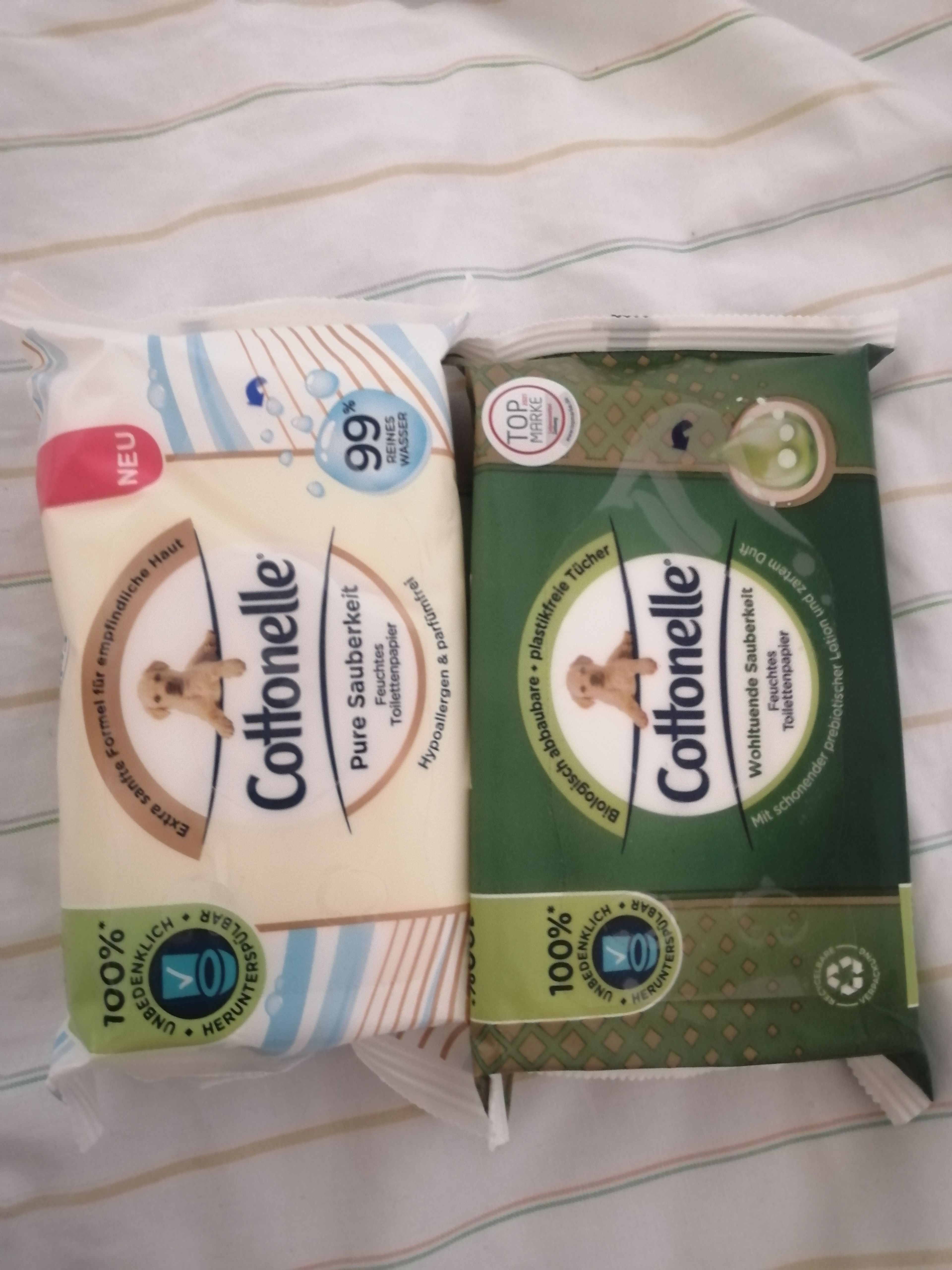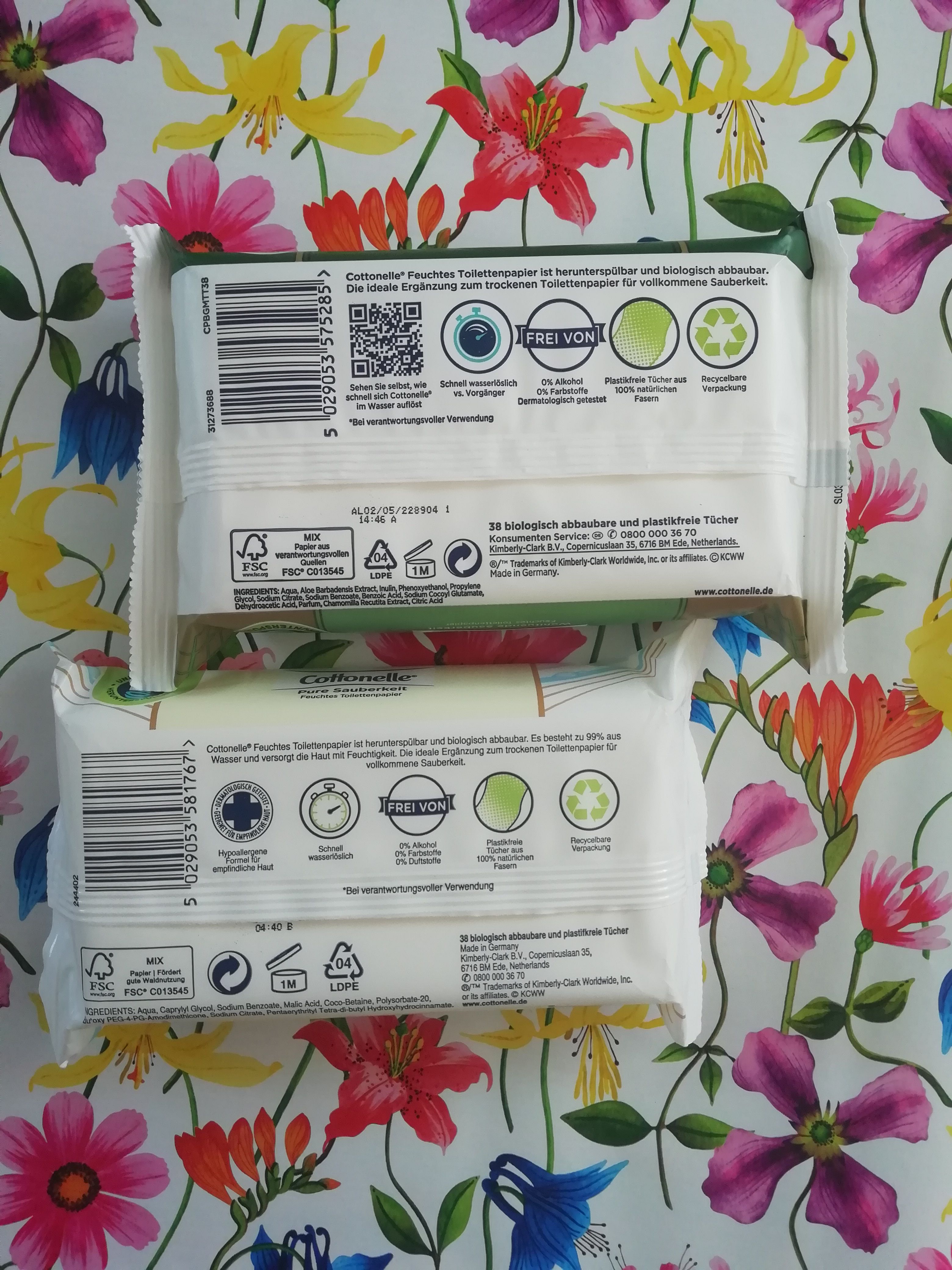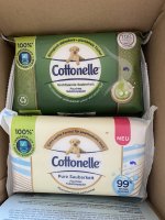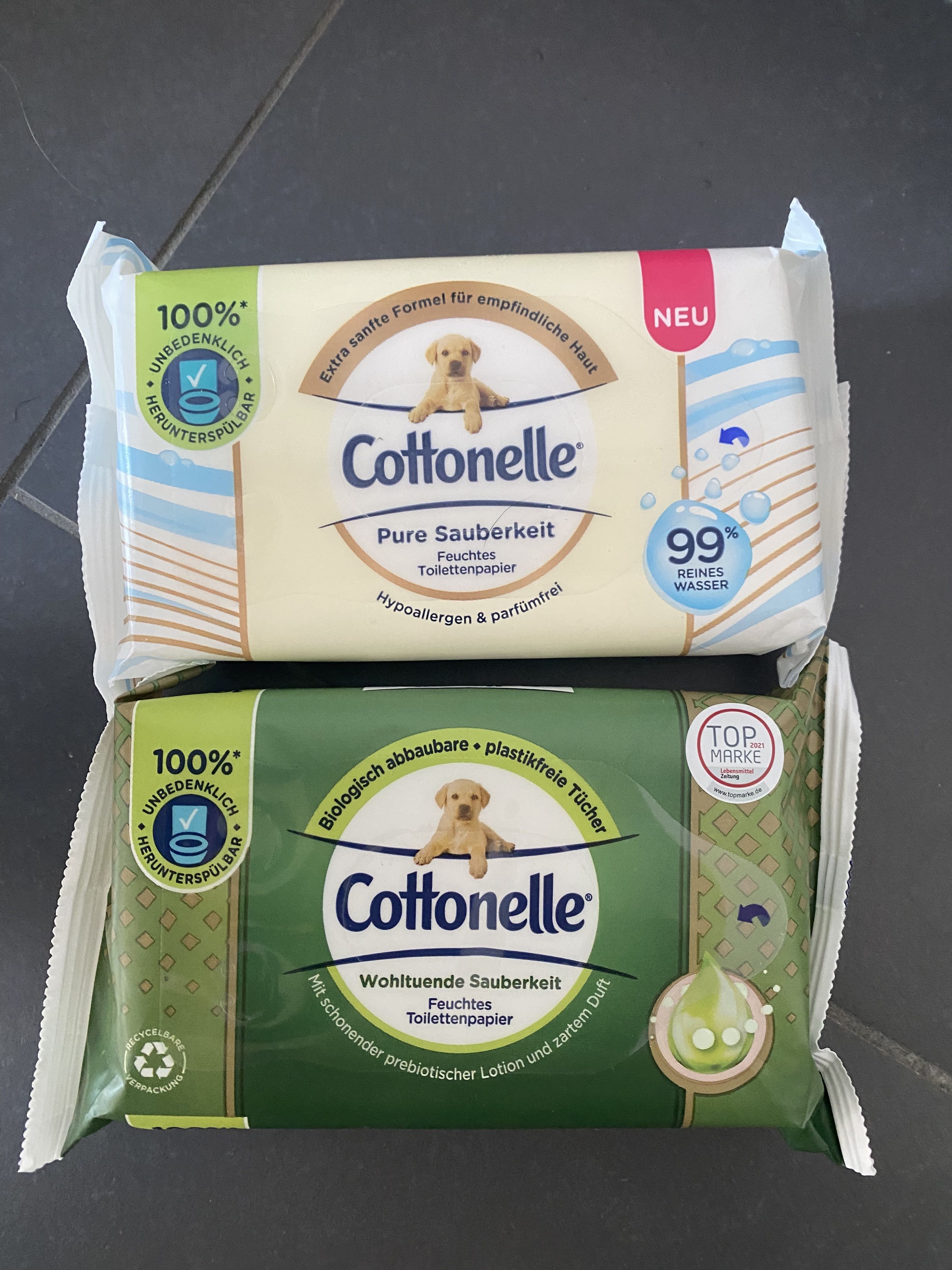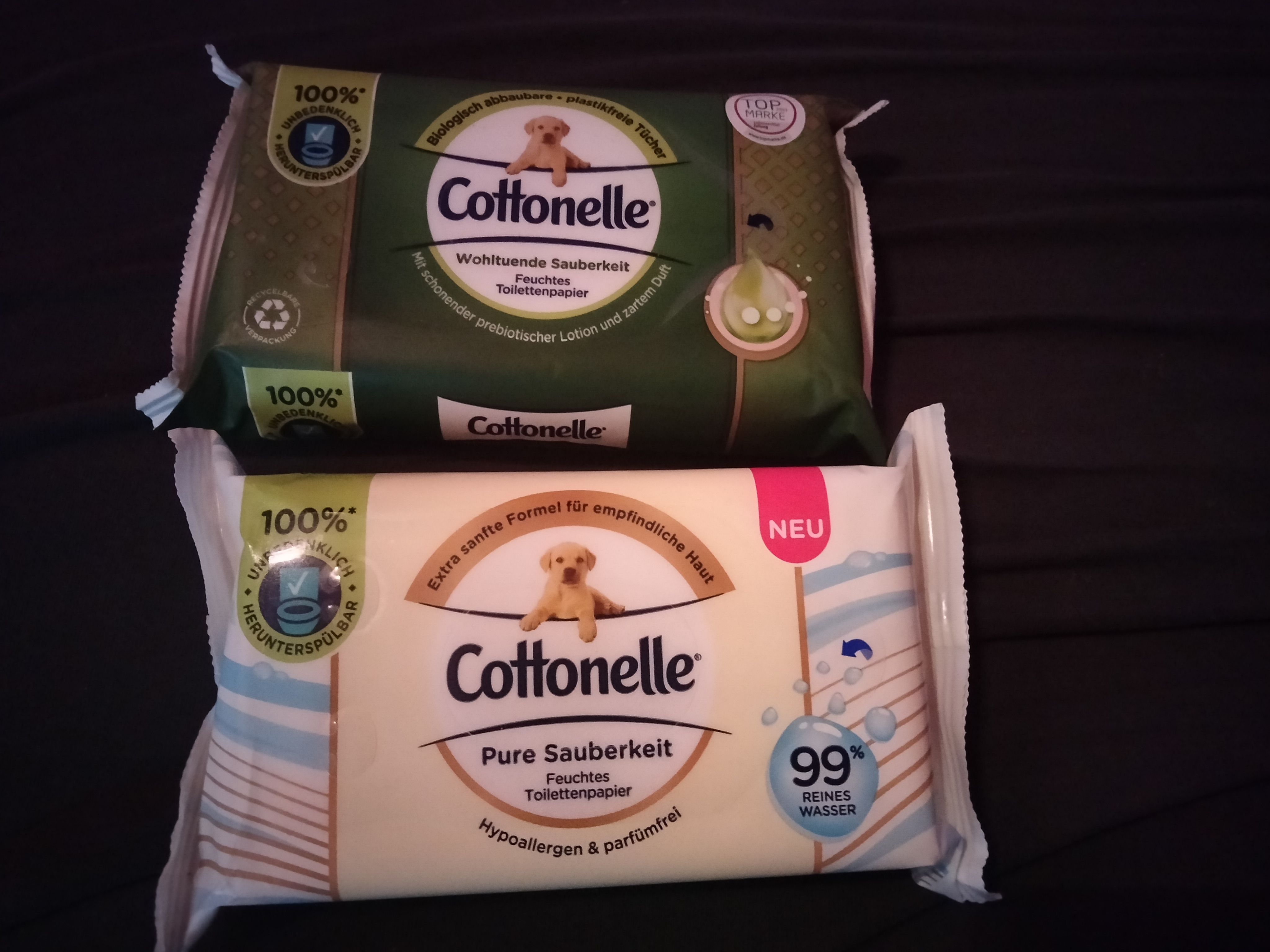 Beide Cottonelle Sorten fühlen sich angenehm an und sind auch gut befeuchtet. Sie sind ausreichend reißfest und haben einen angenehmen Duft.