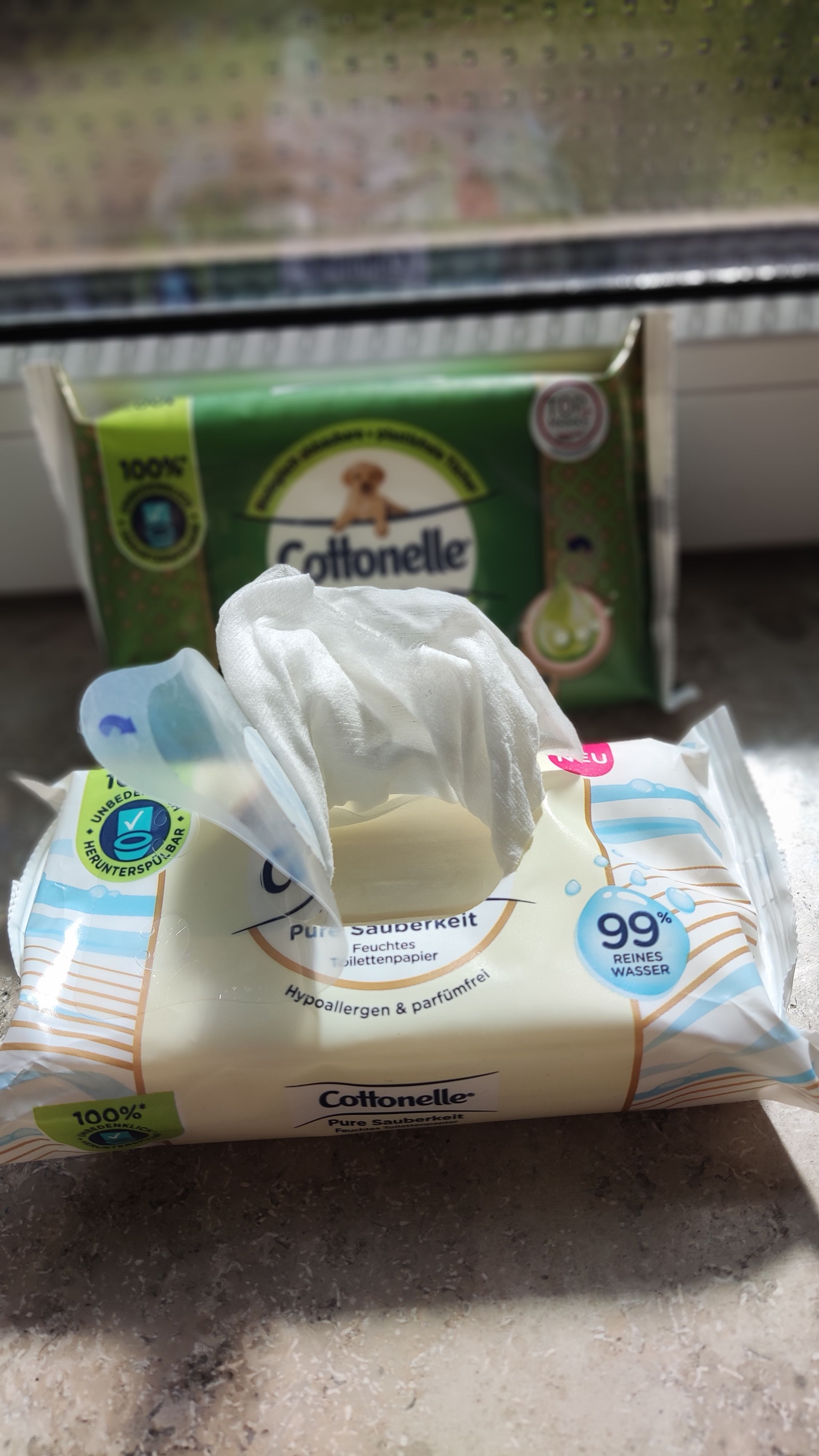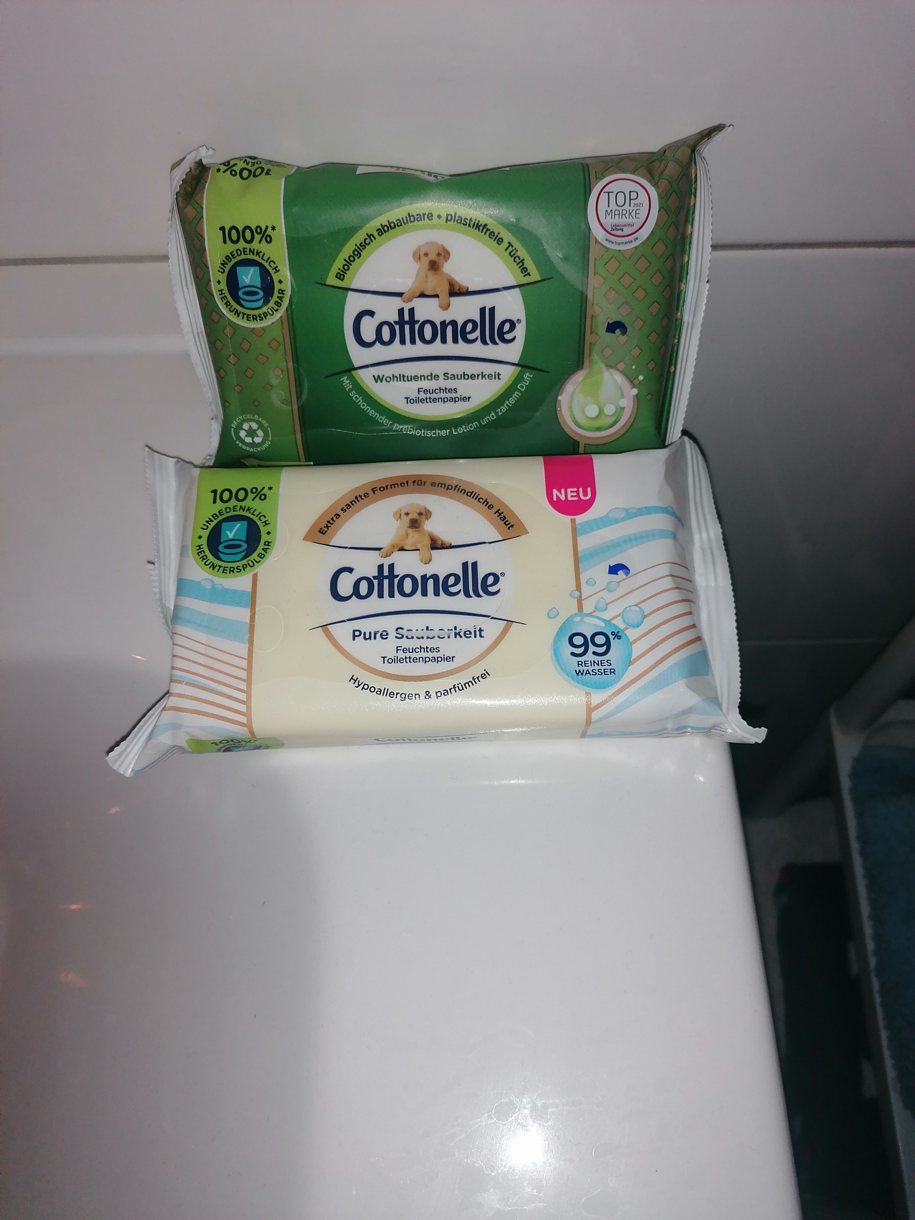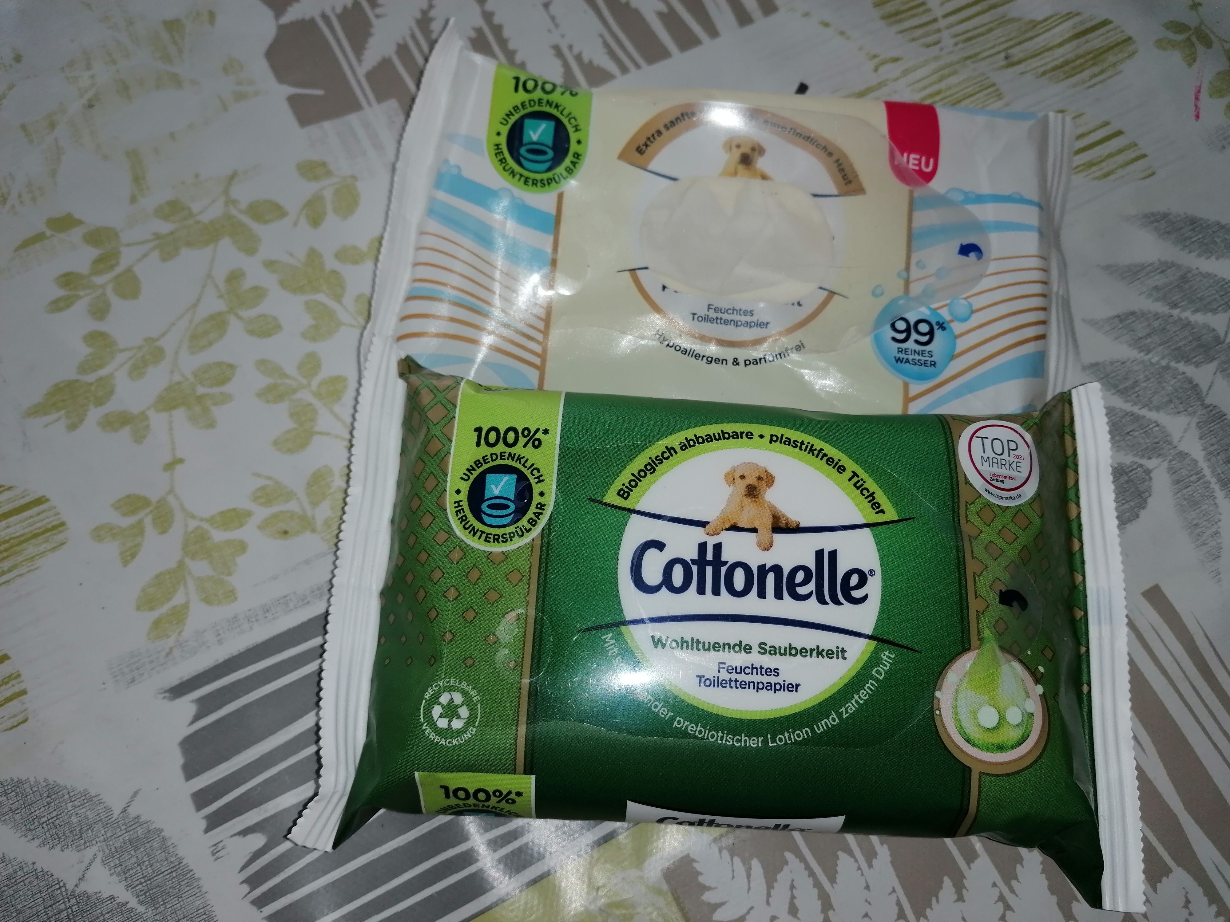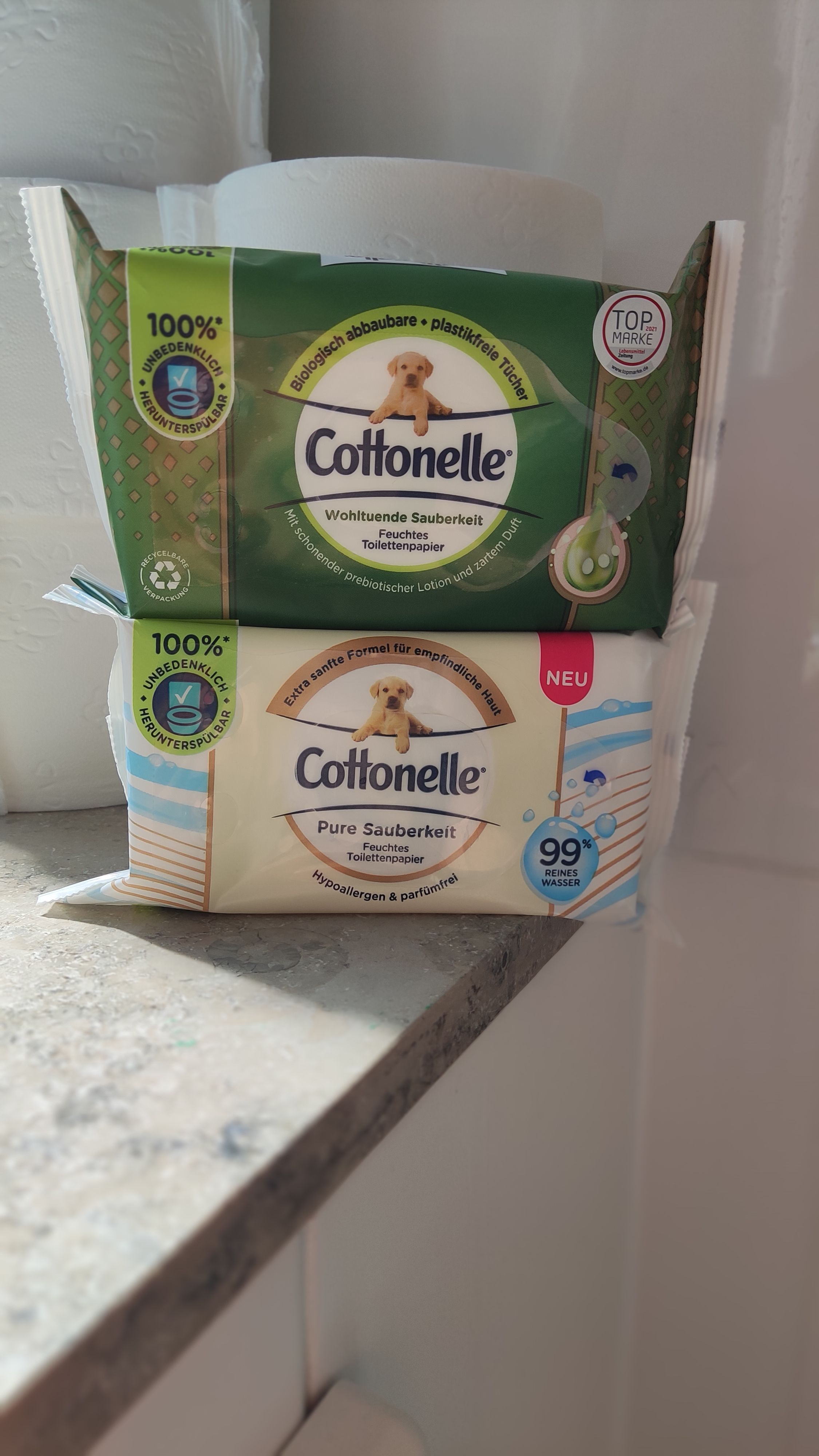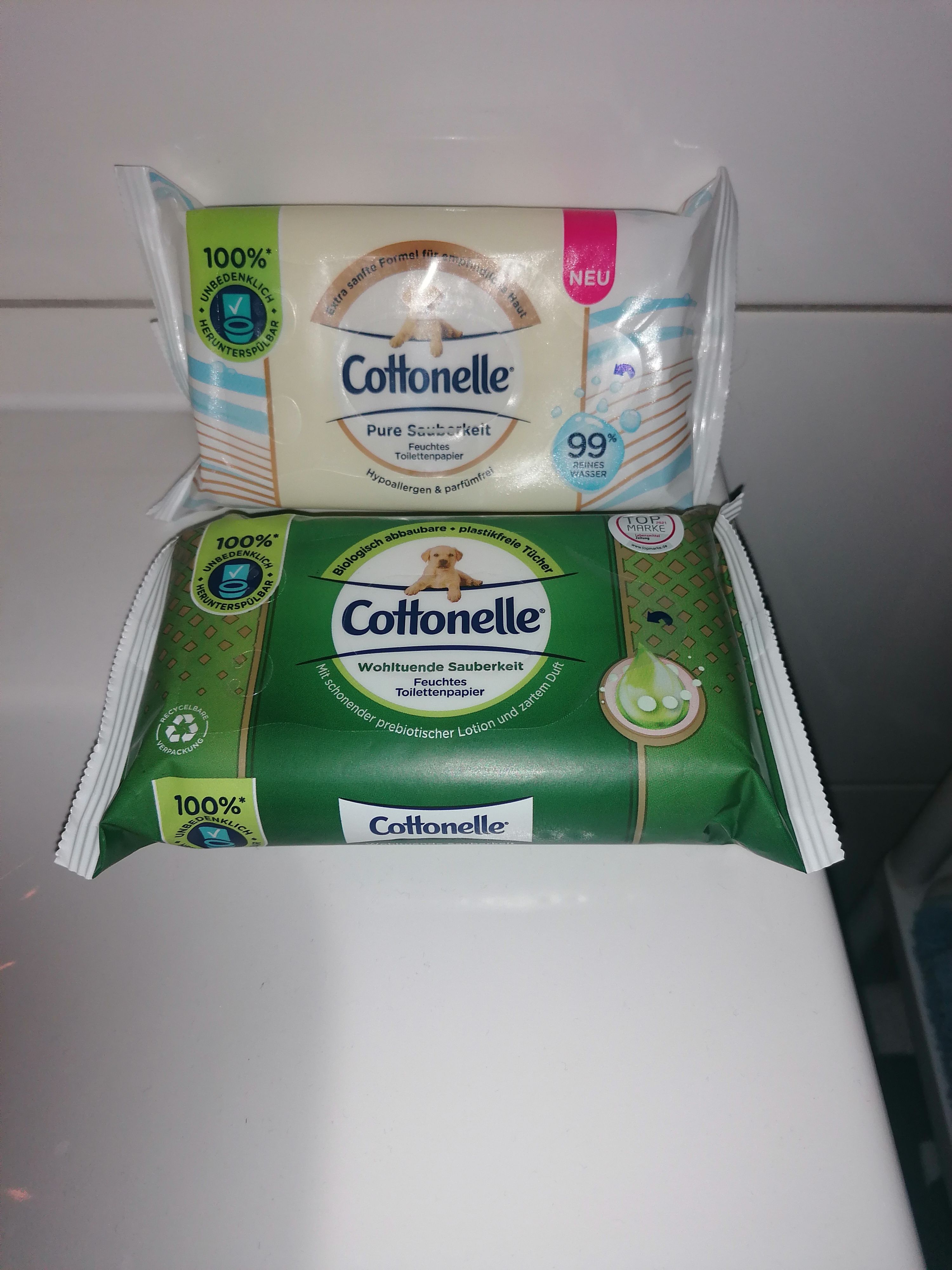 Ich teste die COTONELLE feuchtes Toilettenpapier zum ersten Mal und ich finde es total gut . Sie sind echt praktisch wenn man unterwegs ist .