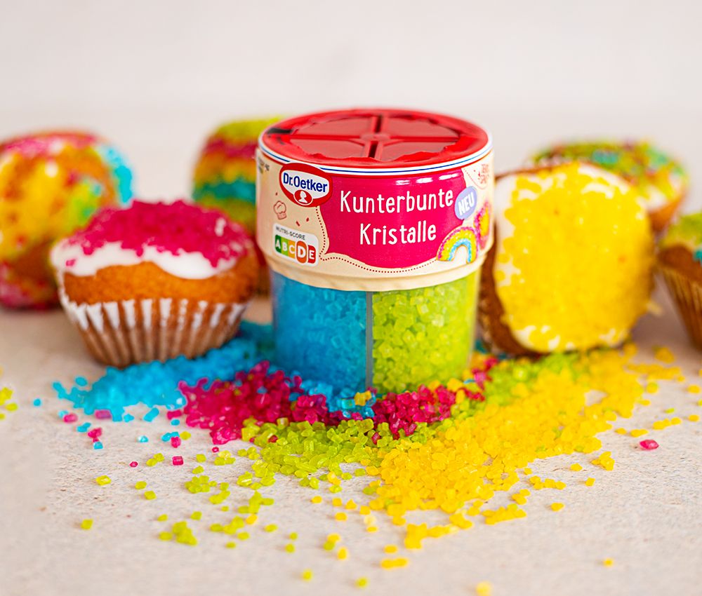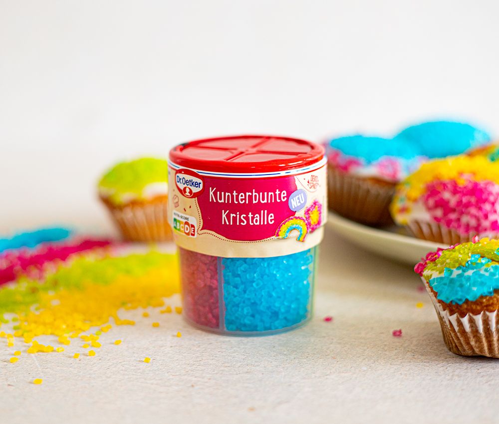 Als Markenbotschafter:in für Dr. Oetker bekommst du die Kunterbunten Kristalle zweimal von uns: Ein Becher ist für dich zum Testen und einer zum Verschenken.
