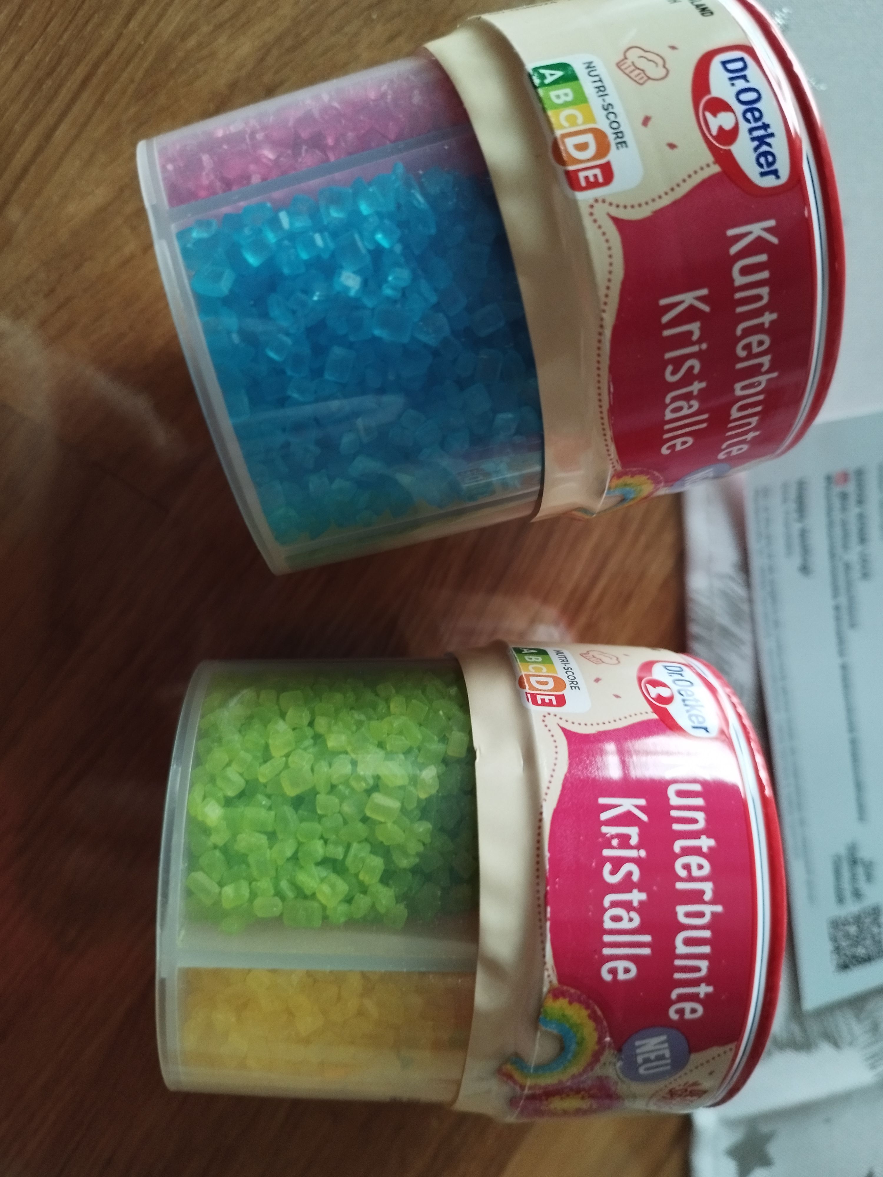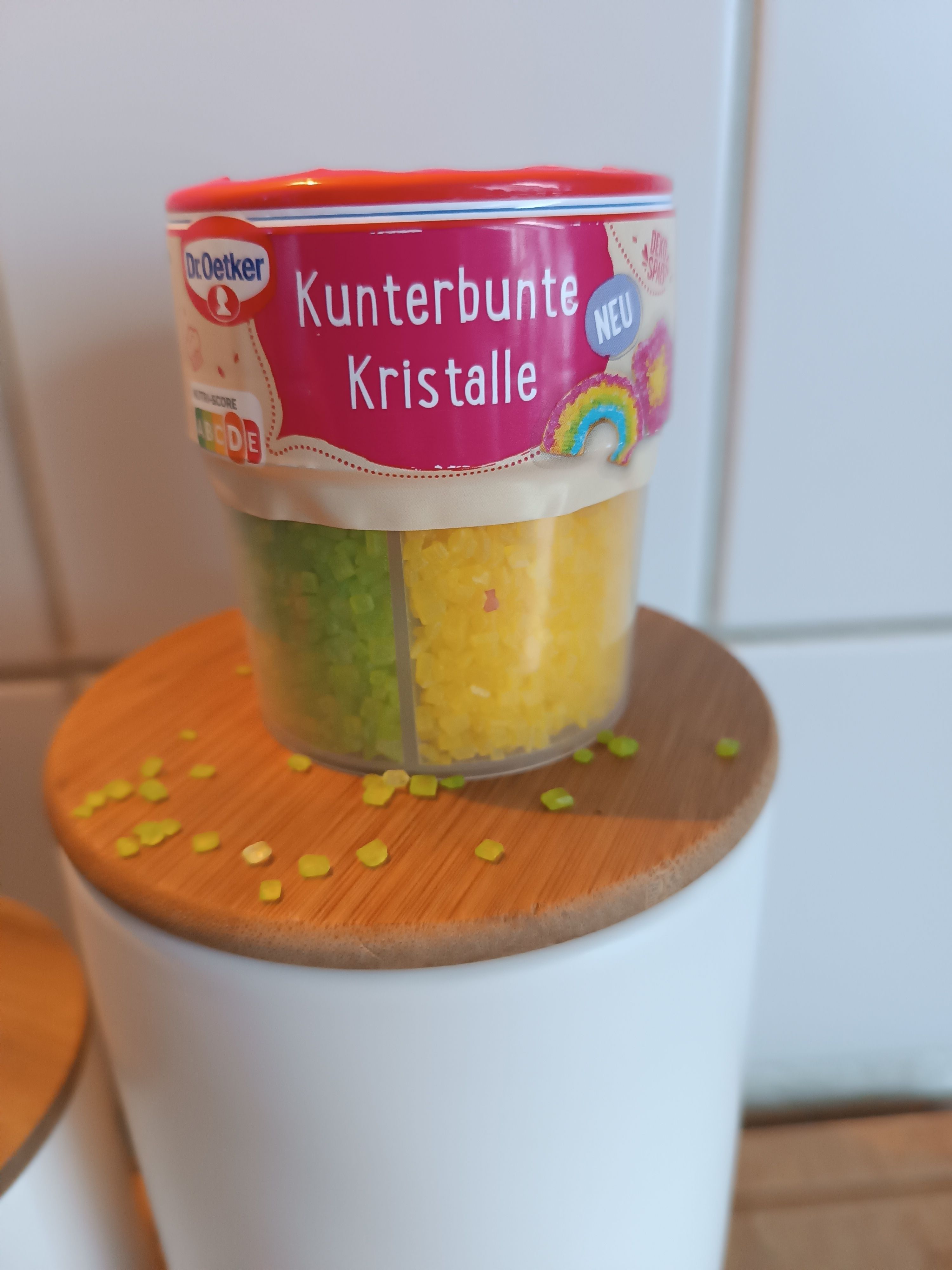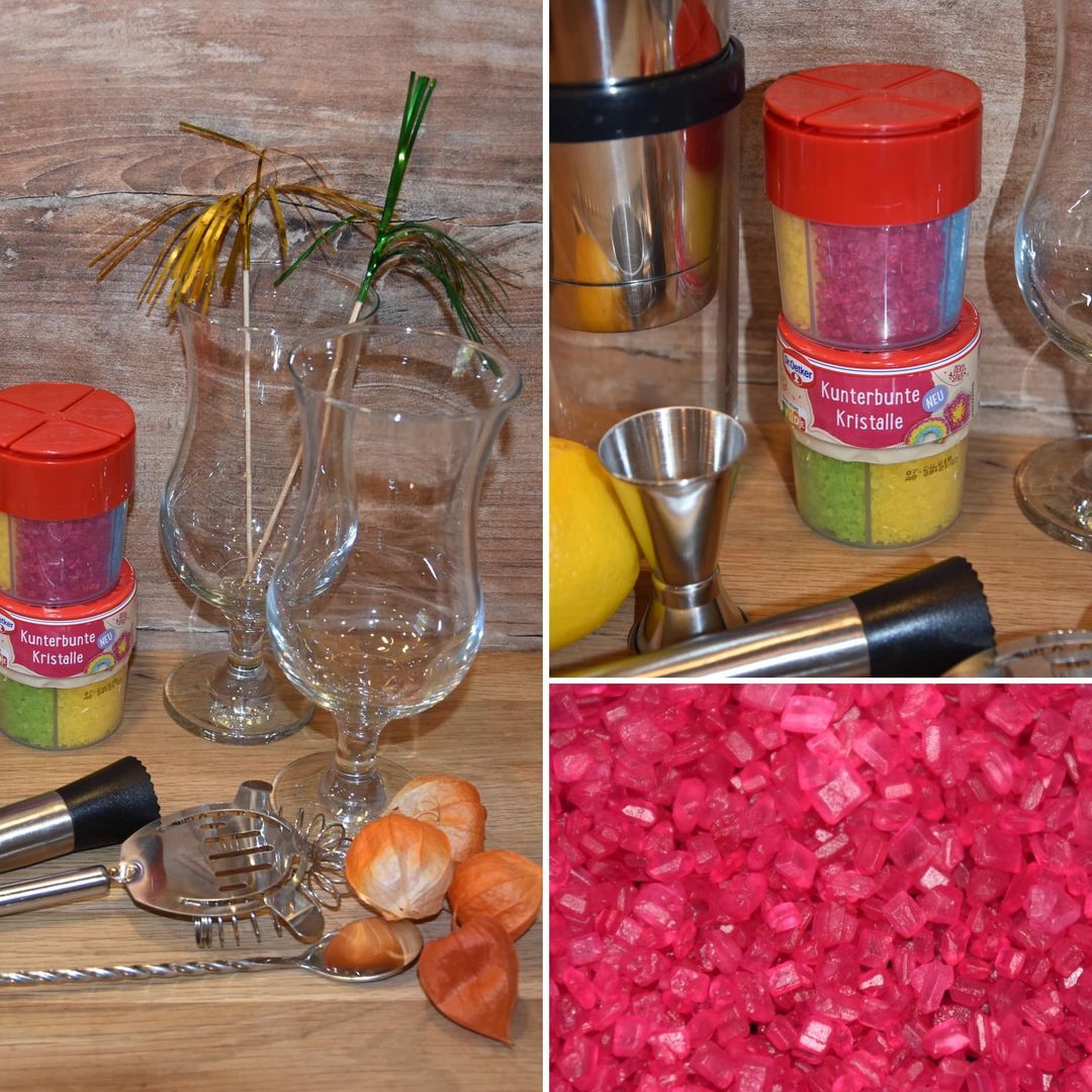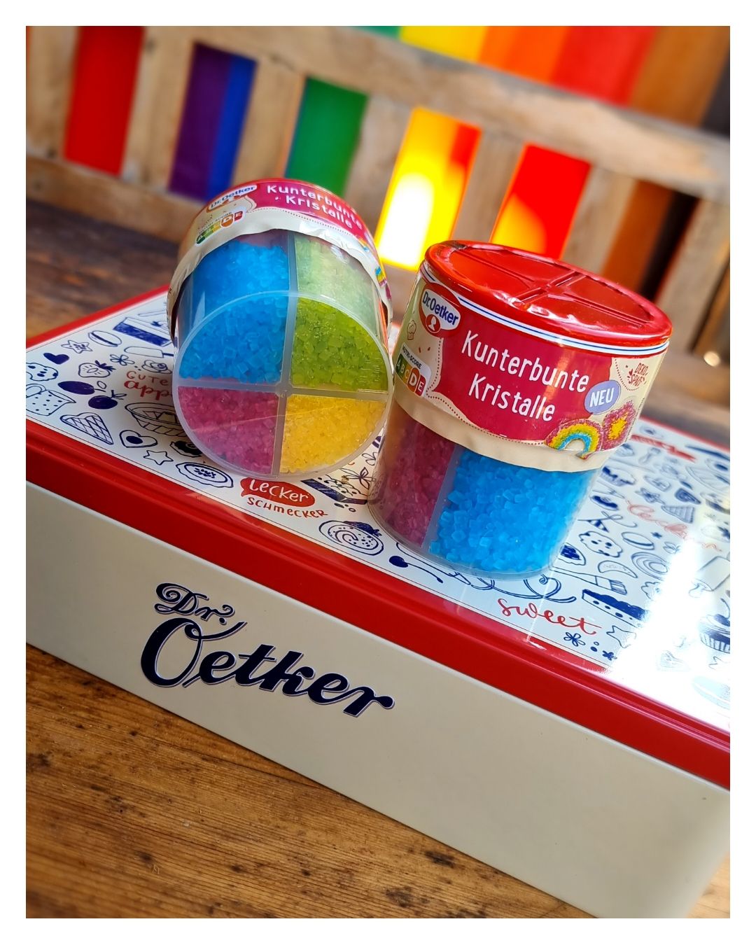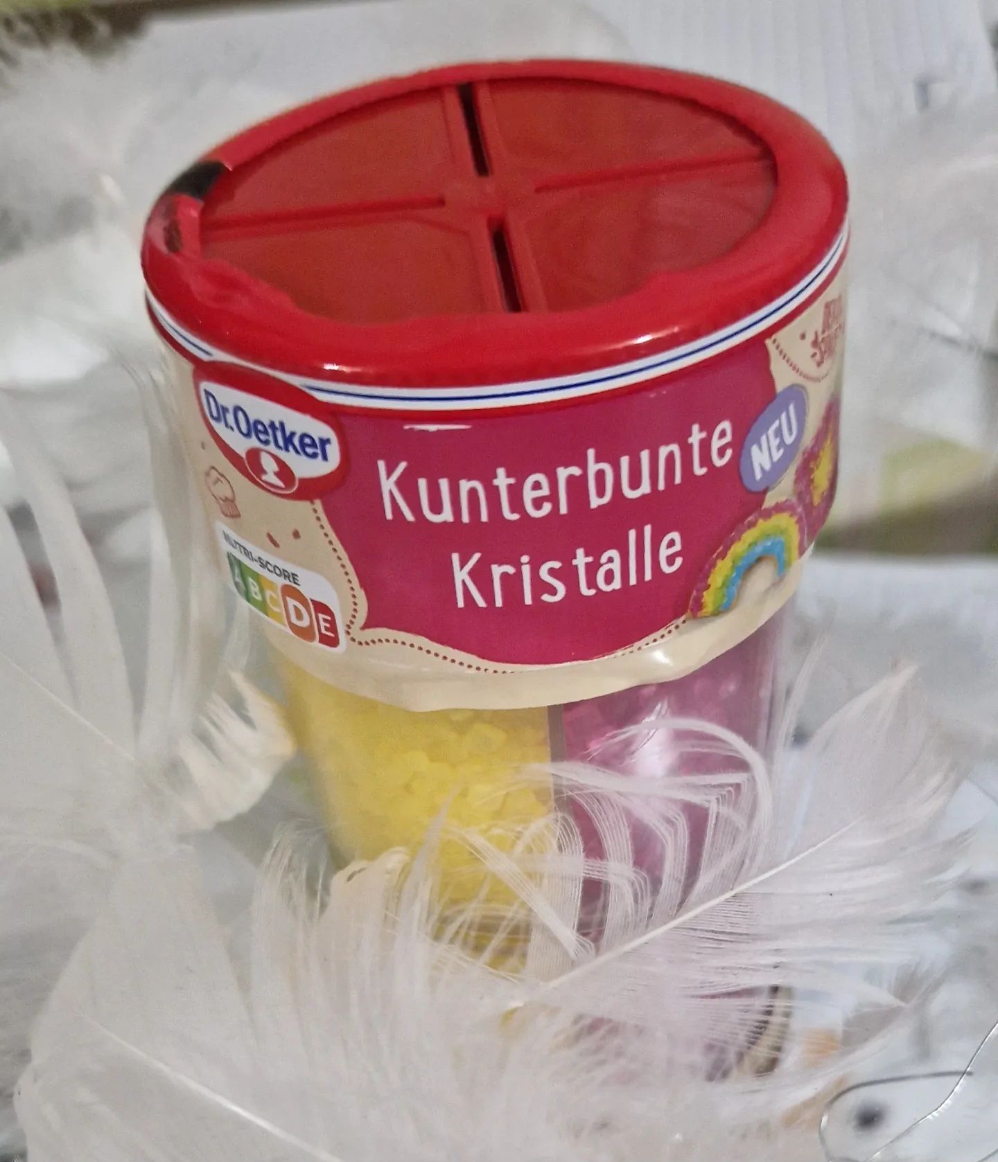 Die kunterbunten Kristalle von Dr. Oetker sind einfach in der Handhabung, praktisch verpackt mit 4 schönen, intensiven, strahlenden Farben (rot, grün, gelb, blau) in getrennten Kammern mit Öffnung zum Schütten. Sie eignen sich toll für die äußere Verzierung und schmecken gut.👍🏻