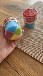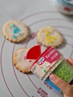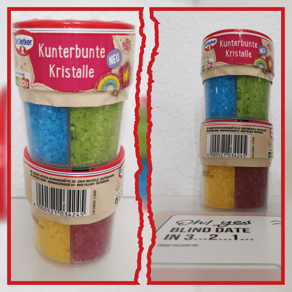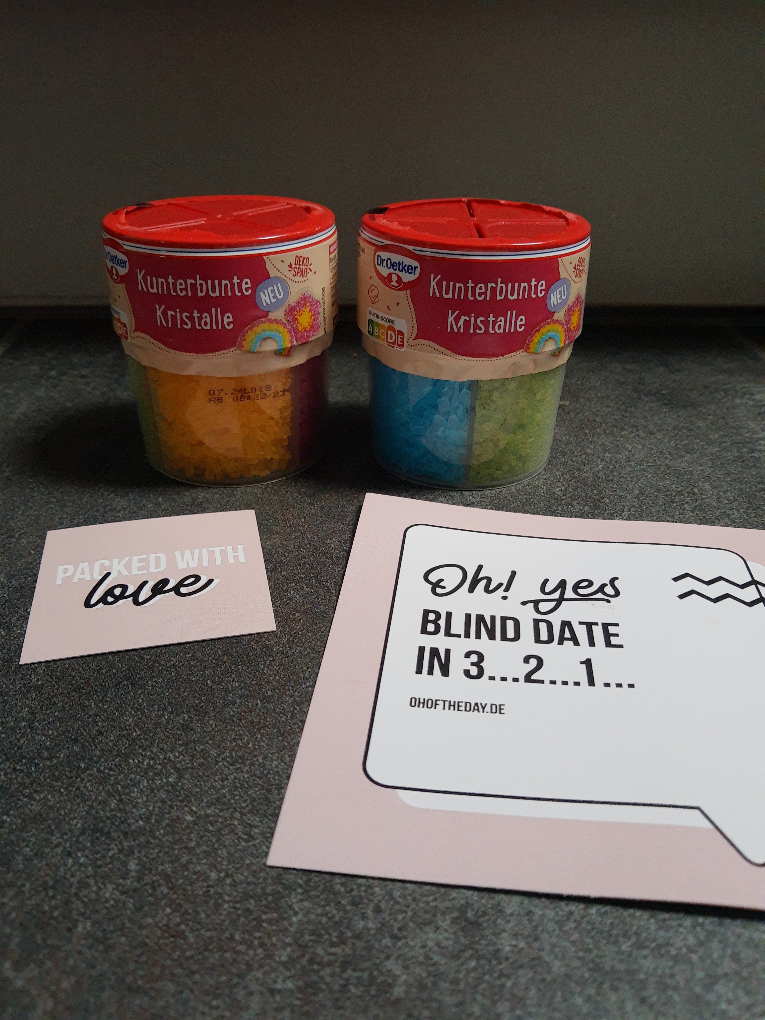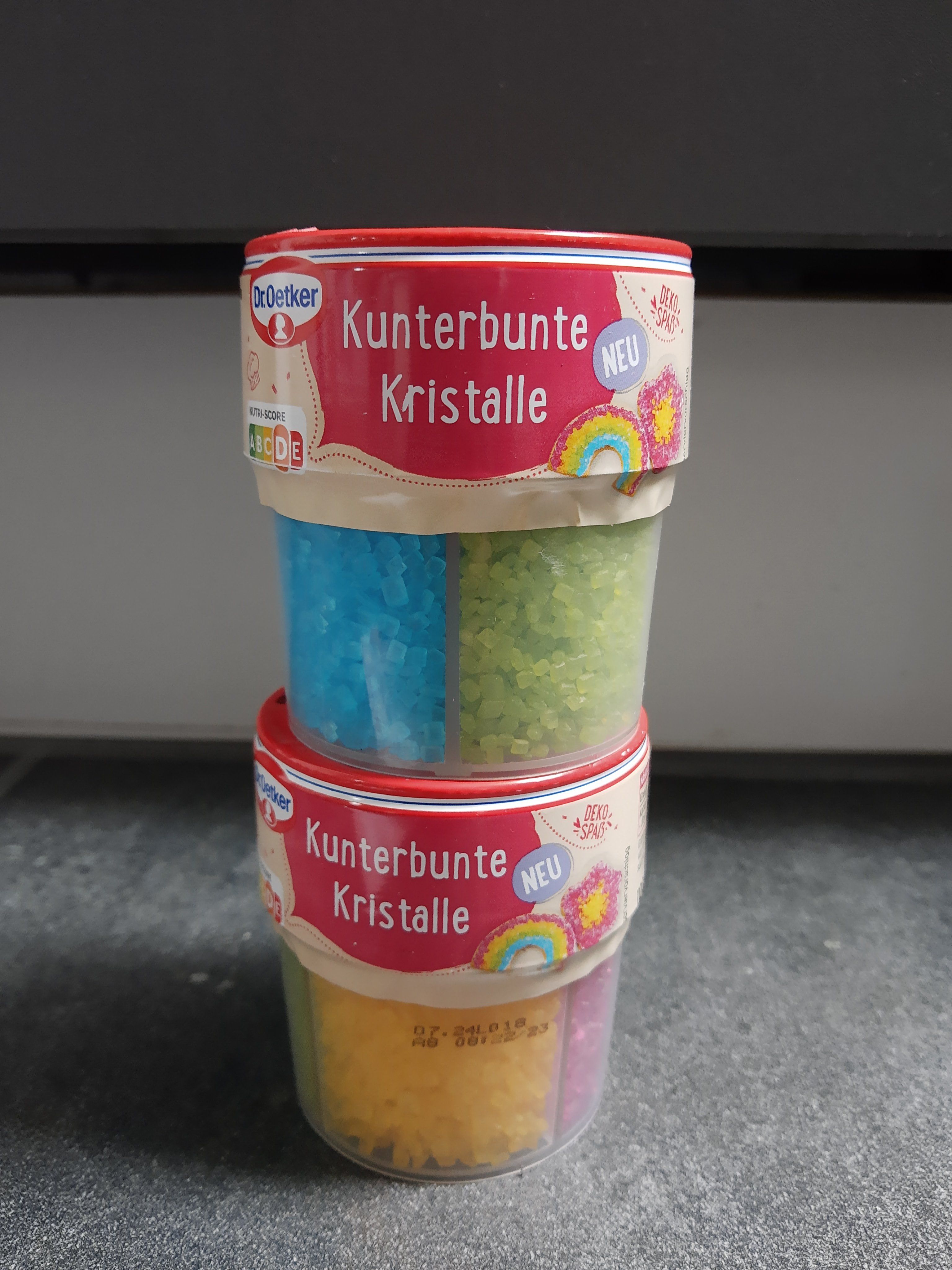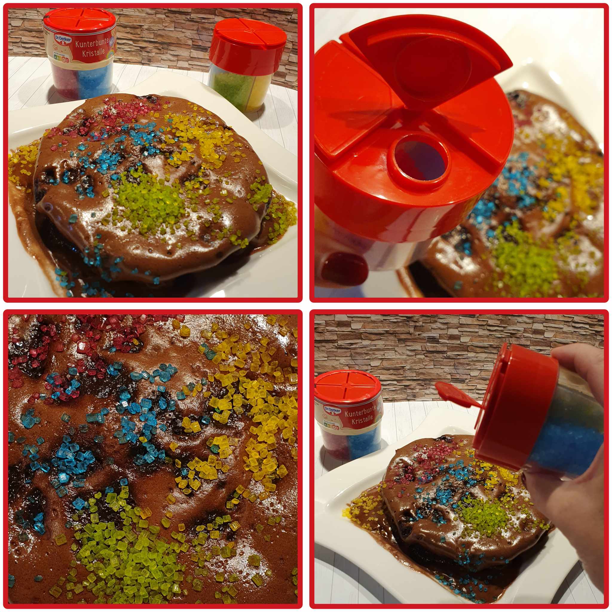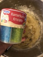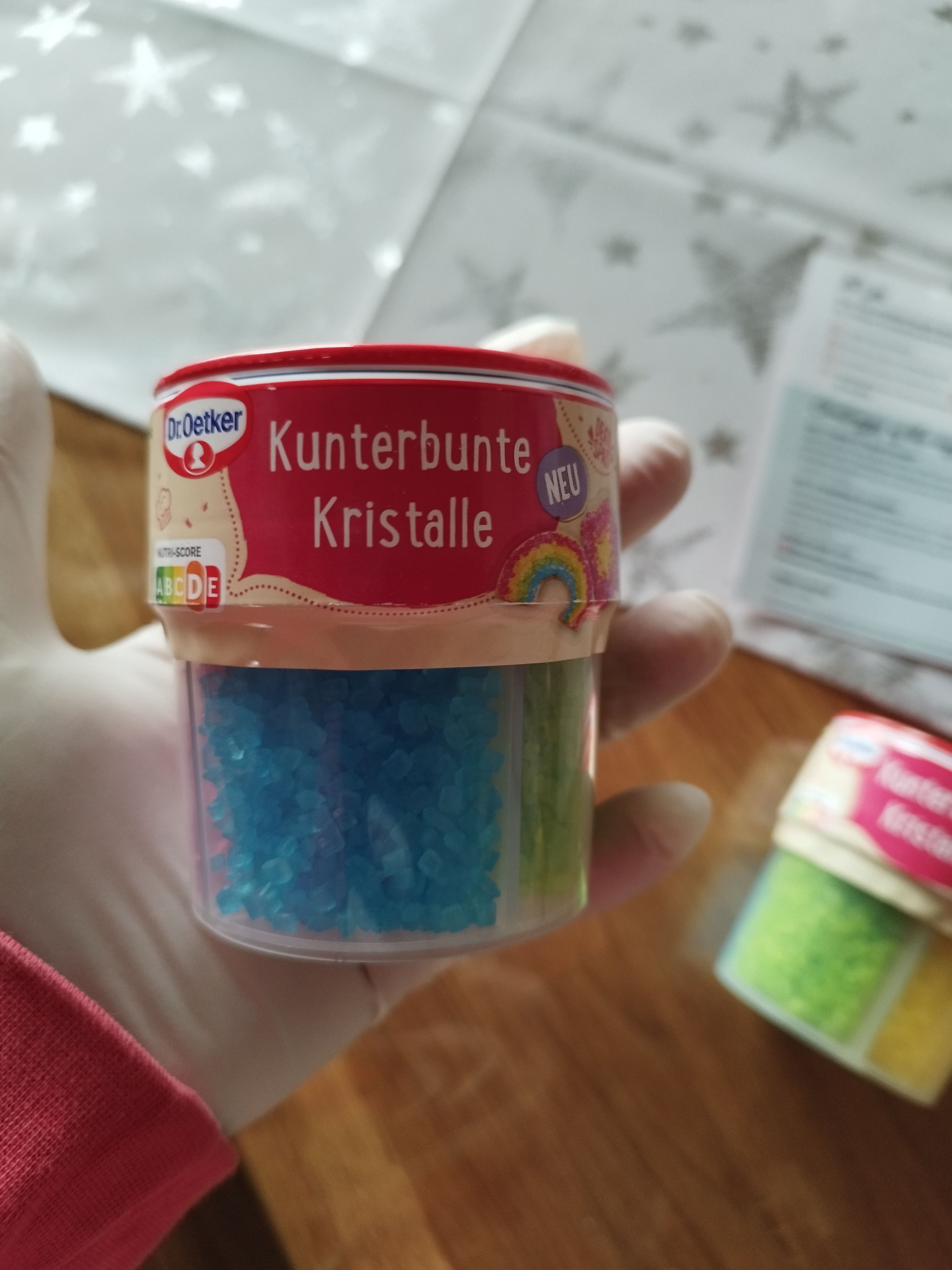 Die kunterbunten Kristalle von Dr. Oetker sind einfach in der Handhabung, praktisch verpackt mit 4 schönen, intensiven, strahlenden Farben (rot, grün, gelb, blau) in getrennten Kammern mit Öffnung zum Schütten. Sie eignen sich toll für die äußere Verzierung und schmecken gut.👍🏻