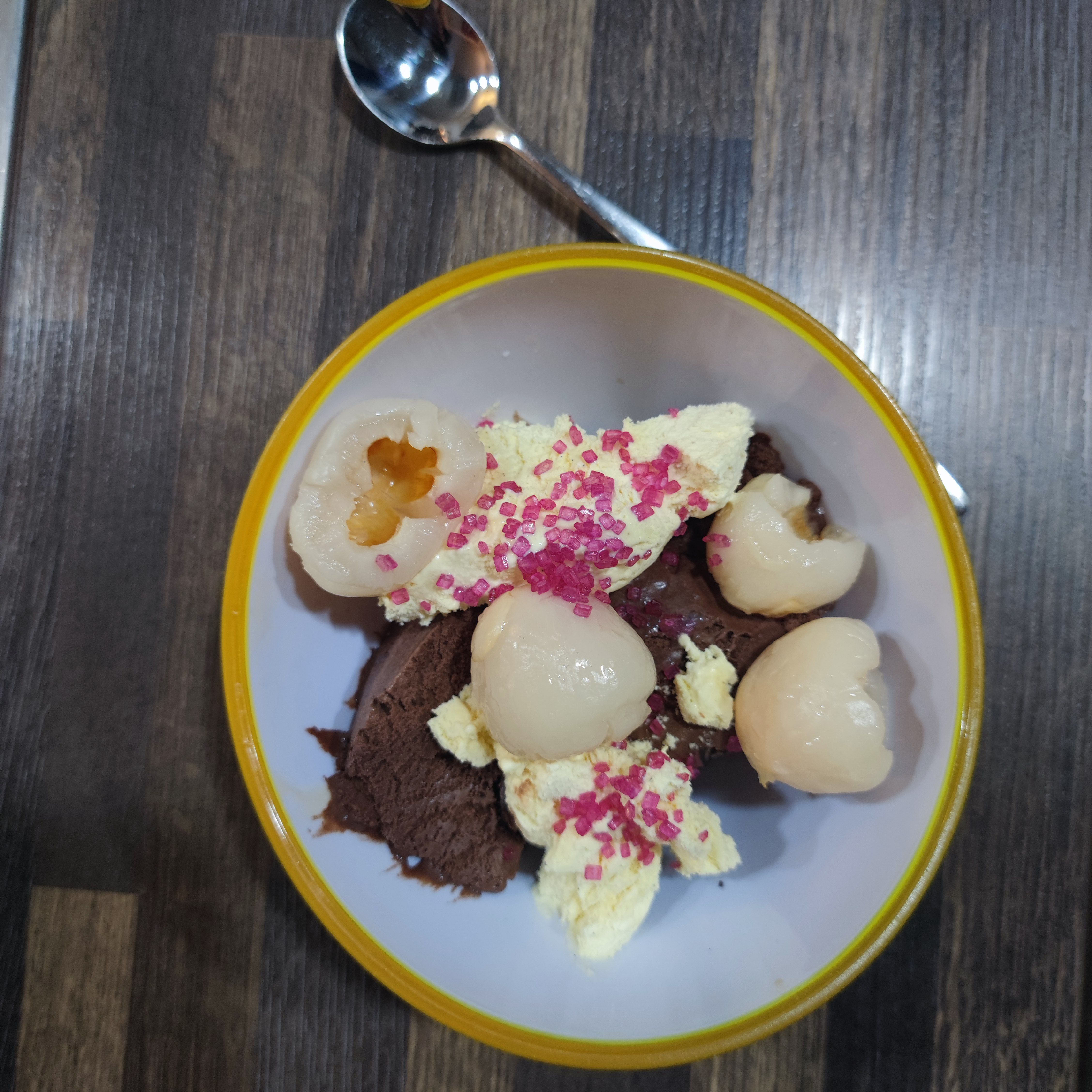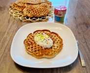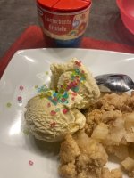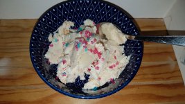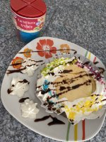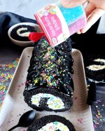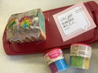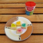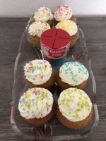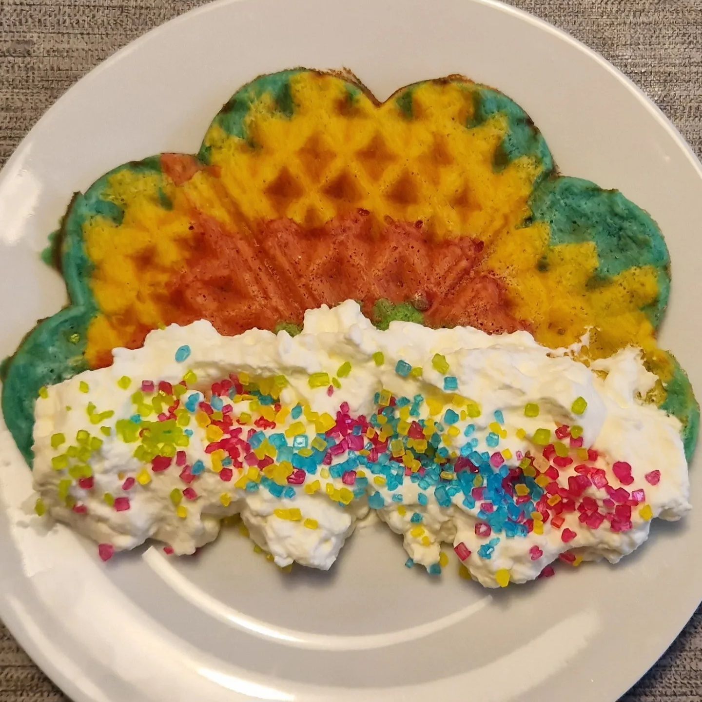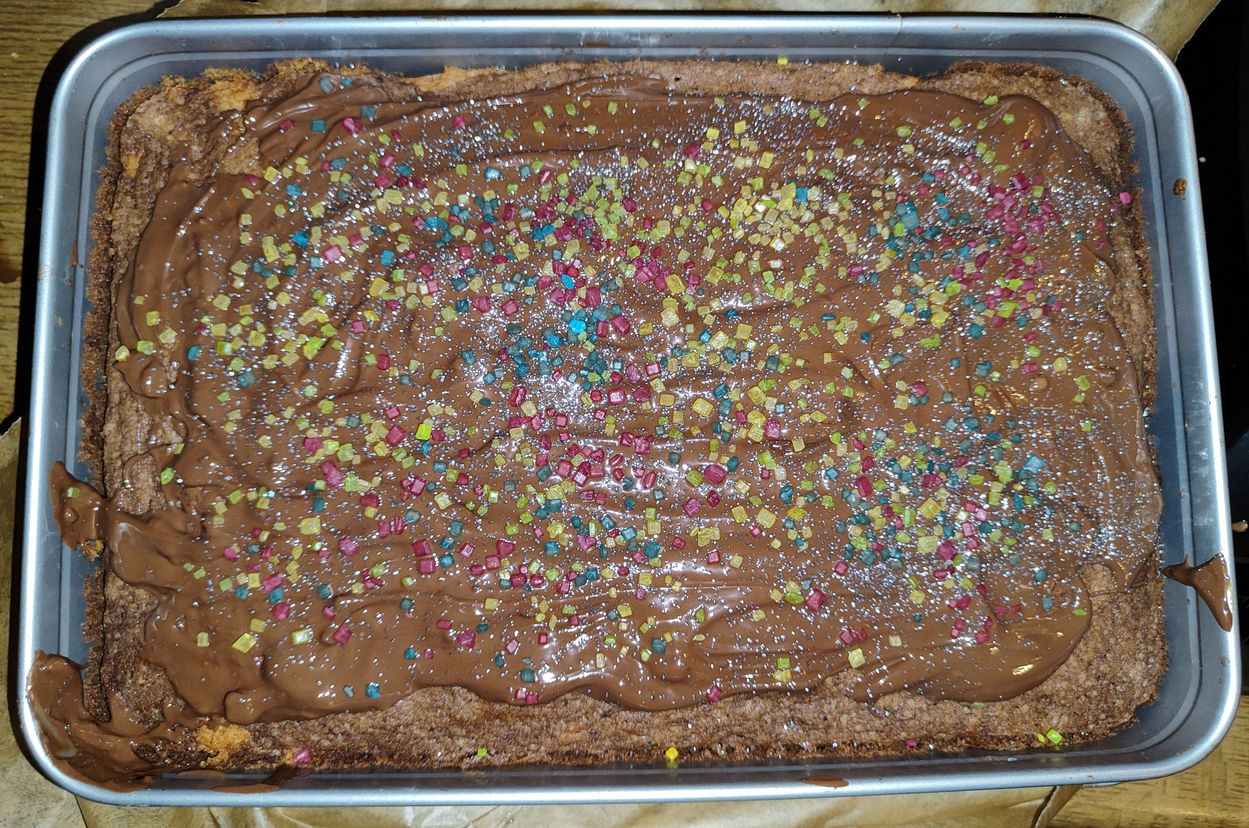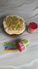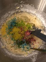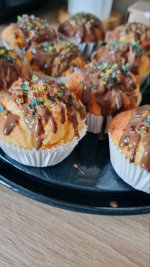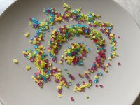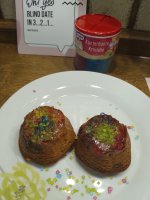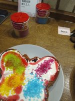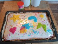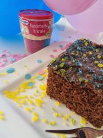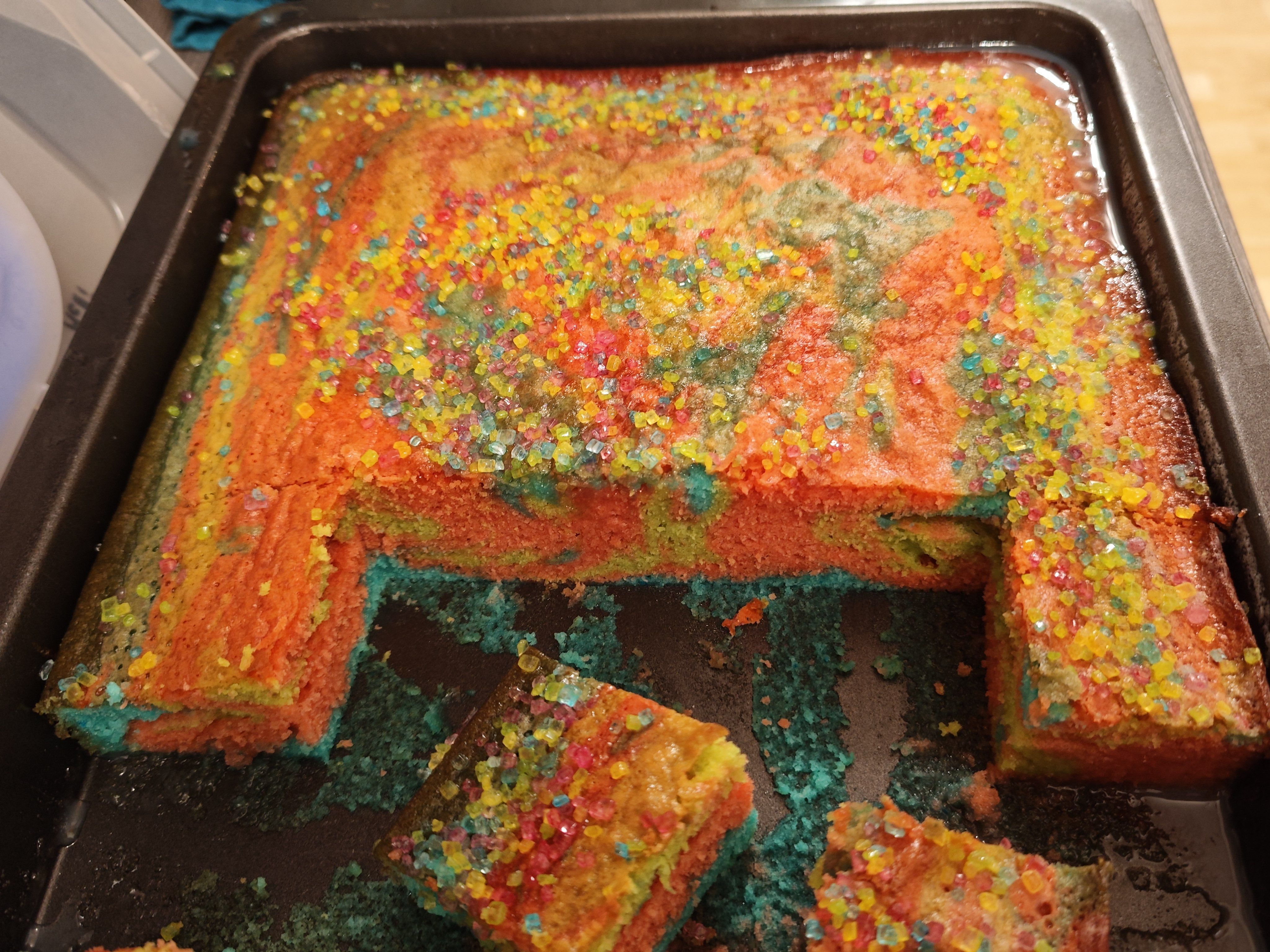 Die bunten Streusel sind echt nett anzuschauen. Leider ist es beim Essen kein gutes Gefühl. Man fühlt sich als würde man einfach nur große zuckerkristalle beisen. Selbst den Kindern ist es zu viel.