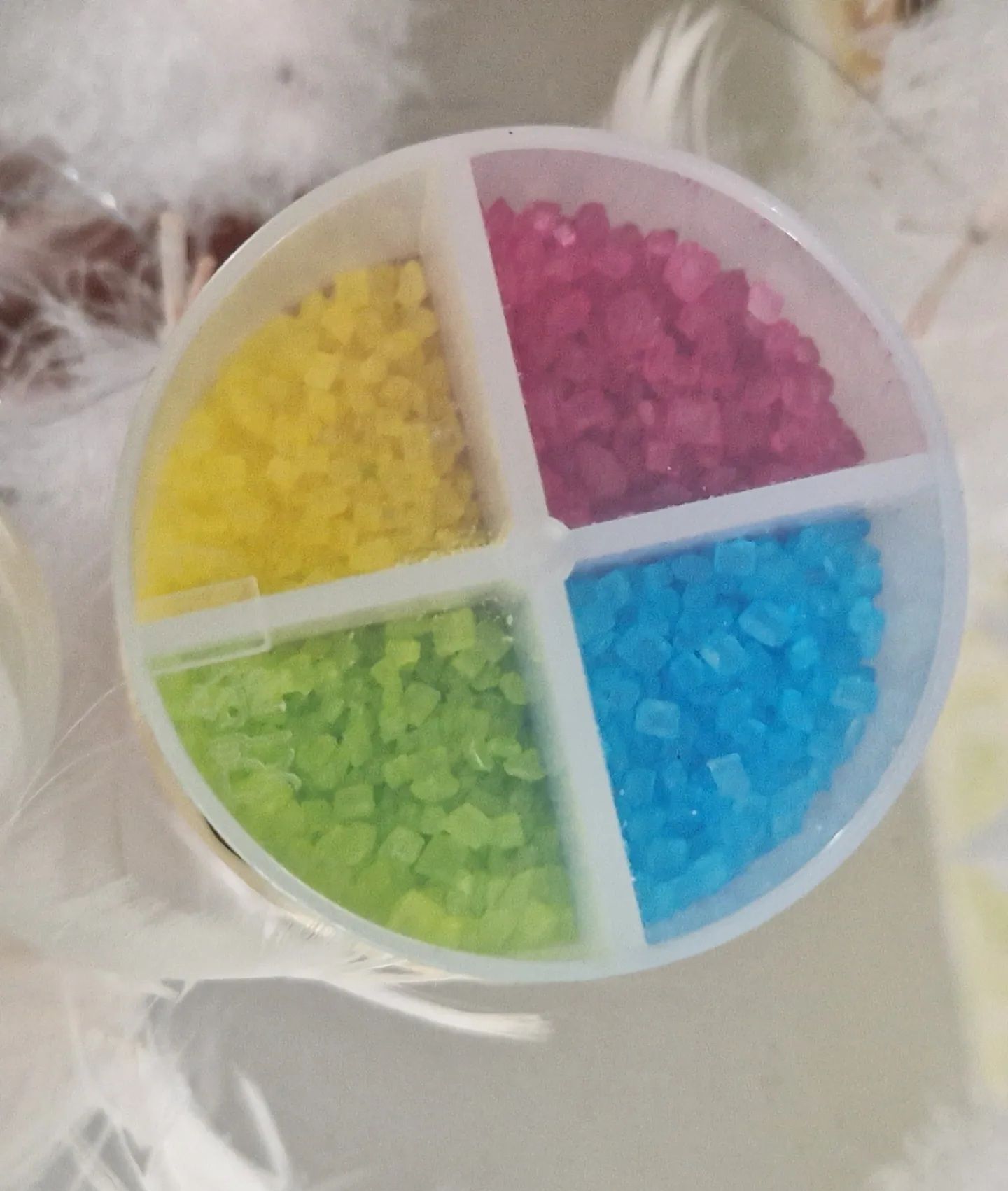 💚 Der Dekorzucker kommt in einem praktischen, wiederverschließbaren und transparenten 4-Kammer-Becher, der den Blick auf die Kristalle ermöglicht.