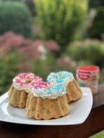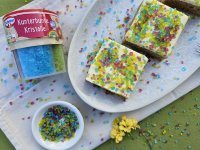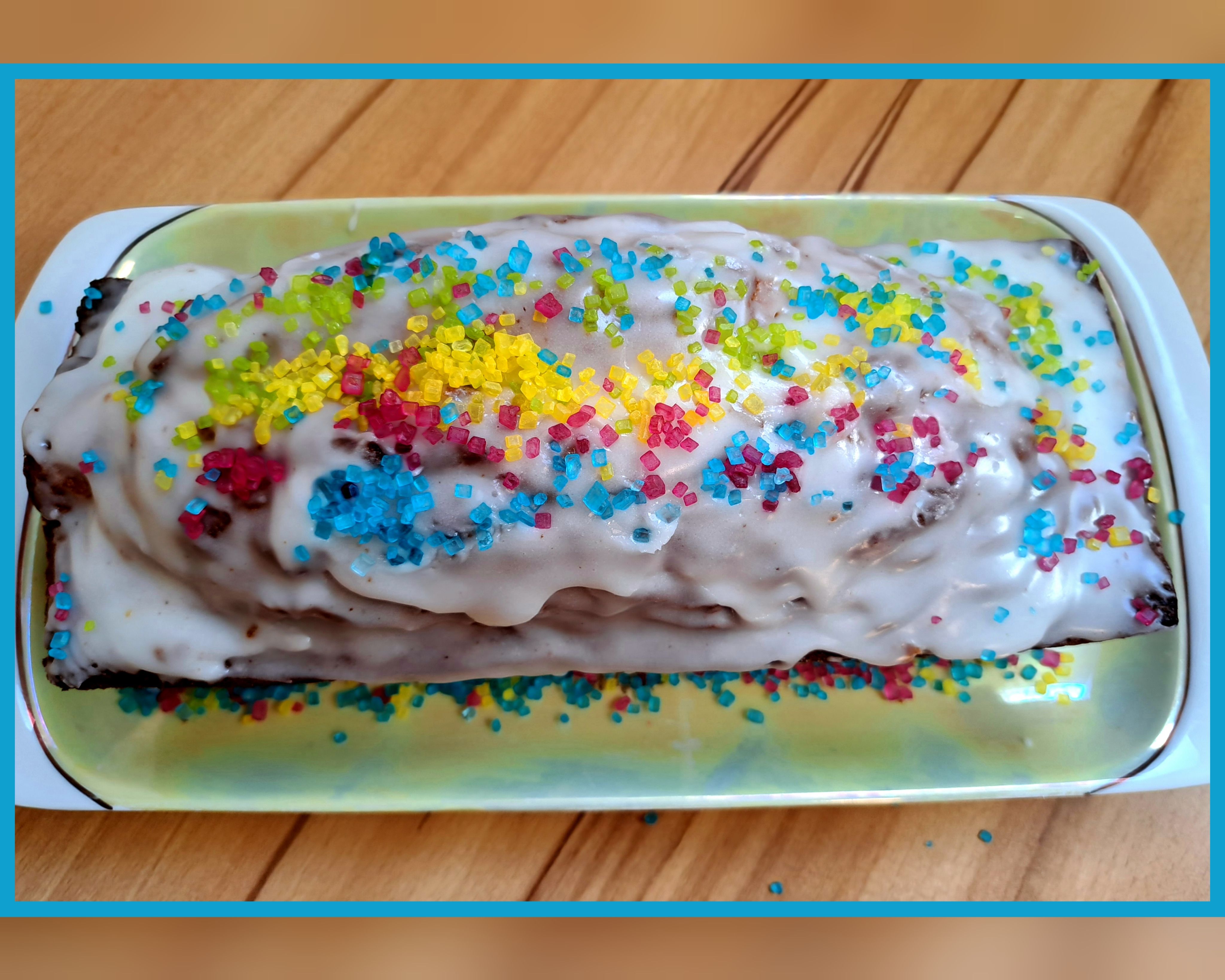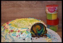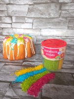 Die bunten Zuckerkristalle sind einfach und vielseitig für Kuchen und Desserts anzuwenden. Die bunten, glitzernden Kristalle sind besonders für Kinder interessant. Da ich ohnehin in den meisten Rezepten den Zucker reduziere, finde ich ein paar Zuckerstreusel für die Kinder auch unbedenklich. Jedenfalls machen die bunten Farben gute Laune und zum Kindergeburtstag gehören bunte Kuchen dazu.