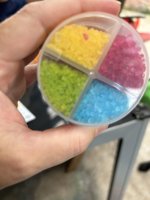 dann doch nicht 100% farblich getrennt, aber es lässt sich wohl nur schwer vermeiden dass nicht doch mal ein Kristall ins Flasche Fach hüpft