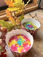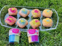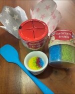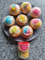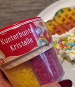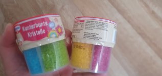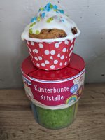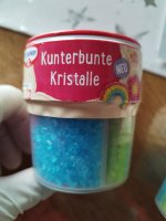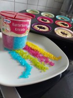 Tolle,verschiedenfarbige Kristalle.Vielseitig einsetzbar zum dekorieren von Gebäck und Desserts.Ich habe gleich Muffins gebacken und sie damit dekoriert.Eigentlich wollte ich einen Regenbogen darauf machen,hat nicht so wirklich geklappt🤣,aber auf einem größeren Kuchen und etwas Übung klappt es sicher beim nächsten Mal.Es hat richtig Spaß gemacht und meiner Family auch.Danke das ich dabei sein durfte.Die 2 Packung habe ich meiner Schwiegertochter geschenkt,sie ist unsere Backfee.
