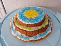 Ich habe mit dem Produkt meinen Steppdecken-Kuchen verziert. Das hat wunderbar geklappt. Die Dose mit den 4 Öffnungen ermöglicht es die Zuckerkristalle einfach zu verteilen und die Farben sind sehr schön.