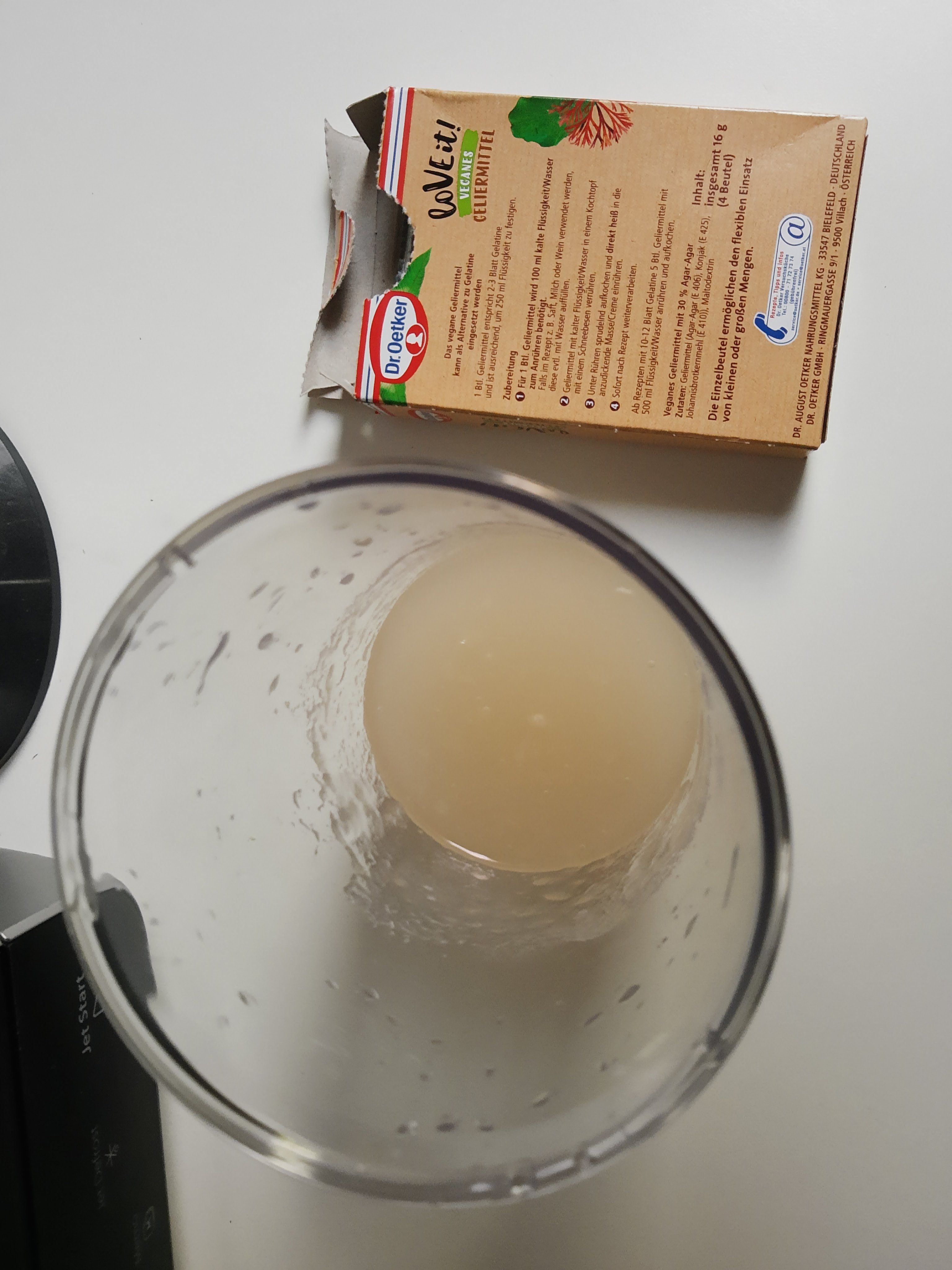 Das neue vegane Geliermittel von Dr. Oetker war auf jeden Fall mein Gamechanger! Ganz ohne Tierleid auf Basis der Agar-Agar Alge ist es unheimlich schnell und wirklich sehr leicht zubereitet und das Ergebnis kann sich sehen lassen! Eine hervorragende Textur und absolut kein Unterschied zu Gelatine im Resultat.