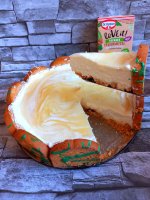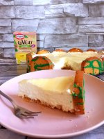 Dieses Mal habe ich einen veganen No-Bake Käsekuchen mit Kiwis Fruchtspiegel zubereitet. Sowohl die Creme auch auch der Fruchtspiegel sind mit Dr. Oetker LoVE it! Veganes Geliermittel hergestellt worden und auch hier war die Anwendung sehr einfach und ich bin mit dem Ergebnis mehr als zufrieden. Tatsächlich habe ich aber vorsichtshalber etwas mehr Geliermittel als im Rezept angegeben war verwendet, da Kiwi ja bekannt dafür sind, dass sie mit Geliermittel nicht gut harmonieren. Ich habe mich sehr gefreut, dass der Kuchen so gut geworden ist und nicht auseinander gefallen ist, als ich den Tortenring abgehoben habe.