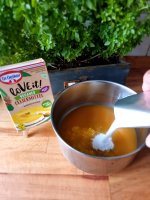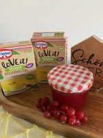 Für meine Marmelade habe ich das vegane Geliermittel einfach mit 100ml Wasser zubereitet, was genauso funktioniert.