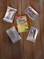 Die Idee, vegane Gelatine portionsweise in kleinen Tütchen anzubieten, hat mich wirklich beeindruckt. Im Gegensatz dazu bleibt Agar Agar-Pulver oft in der großen Verpackung und kann leicht verschüttet werden, wenn es längere Zeit im Backzeugschrank aufbewahrt wird. Die meisten Rezepte verlangen nach einer bestimmten Anzahl von Blattgelatine, was die Verwendung dieser Tütchen äußerst praktisch macht. Auf der Verpackung steht deutlich, wie viele Tütchen benötigt werden, um die entsprechende Menge an Blattgelatine zu ersetzen.
