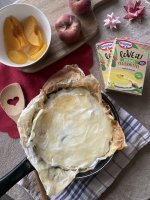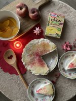 Ich habe aus dem loVE it! Geliermittel unter anderem einen Fruchtspiegel für meine vegane Torte gezaubert und es dazu mit der aufgefangenen Flüssigkeit der Tortenpfirsiche verrührt und kurz aufgekocht. Es hat auf Anhieb geklappt, wunderschön ausgesehen und hat mit der süßen Fruchtnote allen ausgezeichnet geschmeckt!