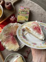 Sowohl Frischkäsecreme aber auch die Fruchtkomponente gelangen einwandfrei. Die Torte war schnittfest aber nicht wie Wackelpudding. Die Textur war im Mund trotzdem cremig und zerging förmlich.