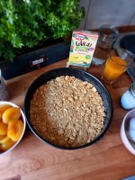 Ich habe mich diesmal an die Frischkäse- Aprikosentorte gewagt, die auf der Dr. Oetker Homepage als Rezeptidee zu finden ist.
